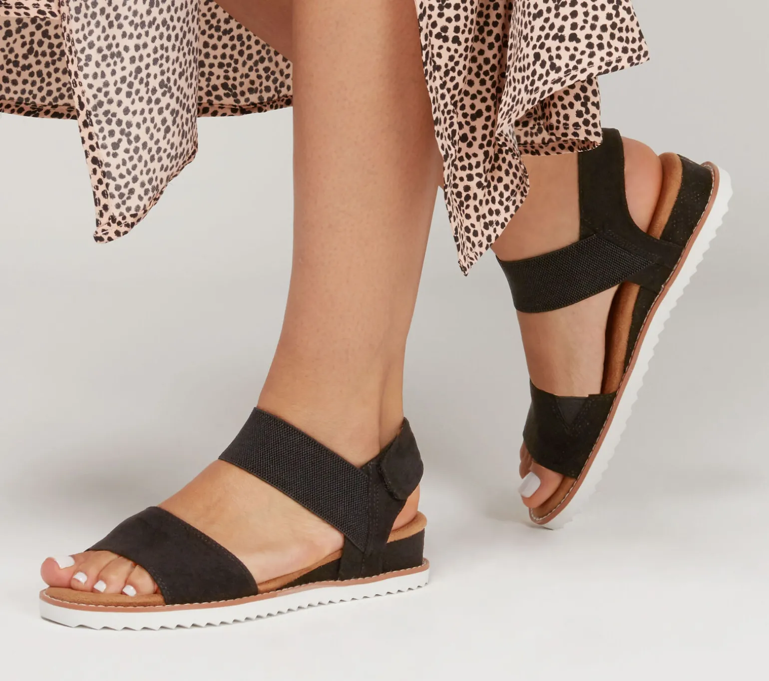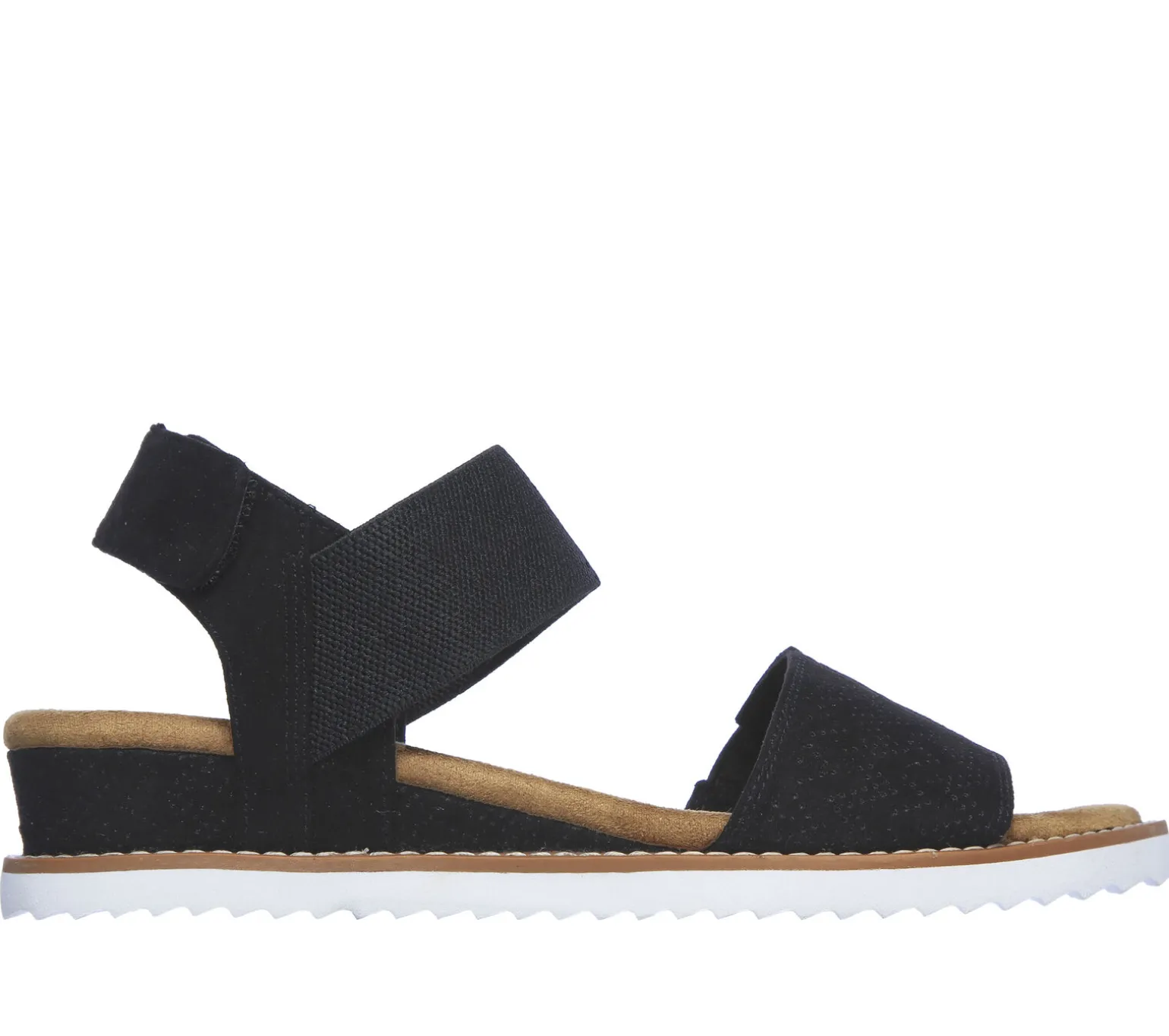 Mit dem luftigen BOBS von Skechers Desert Kiss startest du ganz entspannt in den Tag. Diese flache Sandale mit Keilabsatz hat ein gestanztes Obermaterial aus Mikrofaser, einen Ristriemen mit Zwickel, einen verstellbaren Sling-Back-Verschluss und ein gepolstertes Skechers Memory Foam Komfort-Fußbett. Mit jedem BOBS-Einkauf geht eine Spende an Tiere in Not.