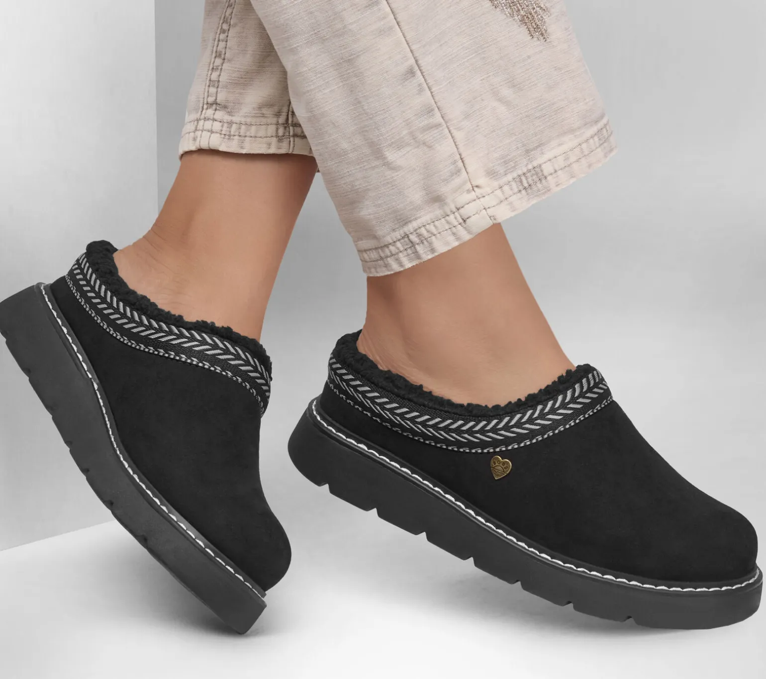 Für die kalten Tage sind die bequemen BOBS® from Skechers® Keepsakes Lite – Cozy Fest genau das Richtige. Die lässige Pantolette mit niedrigem Einstieg ist aus einem Obermaterial mit veganem Veloursleder mit einem Kragenbesatz im Webteppich-Design, Futter und Fußbett aus Kunstfell sowie der Skechers Memory Foam Komfort-Innensohle gefertigt.