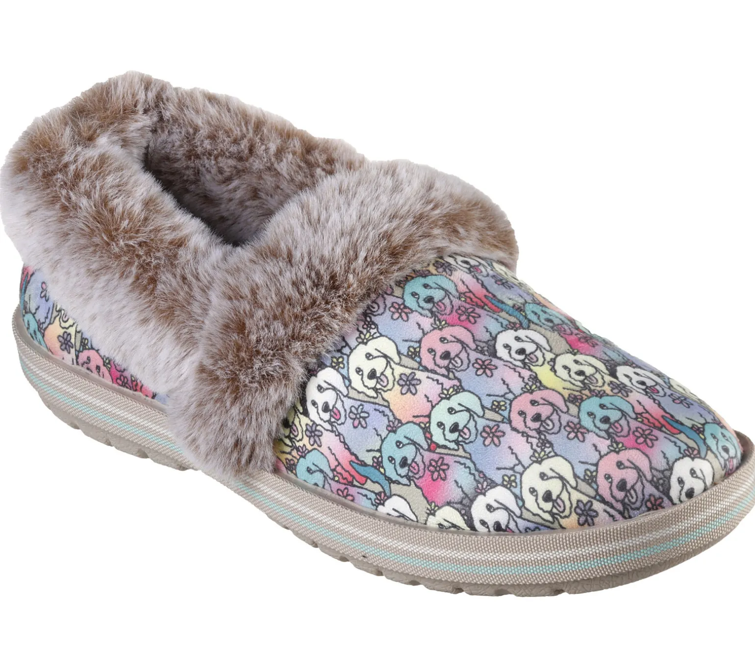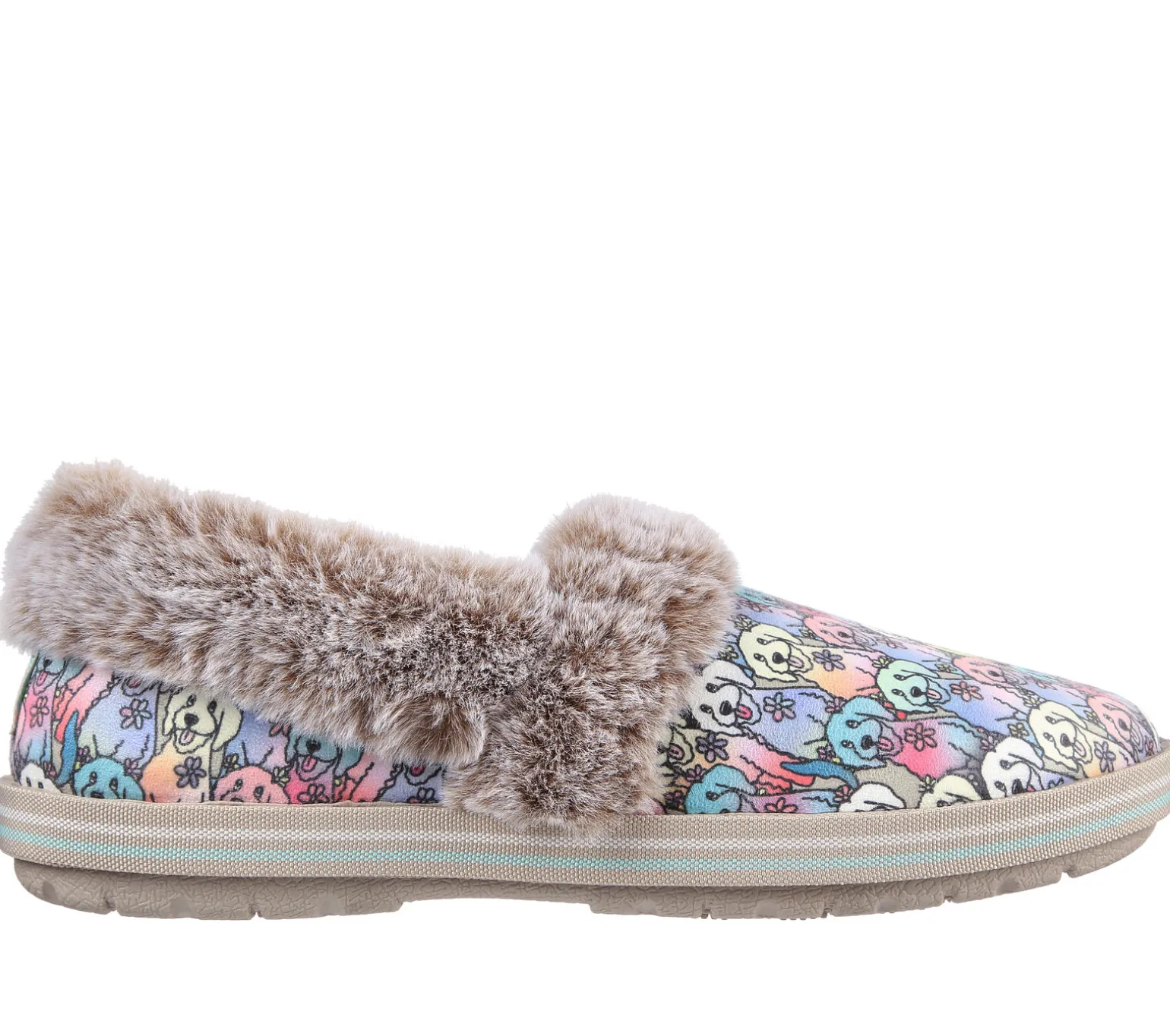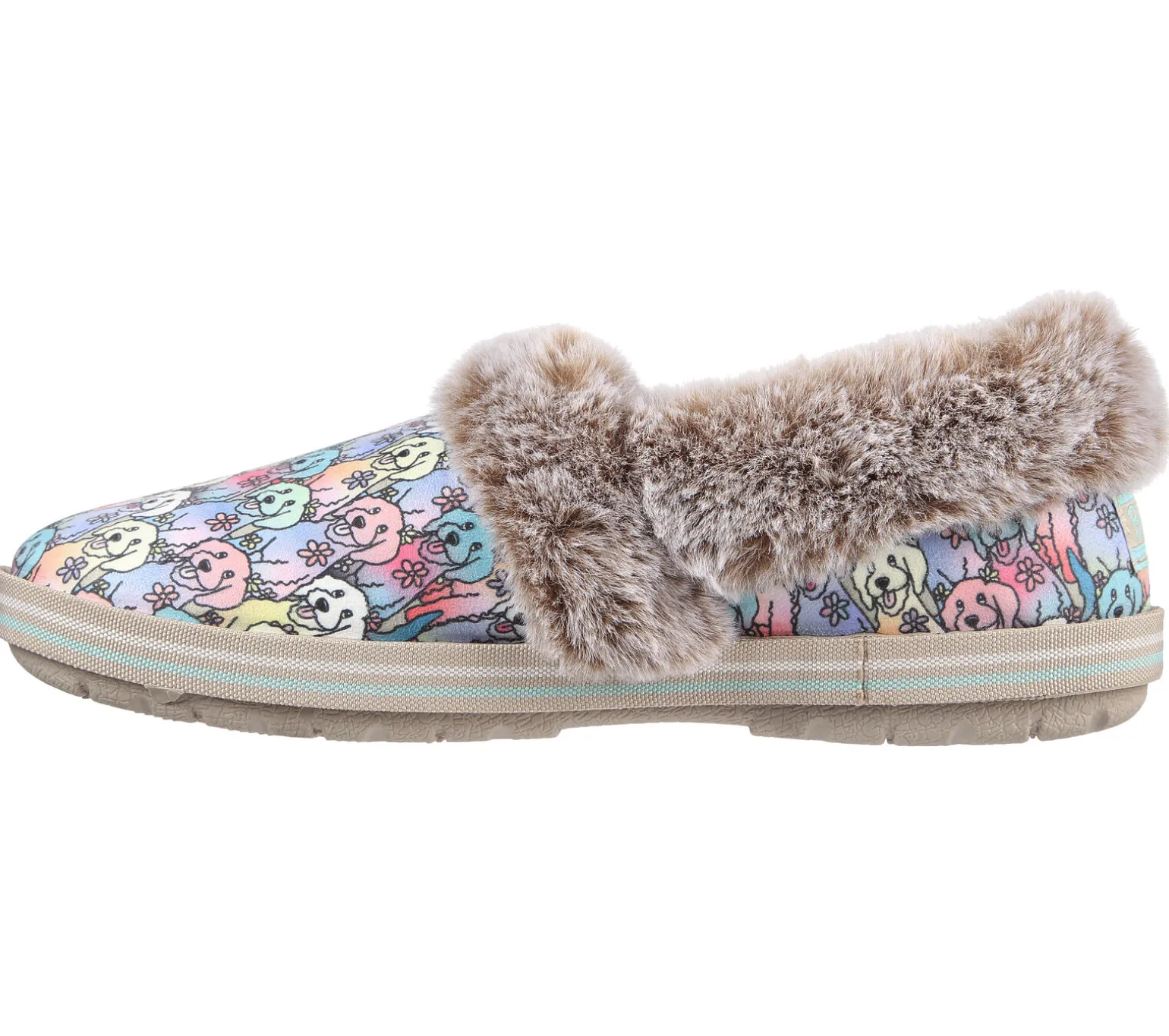 Mit den BOBS von Skechers Too Cozy – Winter Howl bist du in dieser Saison bestens gestylt und bequem unterwegs. Dieser kuschelige Hausschuh verfügt über ein weiches Obermaterial mit „Aloha Doodle“-Print, Kunstfellbesatz und ein gepolstertes Memory Foam-Fußbett. Mit jedem BOBS-Einkauf geht eine Spende an Tiere in Not.