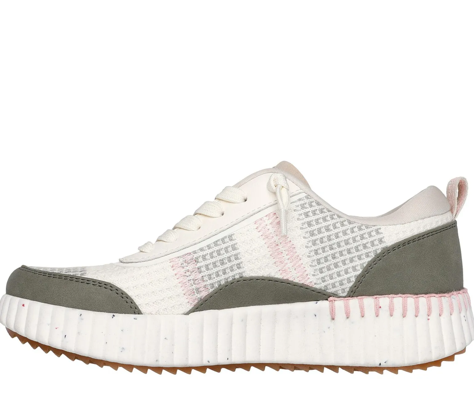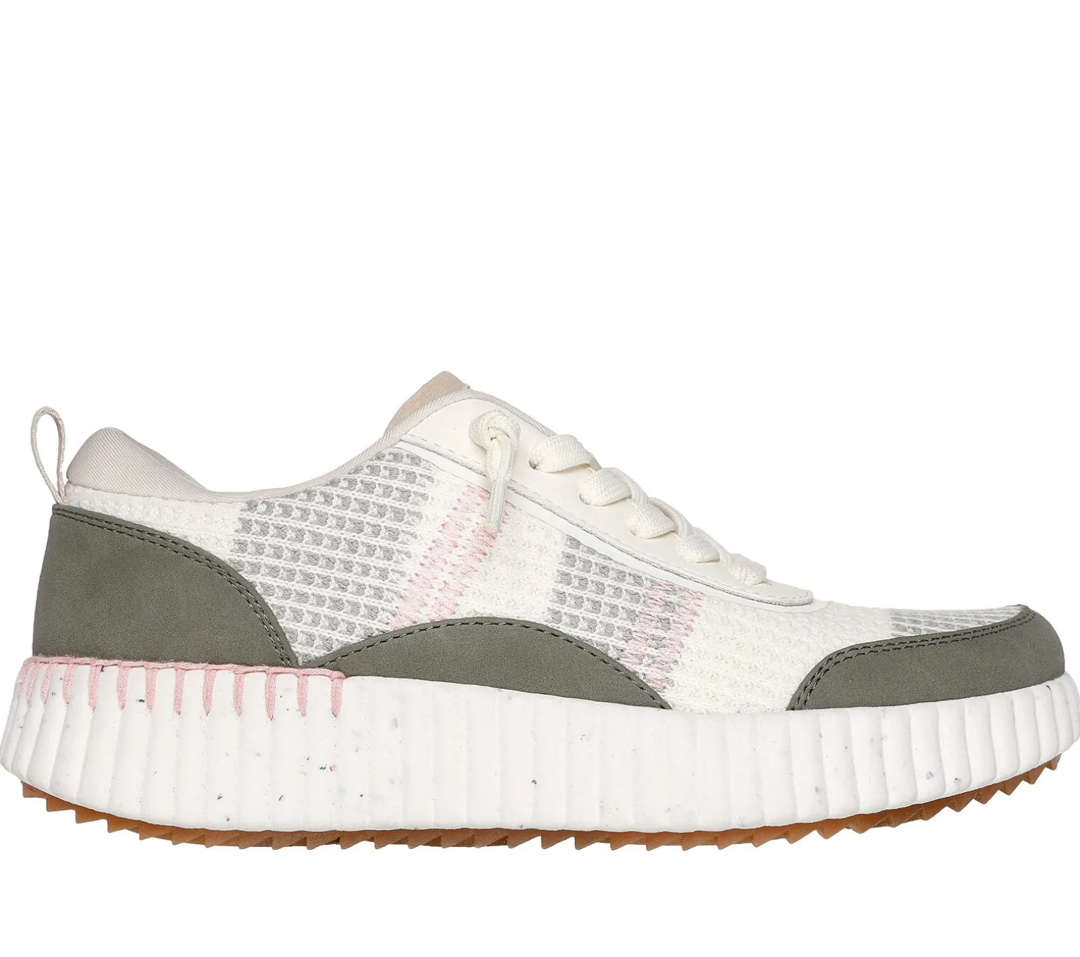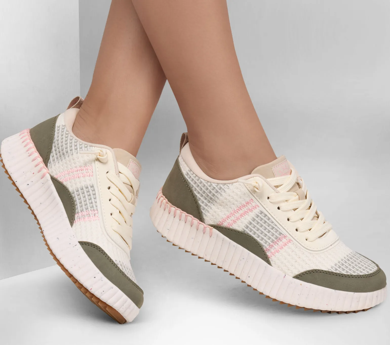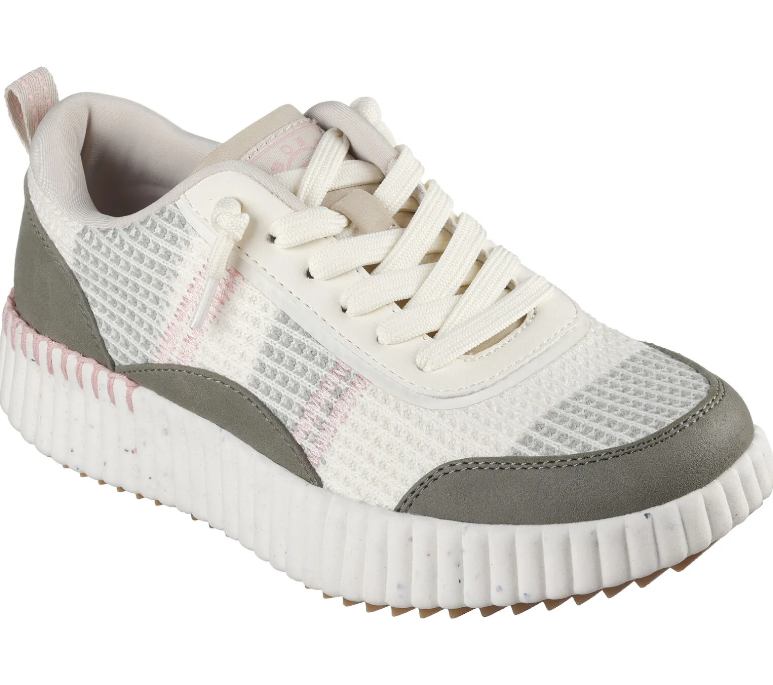 Effortless style and supportive comfort combine in BOBS from Skechers Vista. This laced pull-on design features a textured knit upper with synthetic overlays and a cushioned Skechers Memory Foam insole. For every BOBS purchase, a donation is made to animals in need.