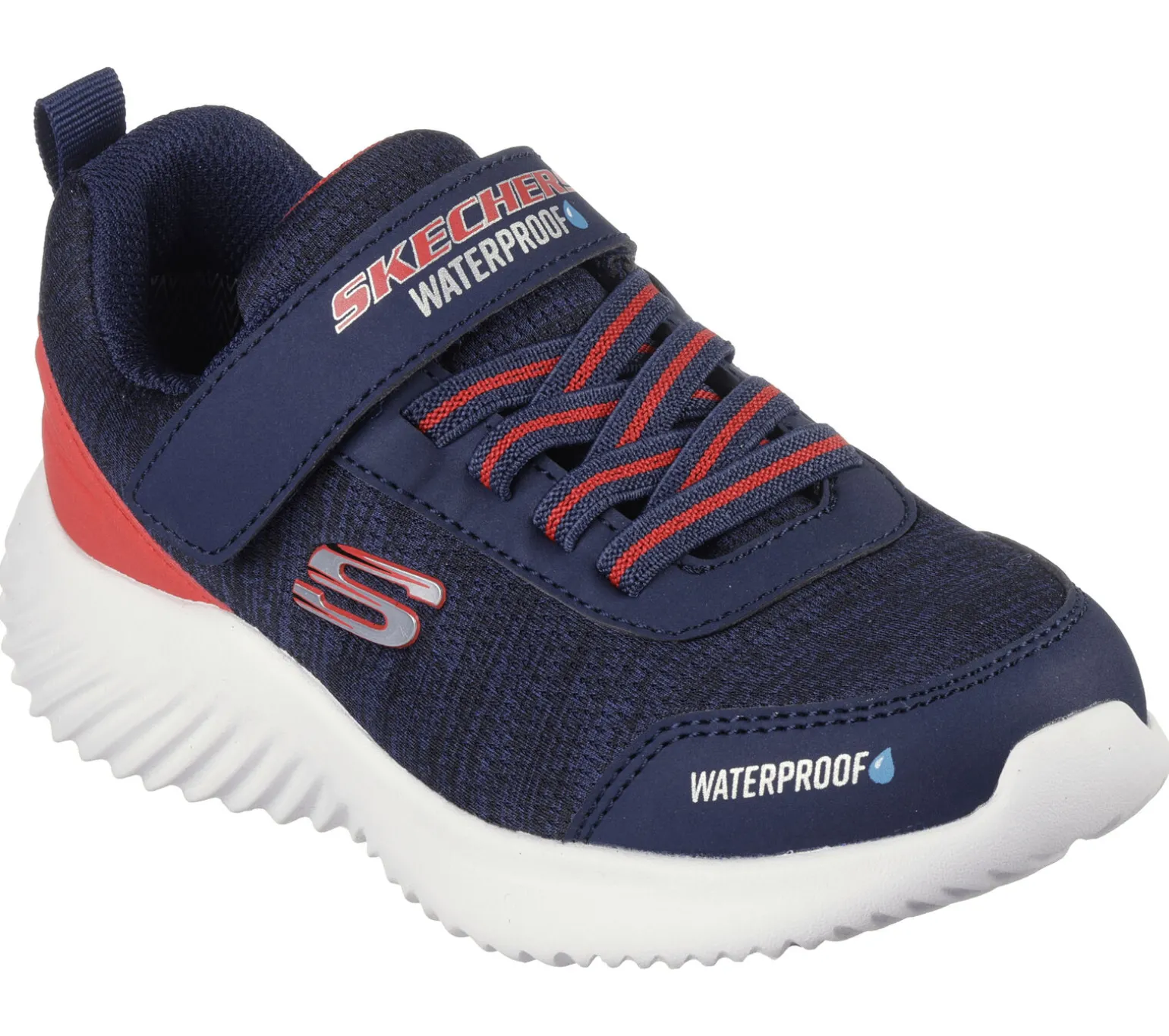 Spritzschutz und sportlicher Look verbinden sich im Skechers Bounder – Dripper Drop. Dieser leichte, wasserdichte Sneaker verfügt über ein Obermaterial aus Mesh und Synthetik mit elastischer Schnürung, einen verstellbaren Ristriemen und eine gepolsterte Innensohle.