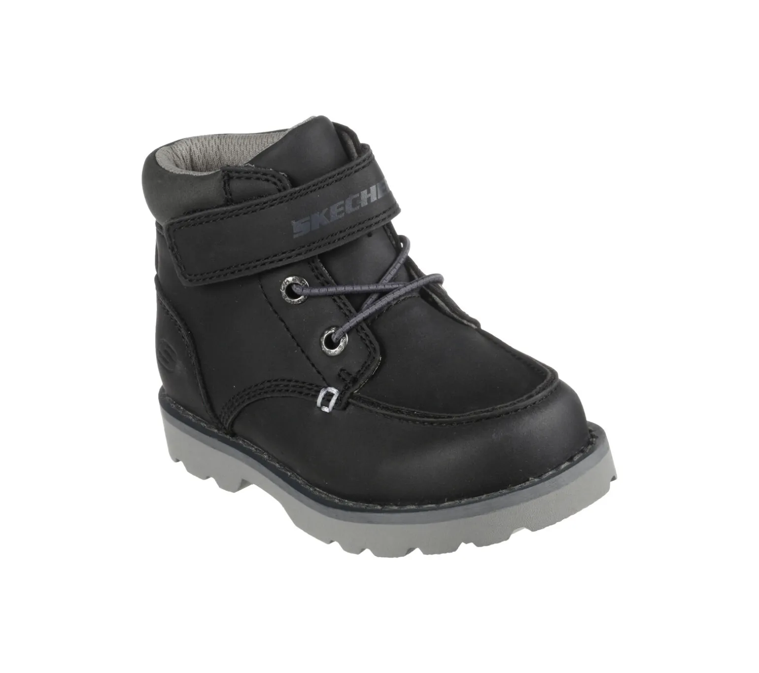 Echter Roofer-Style für die Kleinen mit dem Skechers Bowland – Lil Truxer. Diese Stiefelette zum Schnüren zeichnet sich durch ein Obermaterial aus Kunstleder mit Zehenpartie in Mokassin-Optik, ein gepolsterter Kragen und eine gepolsterte Komfort-Innensohle aus.
