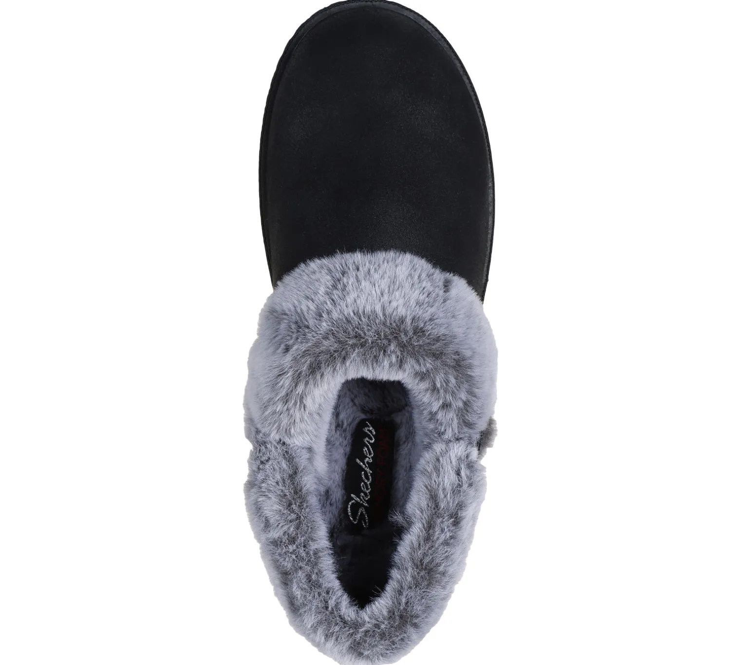 Mit dem kuschelig weichen Skechers Cozy Campfire – French Toast 2 kannst du es diese Saison ganz entspannt angehen. Dieser lässig-bequeme Hausschuh verfügt über ein Obermaterial aus veganem Leder mit Besatz aus Kunstpelz und ein gepolstertes Skechers Memory Foam Komfort-Fußbett.