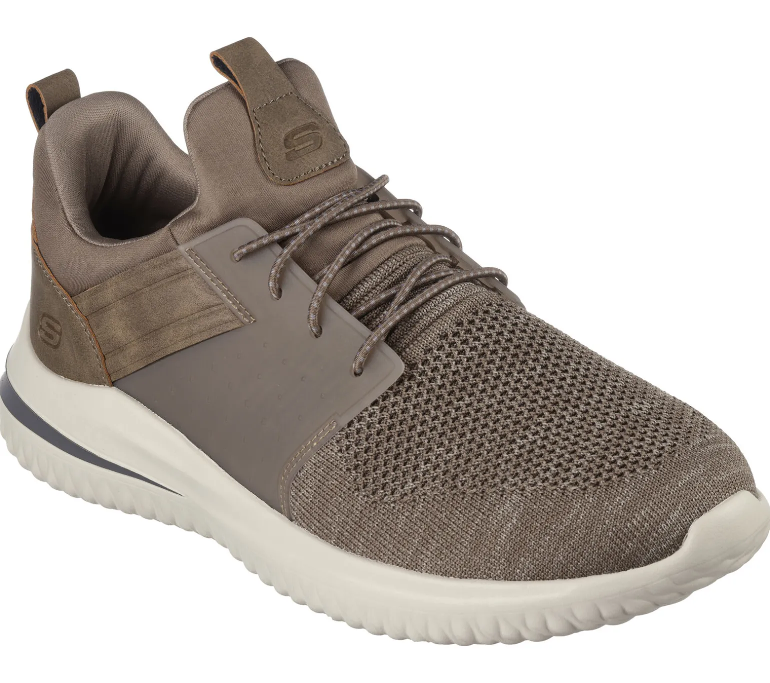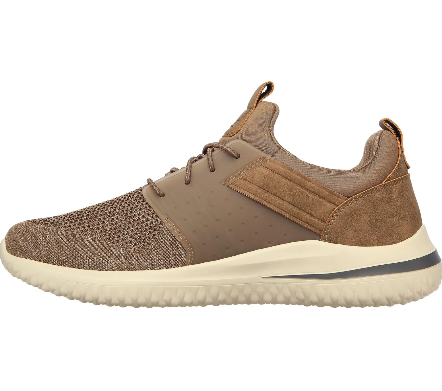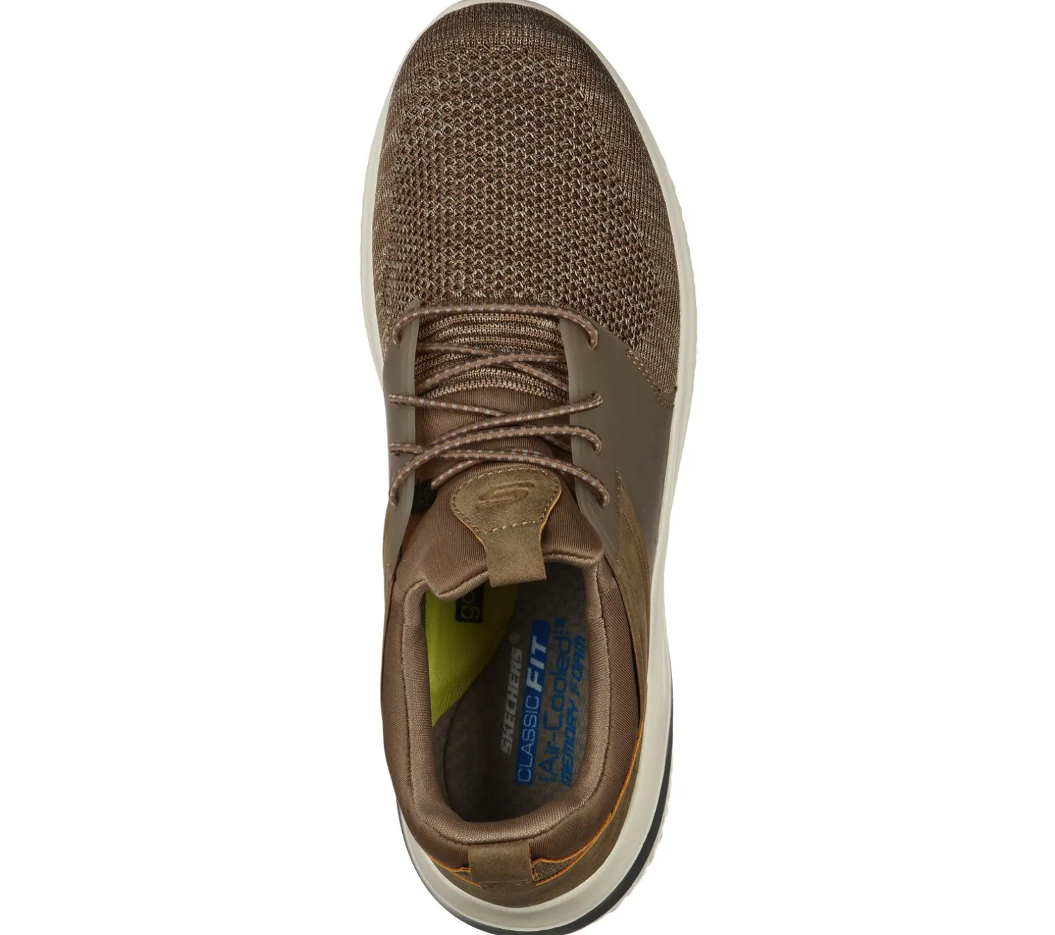 Mit dem SKECHERS Delson 3.0 – Cicada Schuh wird ein beliebter Klassiker noch eleganter und bequemer. Dieser Sneaker zum Hineinschlüpfen im Oxford-Design hat ein leichtes Obermaterial aus Strickmesh und glatter Synthetik, eine elastische Schnürung und eine Skechers Air Cooled Memory Foam®-Innensohle mit Dämpfung.