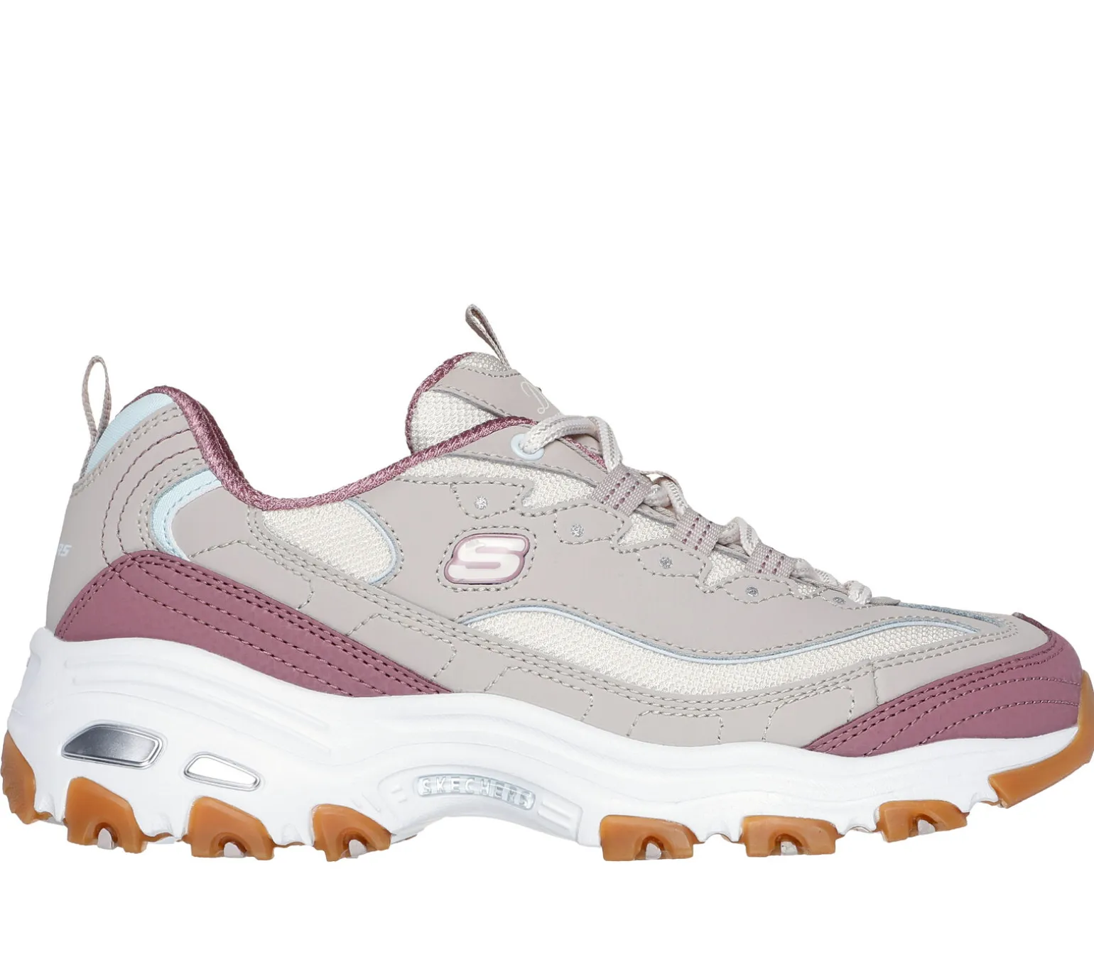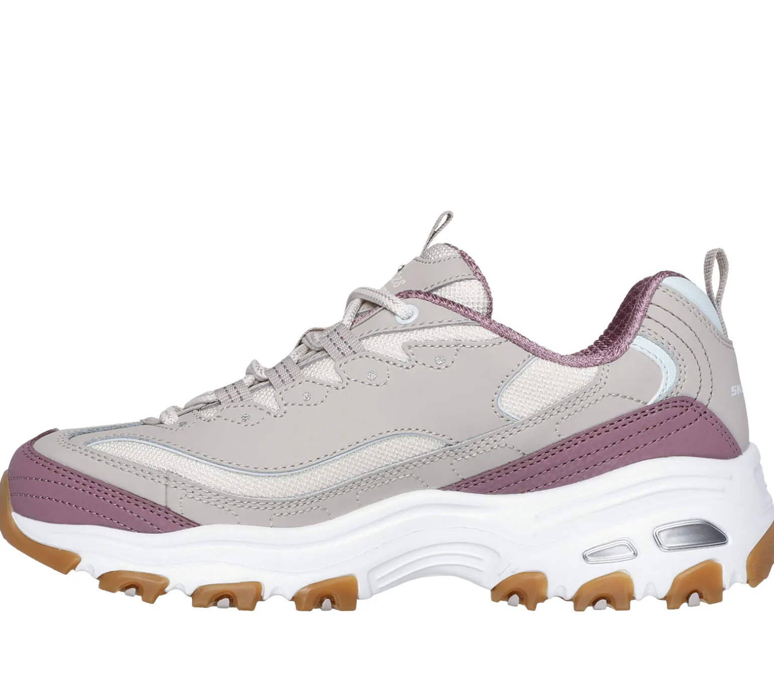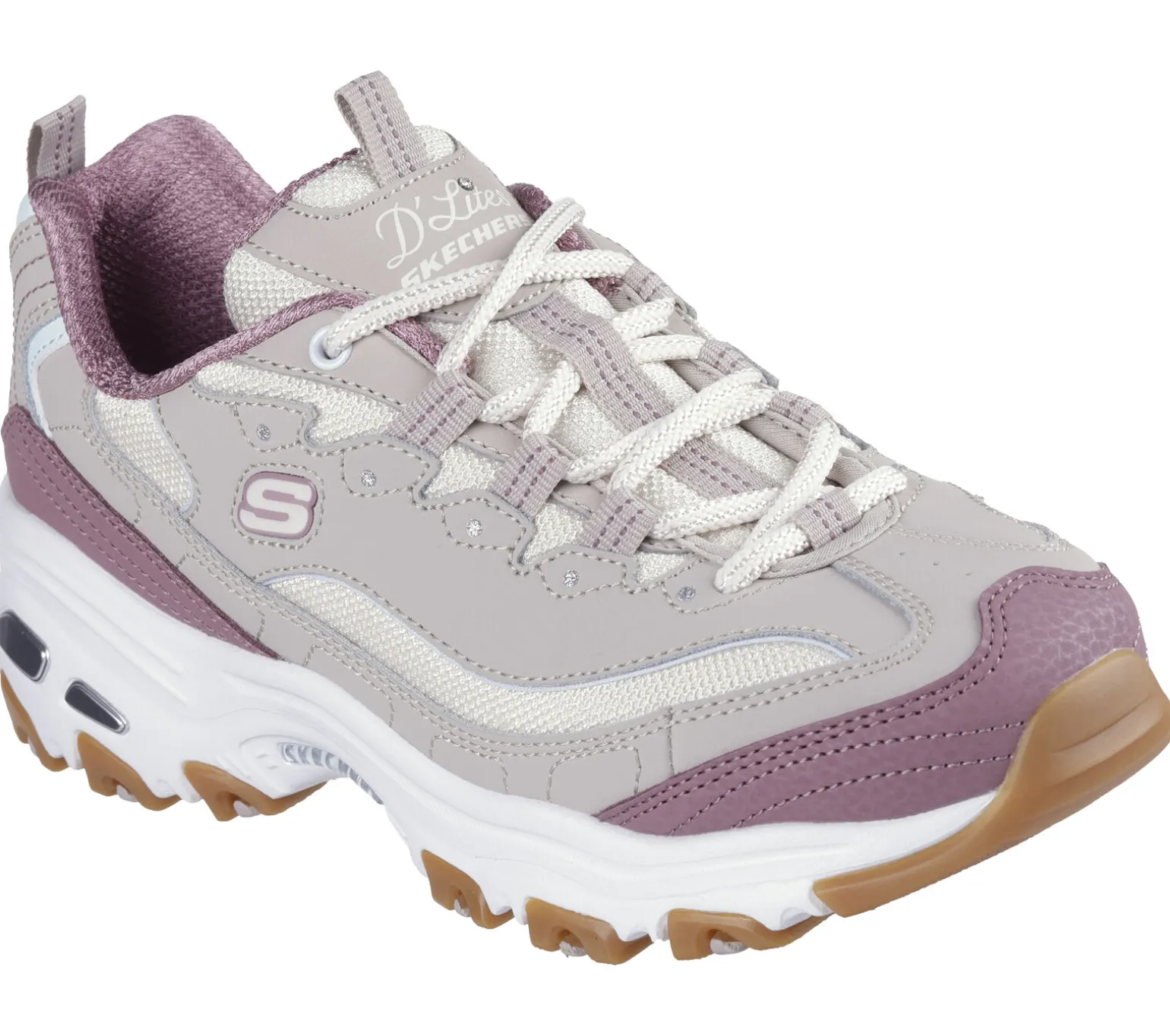 Vereine Style und Komfort im ikonischen Klassiker Skechers D’Lites® – Popular Vote. Dieser modische Sneaker zum Schnüren hat ein Obermaterial aus Leder und Mesh mit Synthetik-Details und eine gepolsterte Air-Cooled Memory Foam-Innensohle.