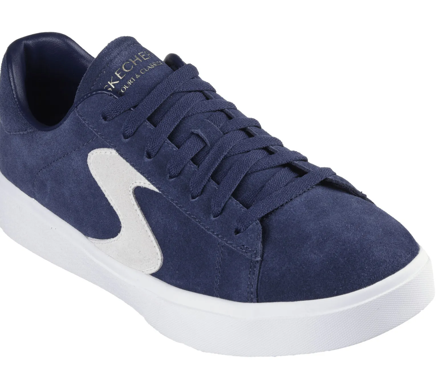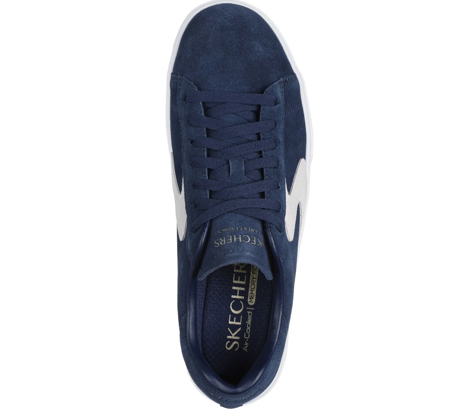 A modern classic combines with cool comfort in Skechers Eden LX – Levors. This lace-up court-style sneaker features a suede upper with quarter ‚S‘ logo and a cushioned Skechers Air-Cooled Memory Foam® insole.