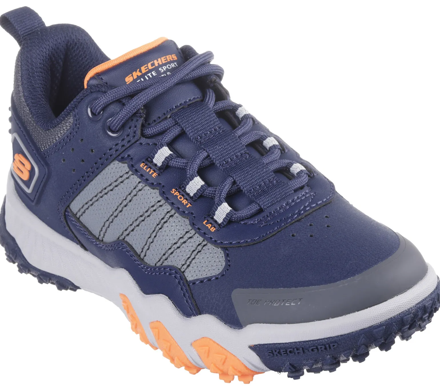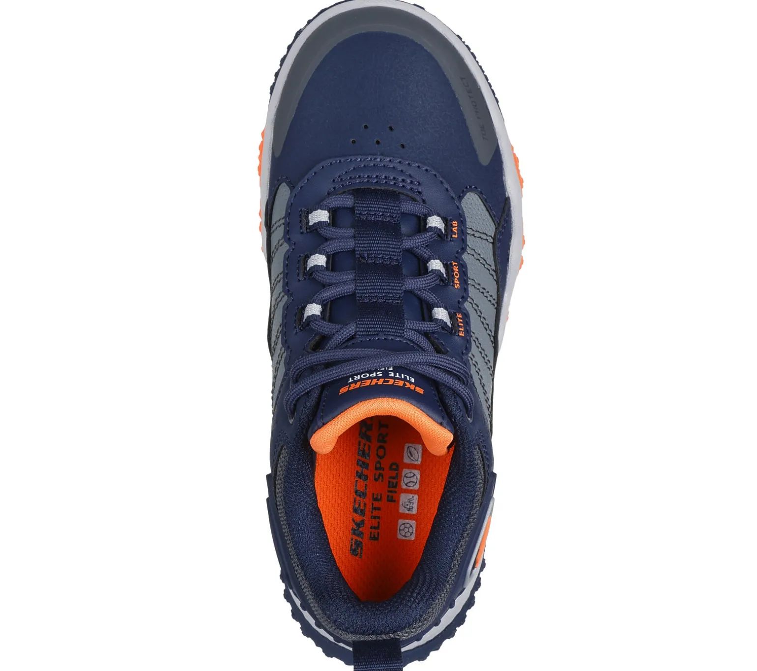 Erobere jedes Spielfeld selbstbewusst und stilvoll im Skechers Elite Sport Field. Dieser vielseitige, sportliche Schnürschuh verfügt über ein Obermaterial aus knöchelstützendem Mesh und Synthetik sowie eine verlängerte, strapazierfähige und flexible Gummilaufsohle.