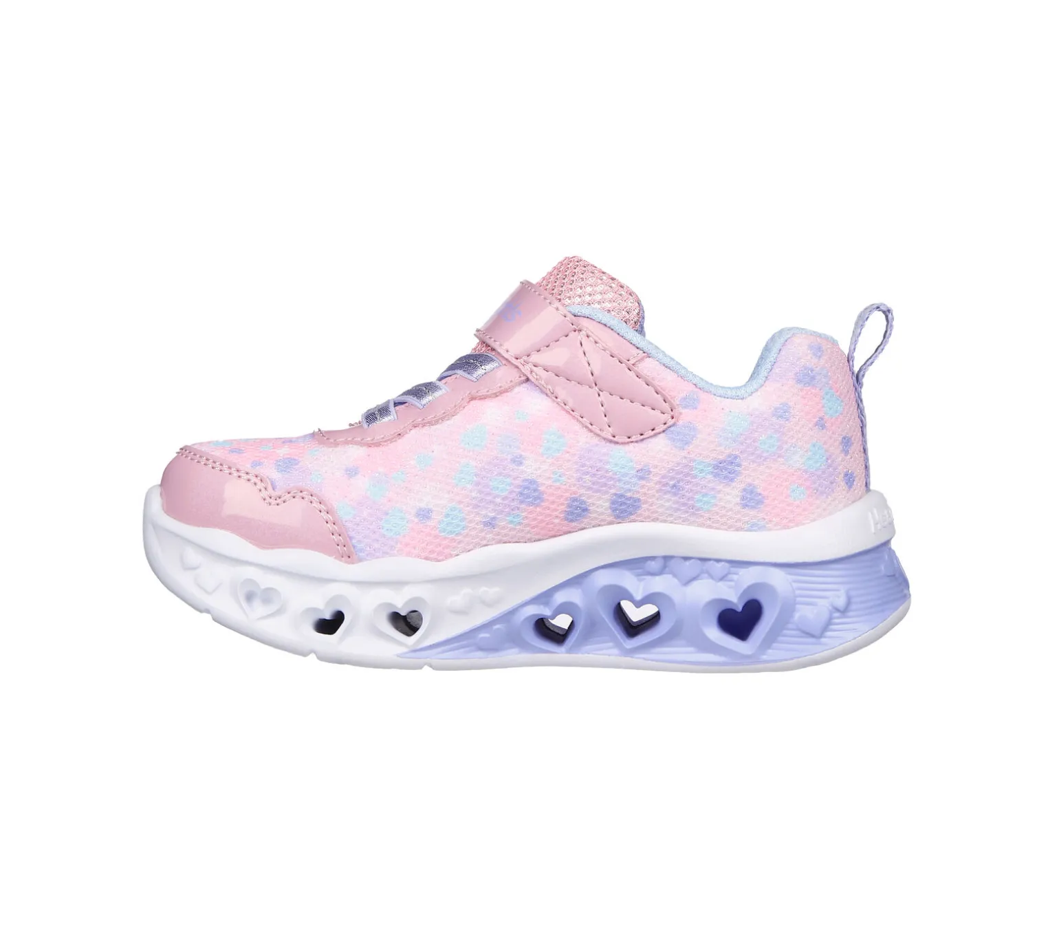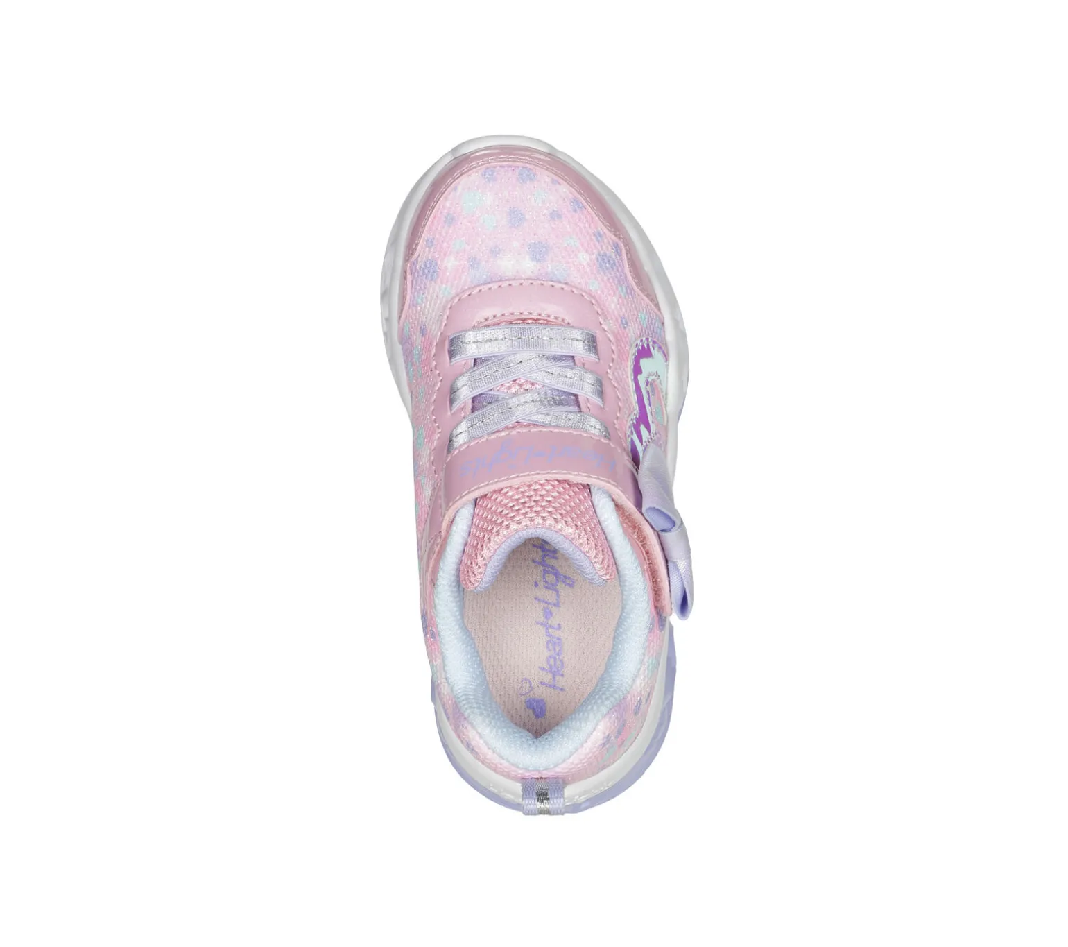 Mit den Skechers Flutter Heart Lights – Kind Spirit ist das Herz bei jedem Schritt dabei. Dieser leichte Schlupfschuh aus Stoff mit Herz-Print verfügt über ein synthetisches Glitzer-Herz-Overlay sowie eine lustige 3-D-Herz-Zwischensohle mit Leuchtfunktion.