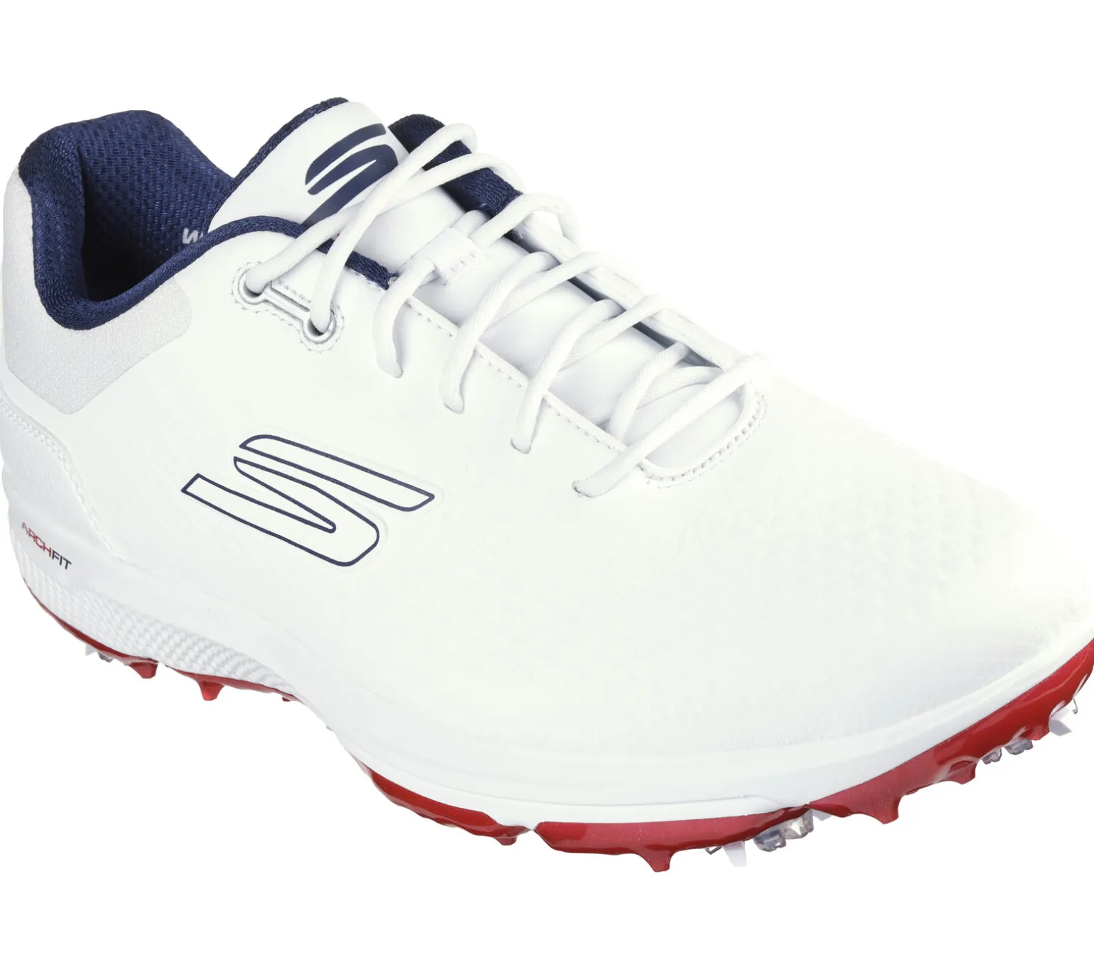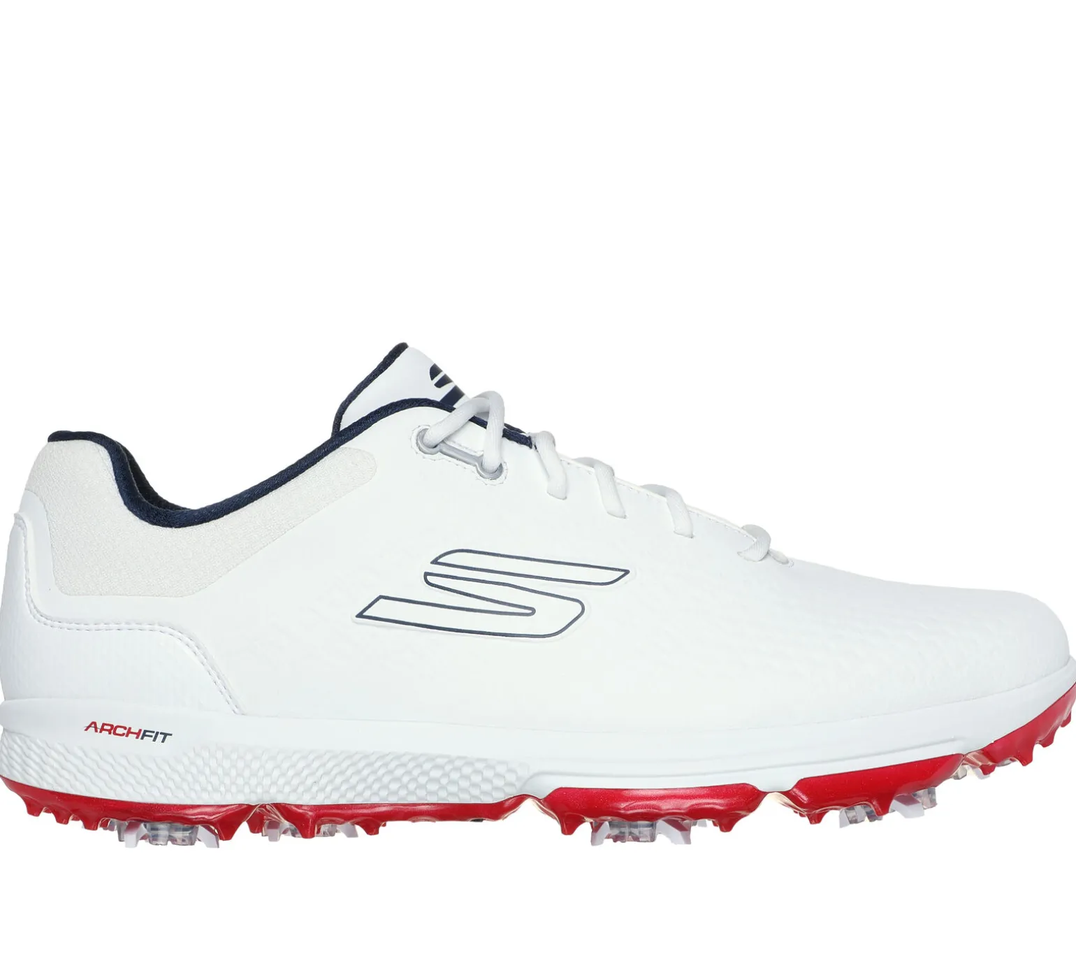 Improve your game with dynamic comfort and style wearing Skechers GO GOLF PRO 6. This waterproof golf design features a lace-up synthetic upper with a removable supportive Arch Fit® insole, ECO FLIGHT cushioning, and outsole with an interchangable Softspikes® Tour Flex Pro system.