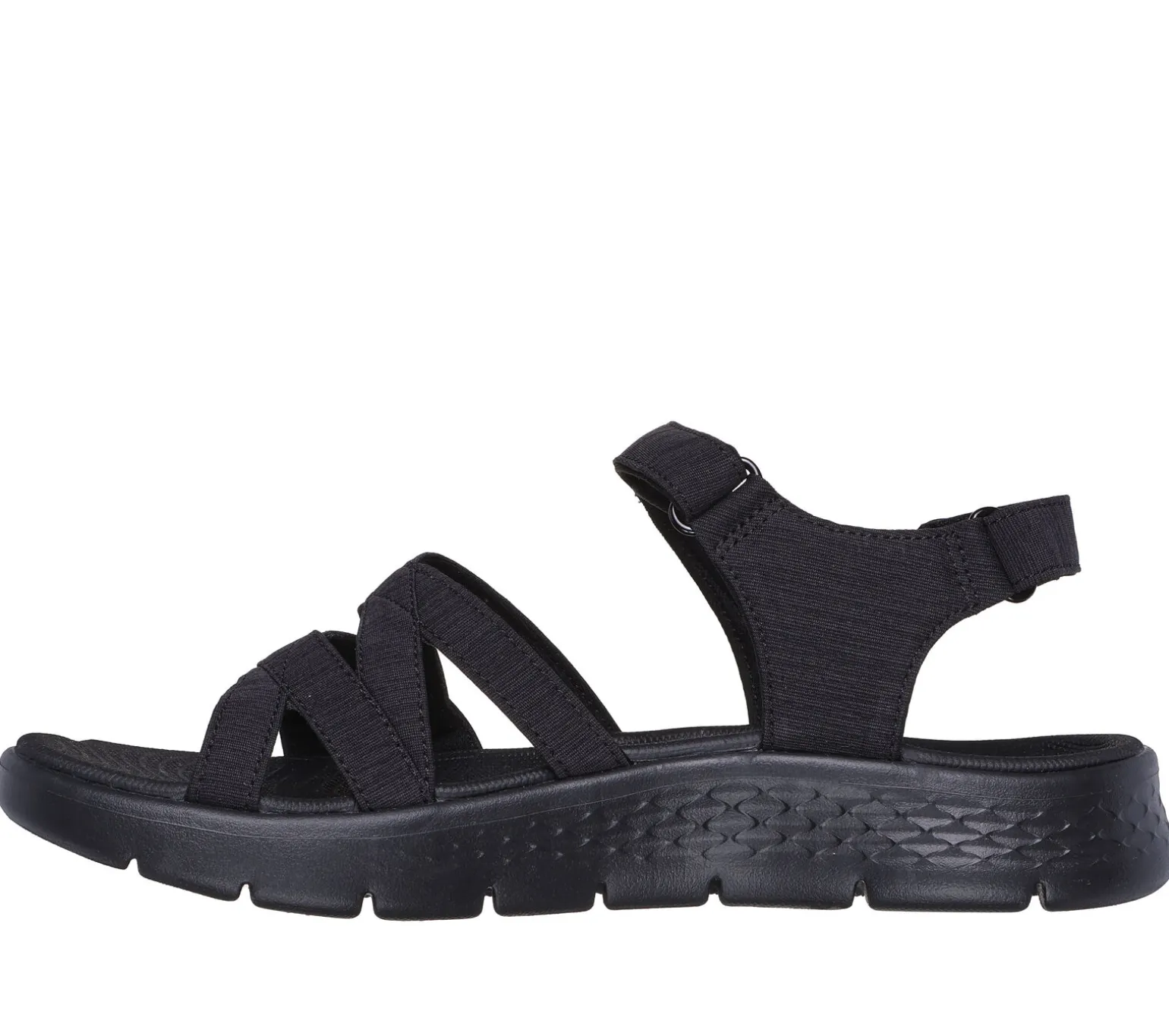 Genieße den luftigen Stil und Tragekomfort der Skechers GO WALK® FLEX Sandal – Sunshine. Diese Riemchensandale verfügt über ein Obermaterial aus meliertem Jerseystrick, einen Riemenverschluss am Knöchel, ein konturiertes Goga Mat®-Fußbett und eine leichte ULTRA GO®-Dämpfung.