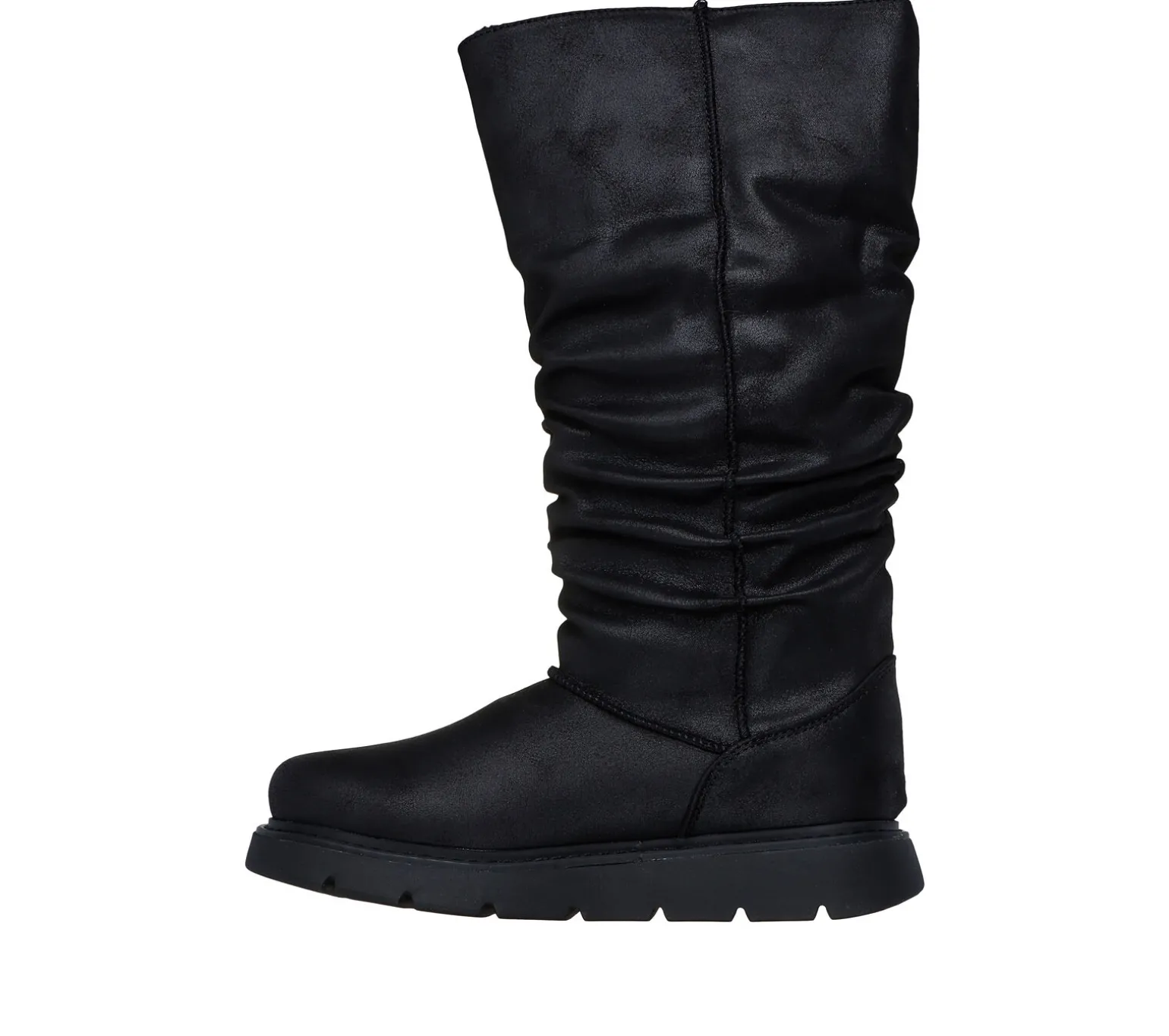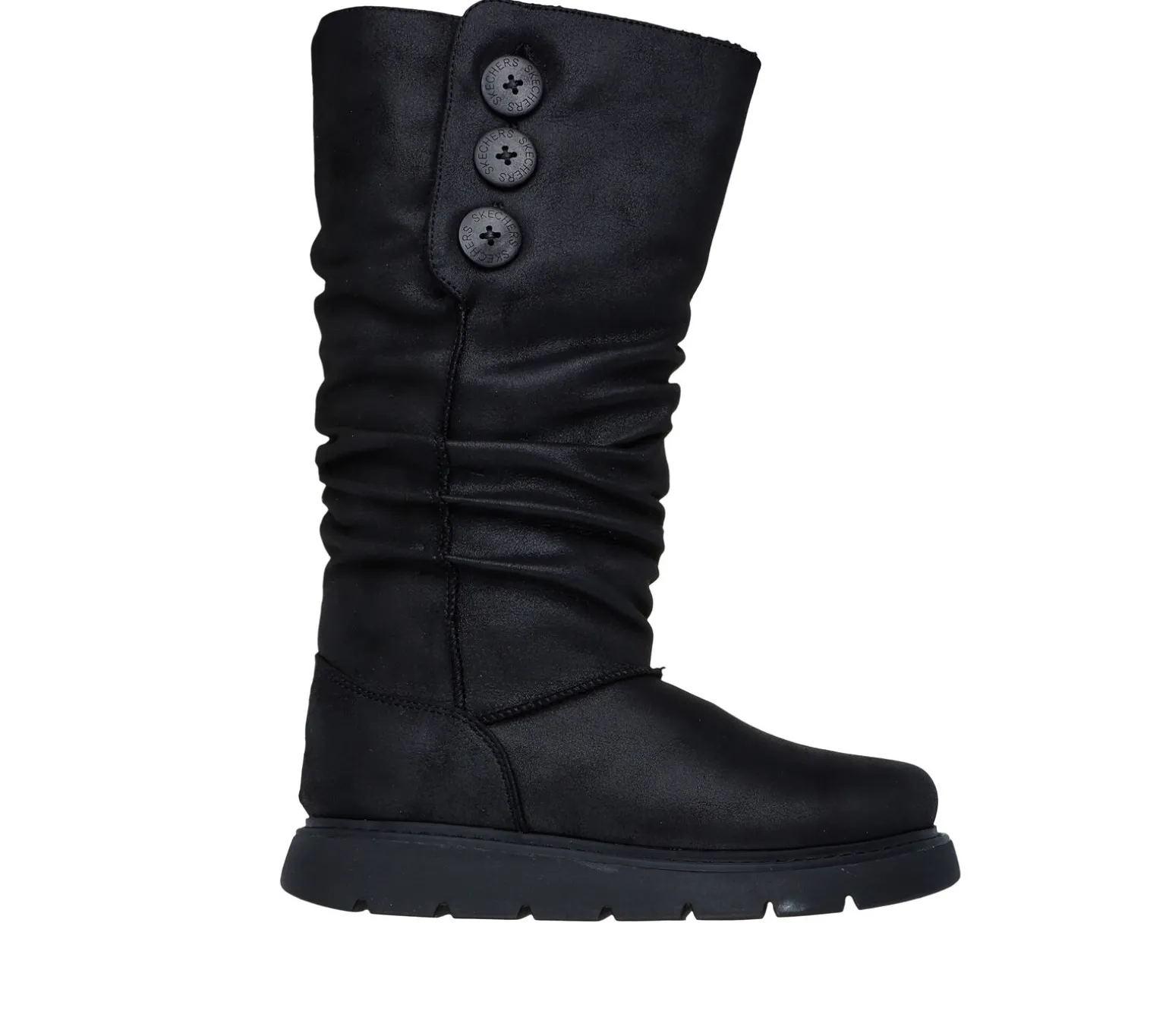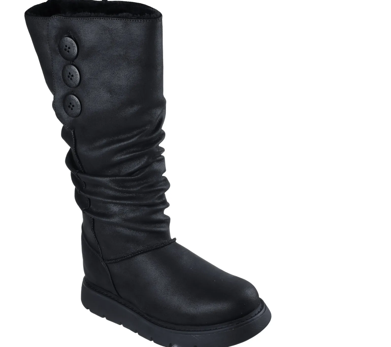 Beat the chills in stylish, cozy comfort wearing Skechers Keepsakes Lite -Freezing Point2. This 3M® Scotchgard® treated knee-high slouch boot features a faux-fur lined leather-look textile upper with stitched seams detail, triple-button side closure, and a cushioned Warm Tech Memory Foam insole.