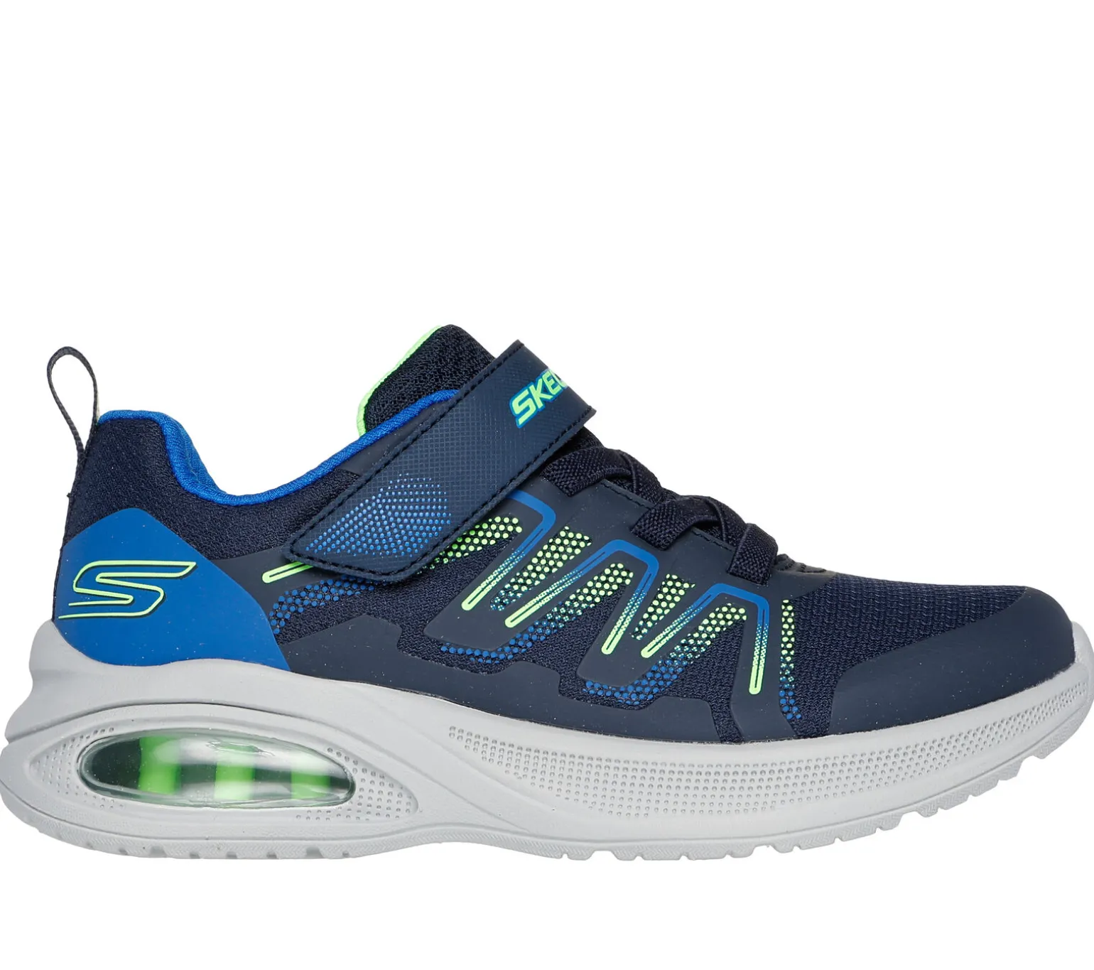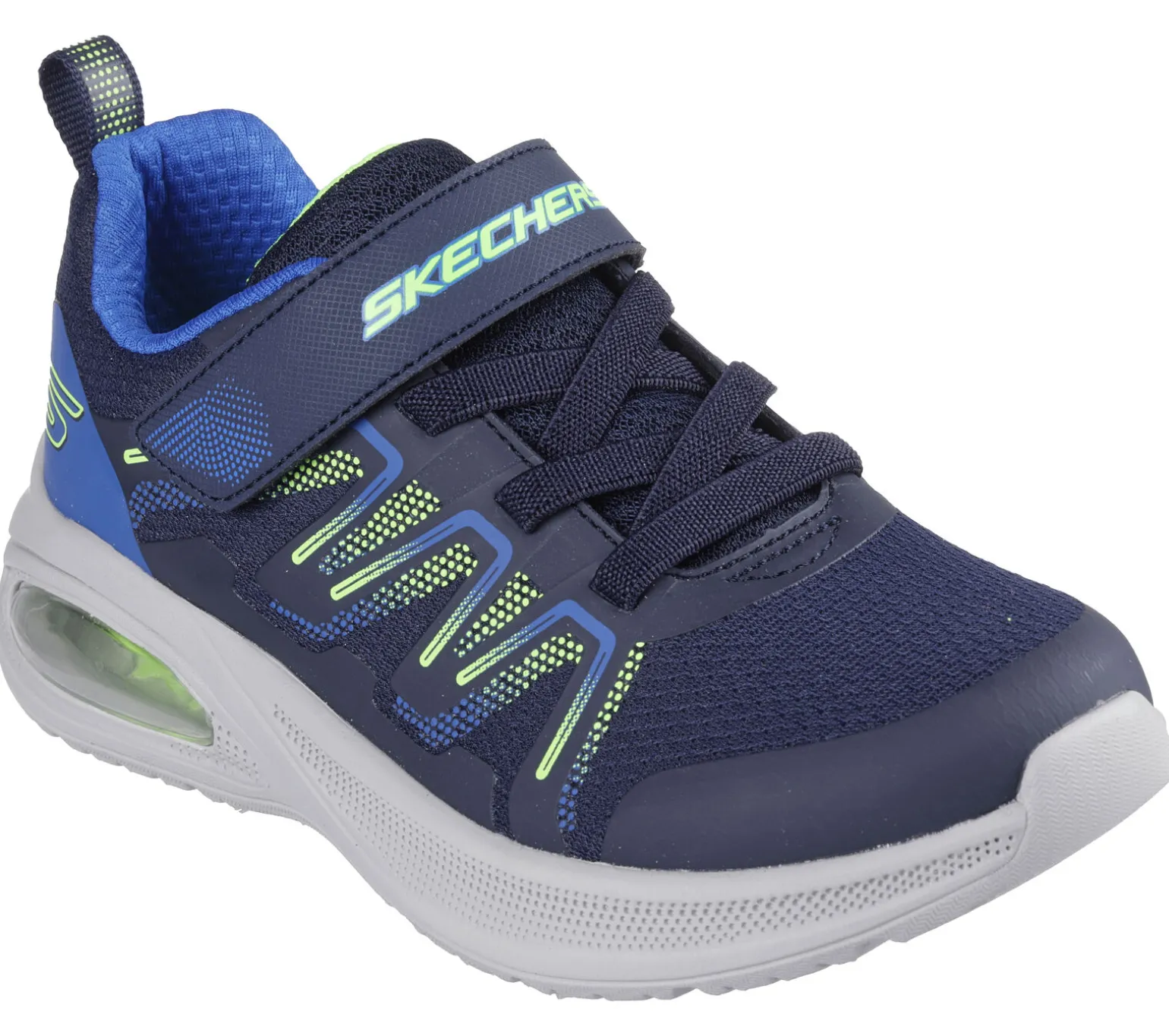 Spiel und Spaß den ganzen Tag mit dem komfortablen Skechers Microspec Max Advance – Speker. Dieser leichte Sneaker mit Stretch-Schnürung verfügt über ein Obermaterial aus Synthetik und Mesh, einen verstellbaren Ristriemen, eine Skech-Air® Zwischensohle mit sichtbarer Luftkissendämpfung und eine gepolsterte Komfort-Innensohle.