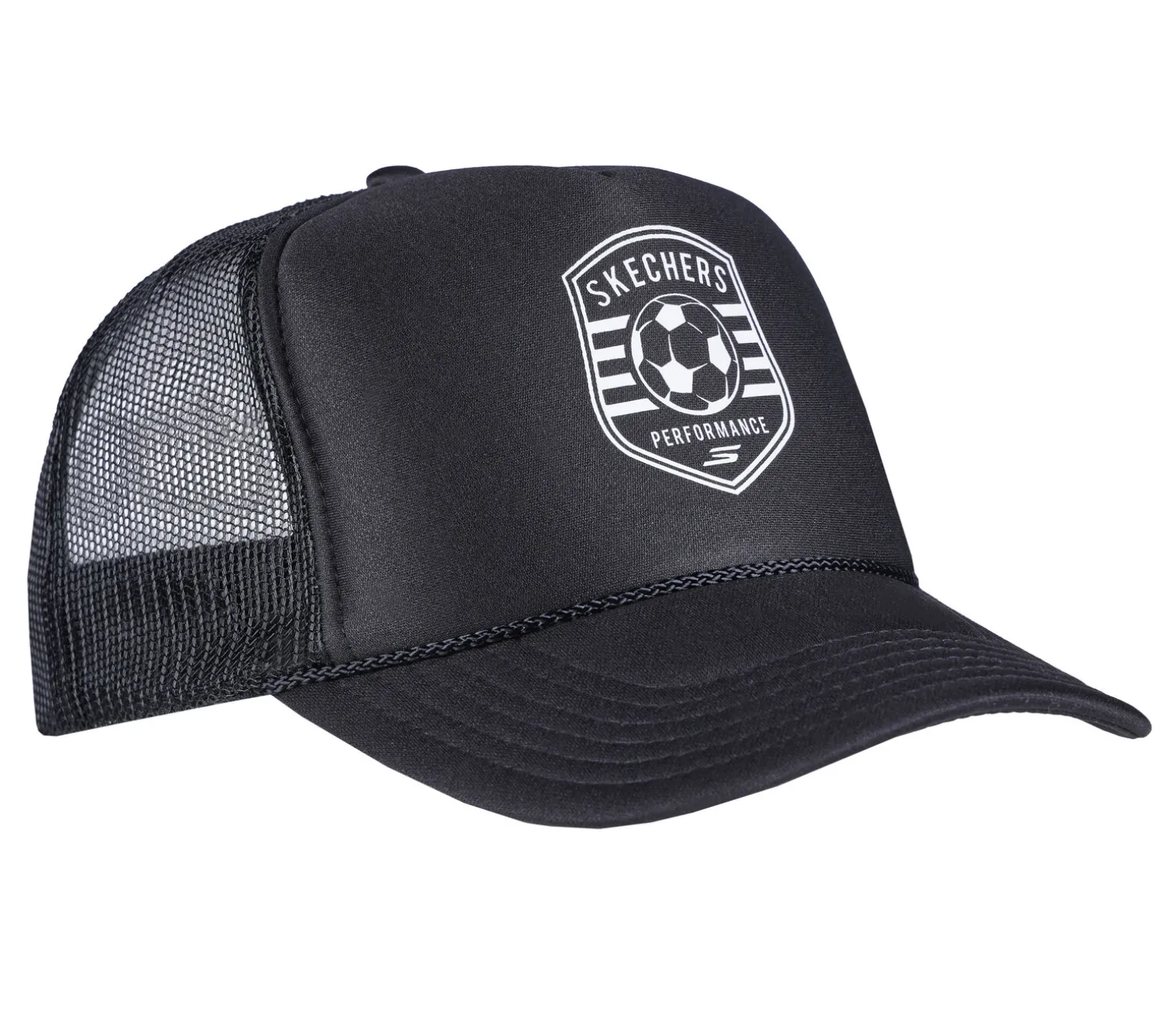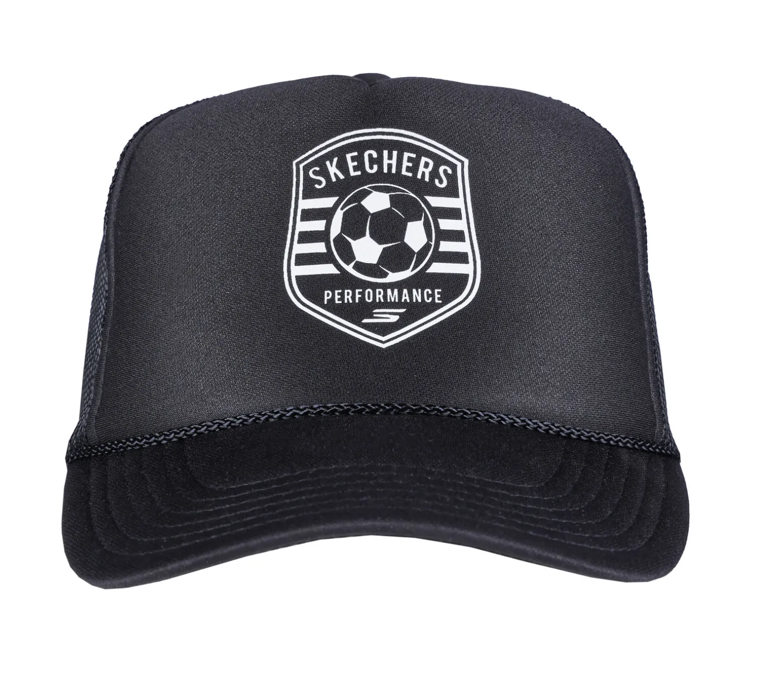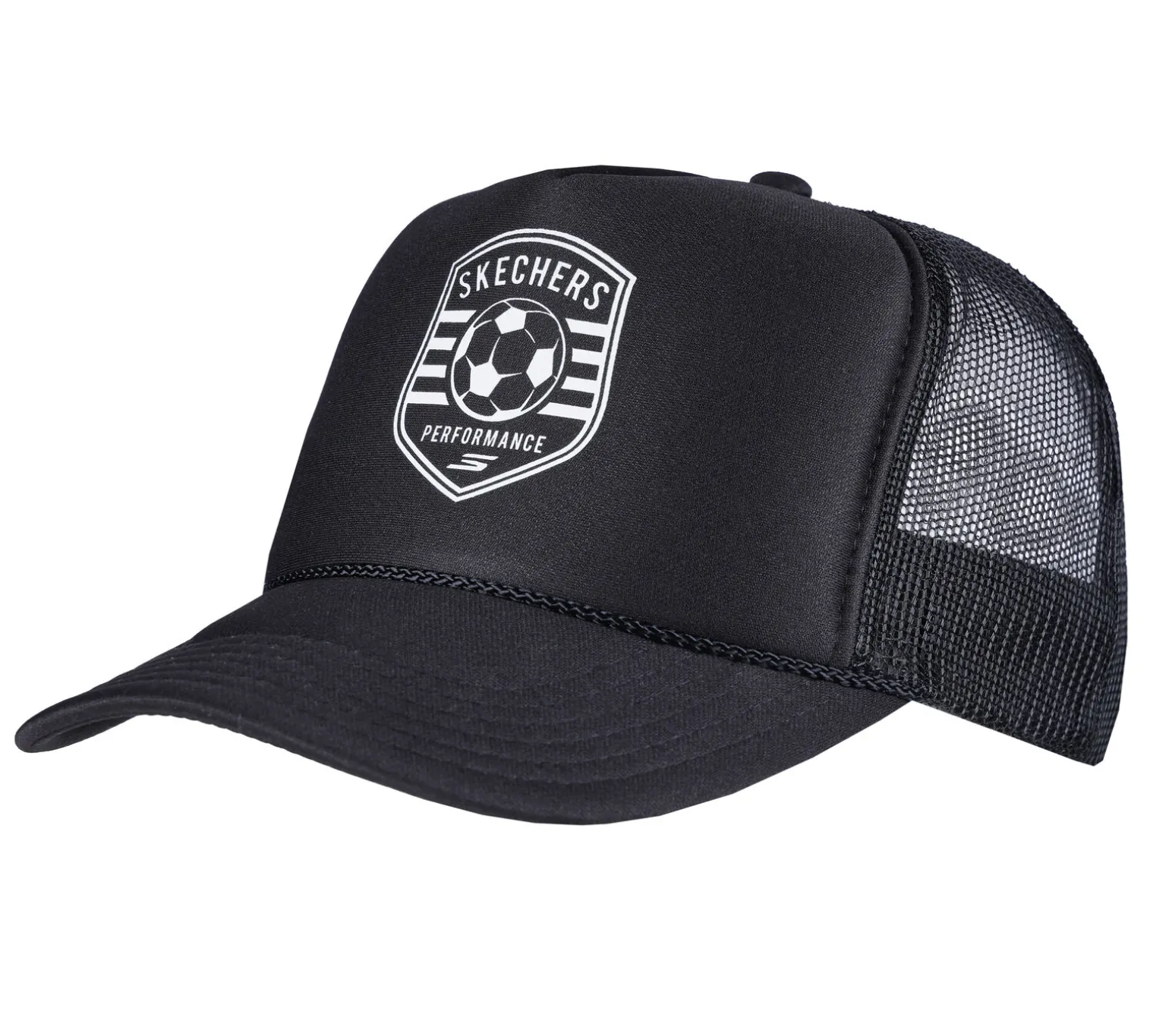 Stay cool while playing hard wearing Skechers Performance Trucker Hat. This mesh trucker cap features braided bill detail, an adjustable snap back closure, and a Skechers Performance graphic on the front panel.