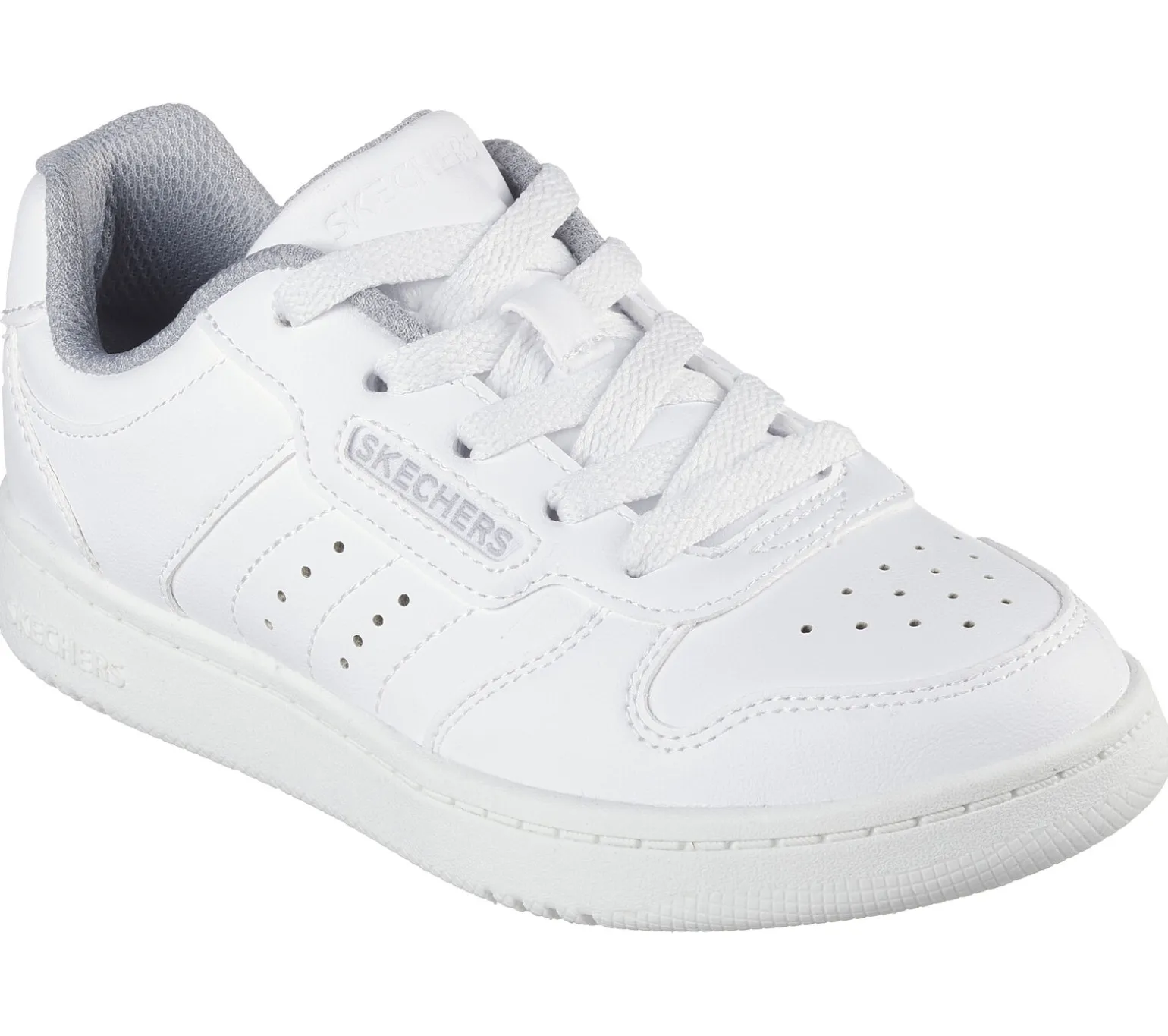 Mit dem bequemen Skechers Street Quick Street – Vorton ziehst du auf dem Platz alle Blicke auf dich. Dieser maschinenwaschbare Low-Top-Sneaker mit Schnürung verfügt über ein glattes Obermaterial aus Duraleder, perforierte Seiteneinsätze und eine gepolsterte Komfort-Innensohle.