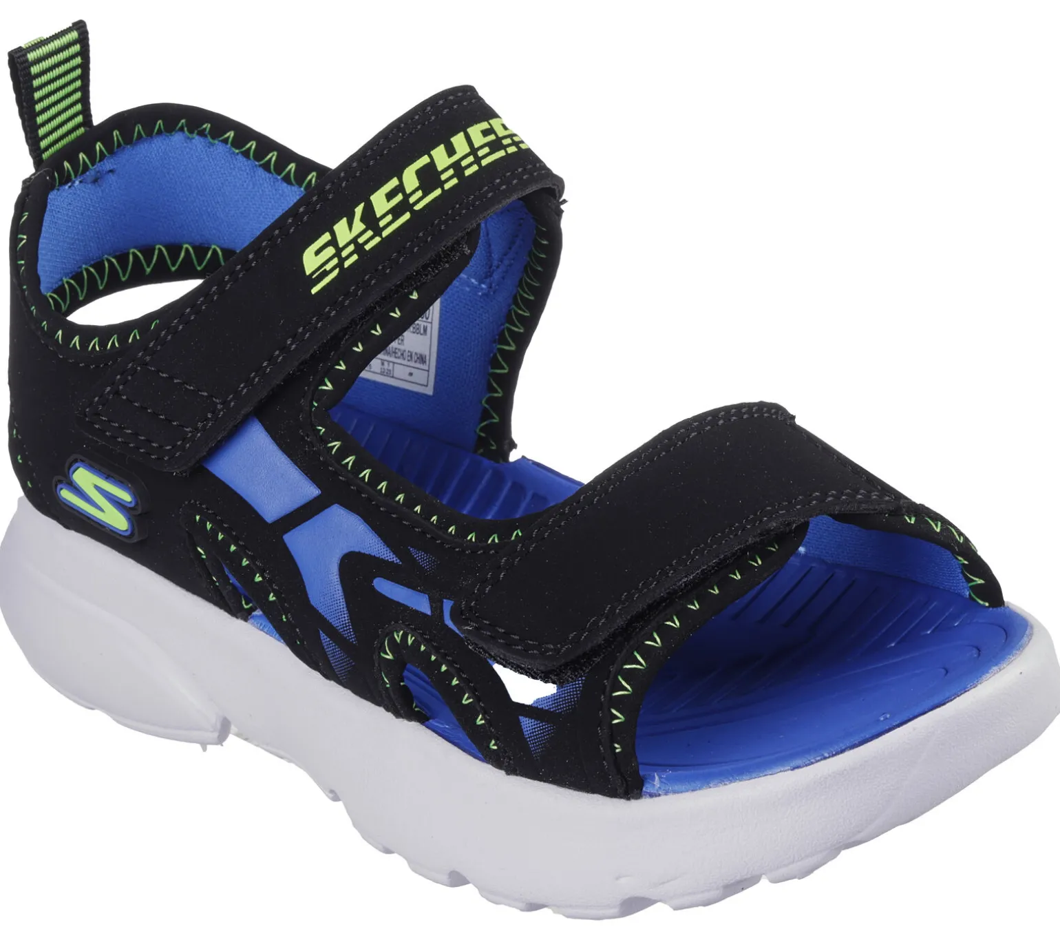 Mit dem Skechers Razor Splash kannst du bequem und stilvoll bei sonnigem Wetter entspannen. Diese verstellbare Sandale in sportlichem Design verfügt über ein geprägtes Obermaterial aus Synthetik mit verstellbaren Riemen am Rist und im Vorfußbereich, sowie eine gepolsterte Komfort-Innensohle.