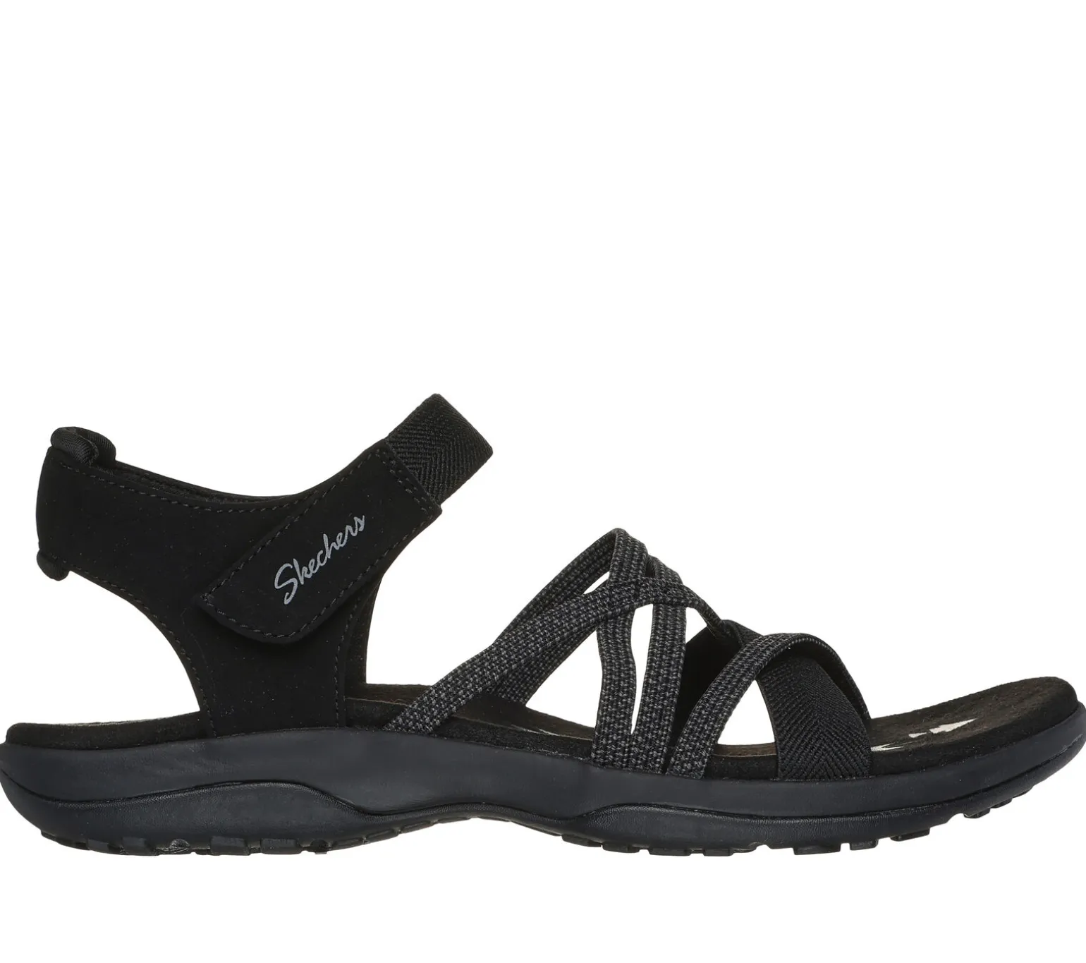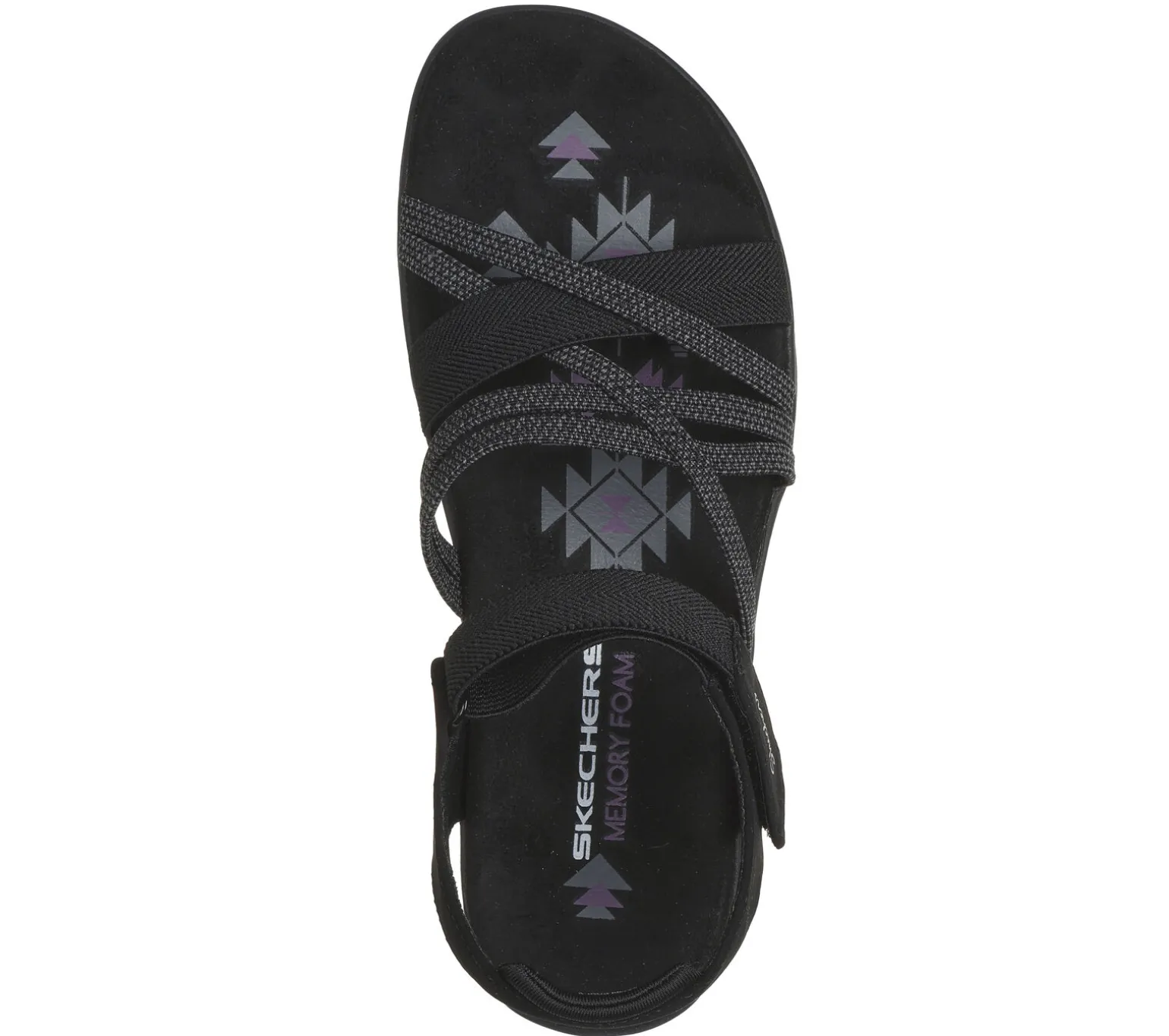 Mit der Skechers Reggae Slim – Meadow Grazer Sandale stehen Stil und Komfort an erster Stelle. Diese Sandale verfügt über ein Obermaterial aus Synthetik und weichem Stretch Fit, einen verstellbaren Fersenriemen und ein gepolstertes Skechers Memory Foam-Fußbett.