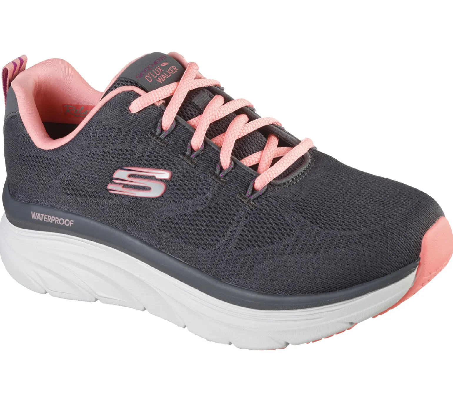 Genieße auch im Regen besten Tragekomfort mit dem Skechers Relaxed Fit®: D’Lux Walker – Get Oasis. Dieser Schnürschuh verfügt über ein wasserdichtes Obermaterial aus Mesh und eine Skechers Air-Cooled Memory Foam®-Innensohle.