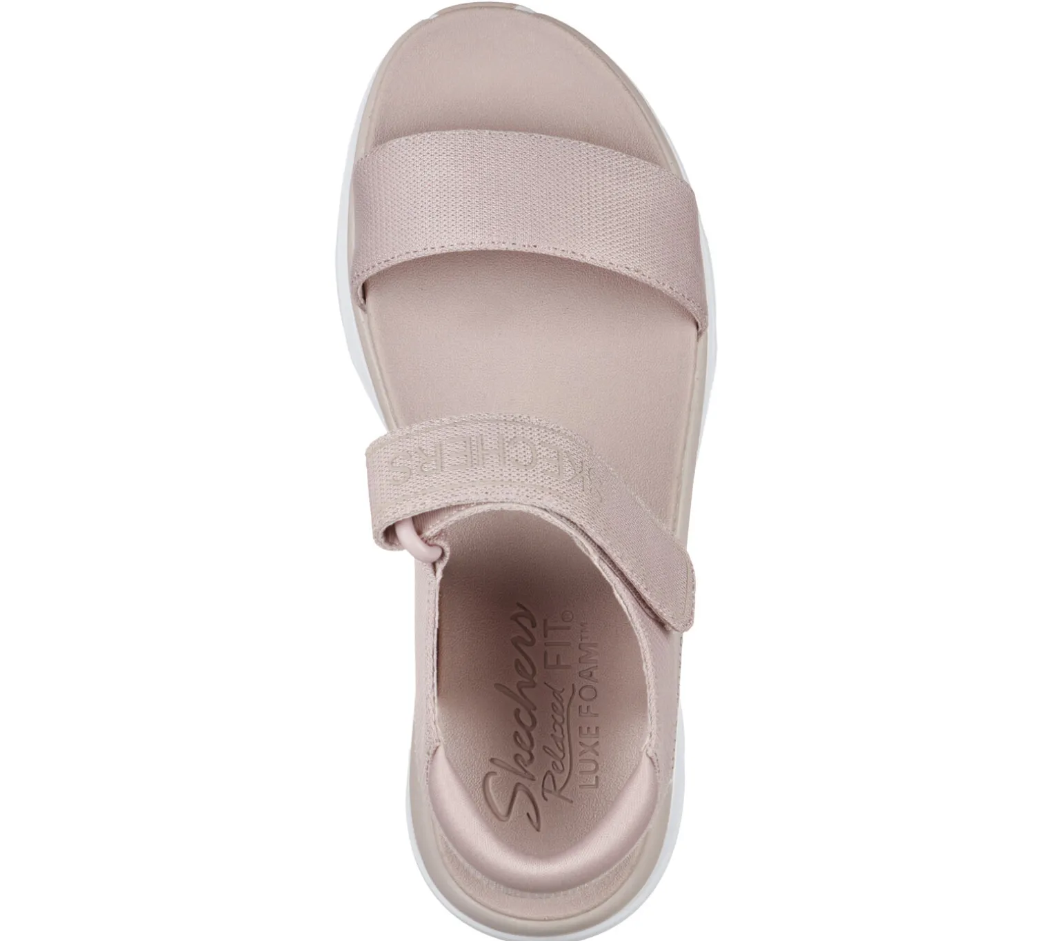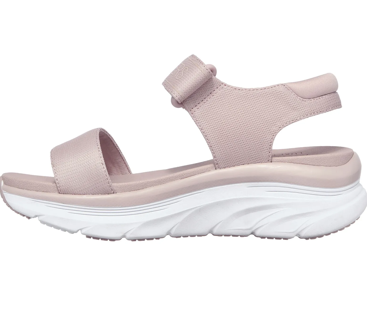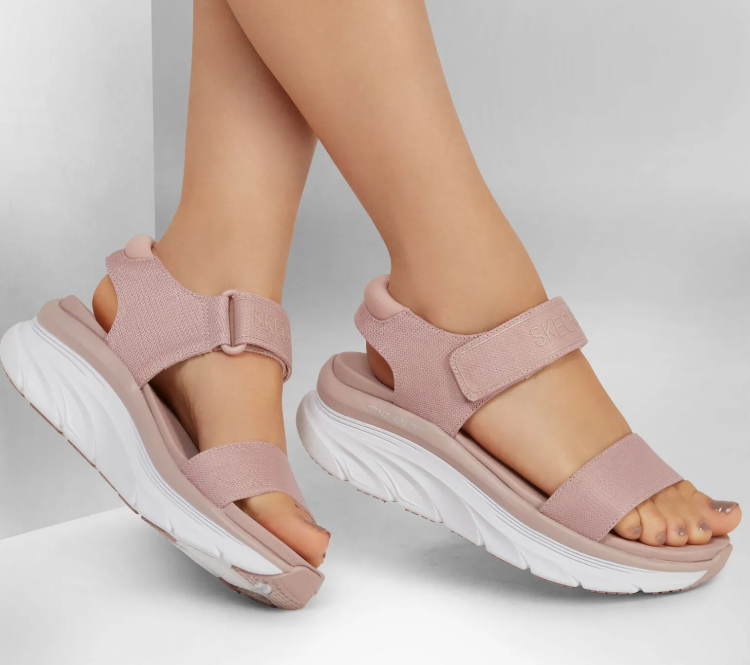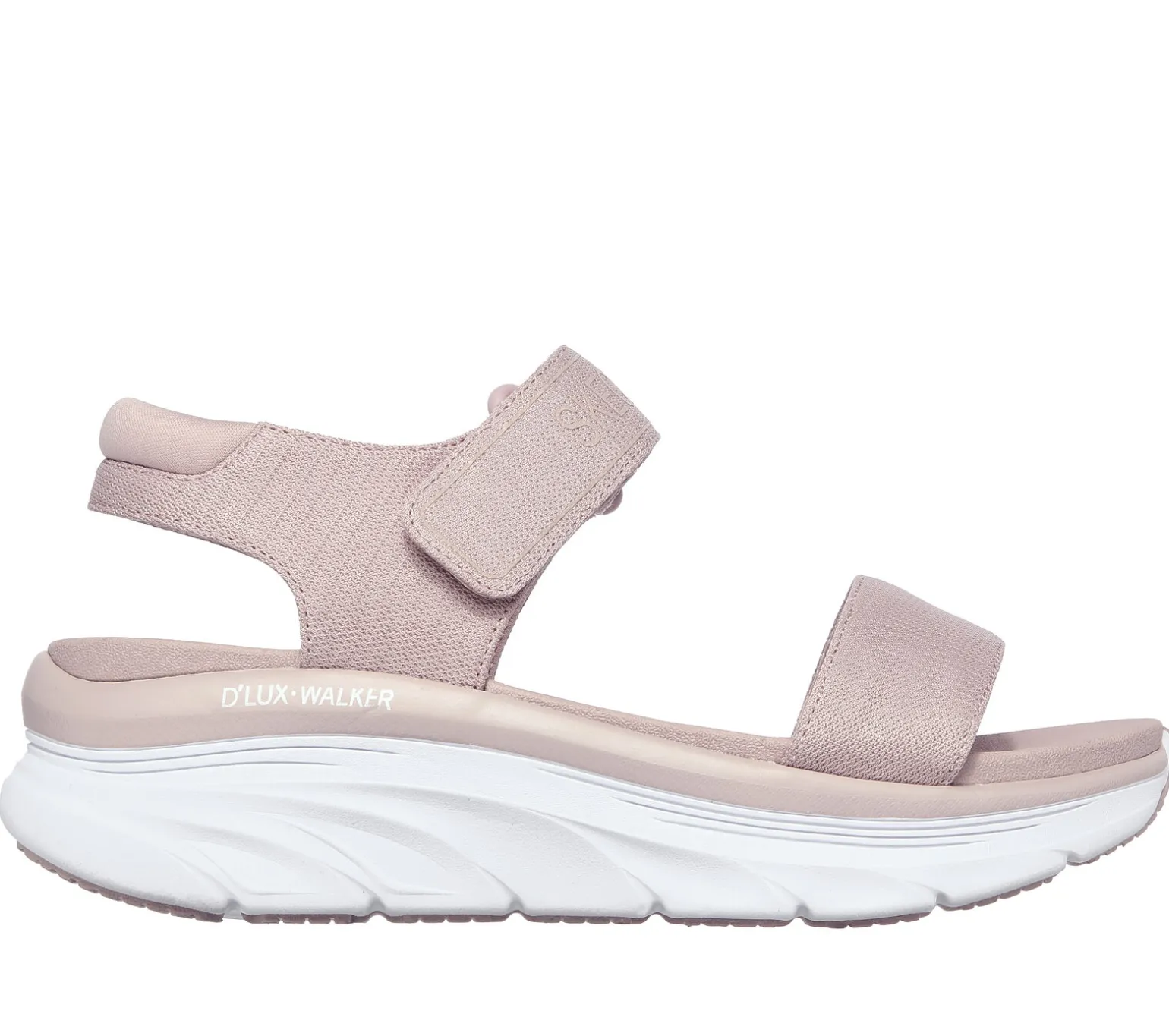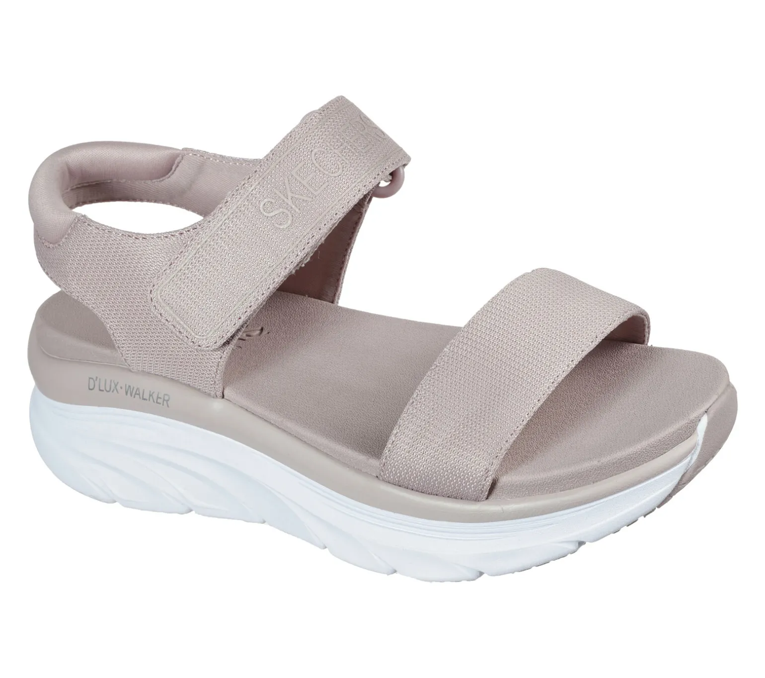 Wirklich langanhaltende Stützung und Komfort erhältst du in der Skechers Relaxed Fit®: D’Lux Walker – New Block. Sportliche Sandale mit Knöchelriemen aus funktionalem, aufgesetztem Strickmesh mit Luxe Foam® Fußbett