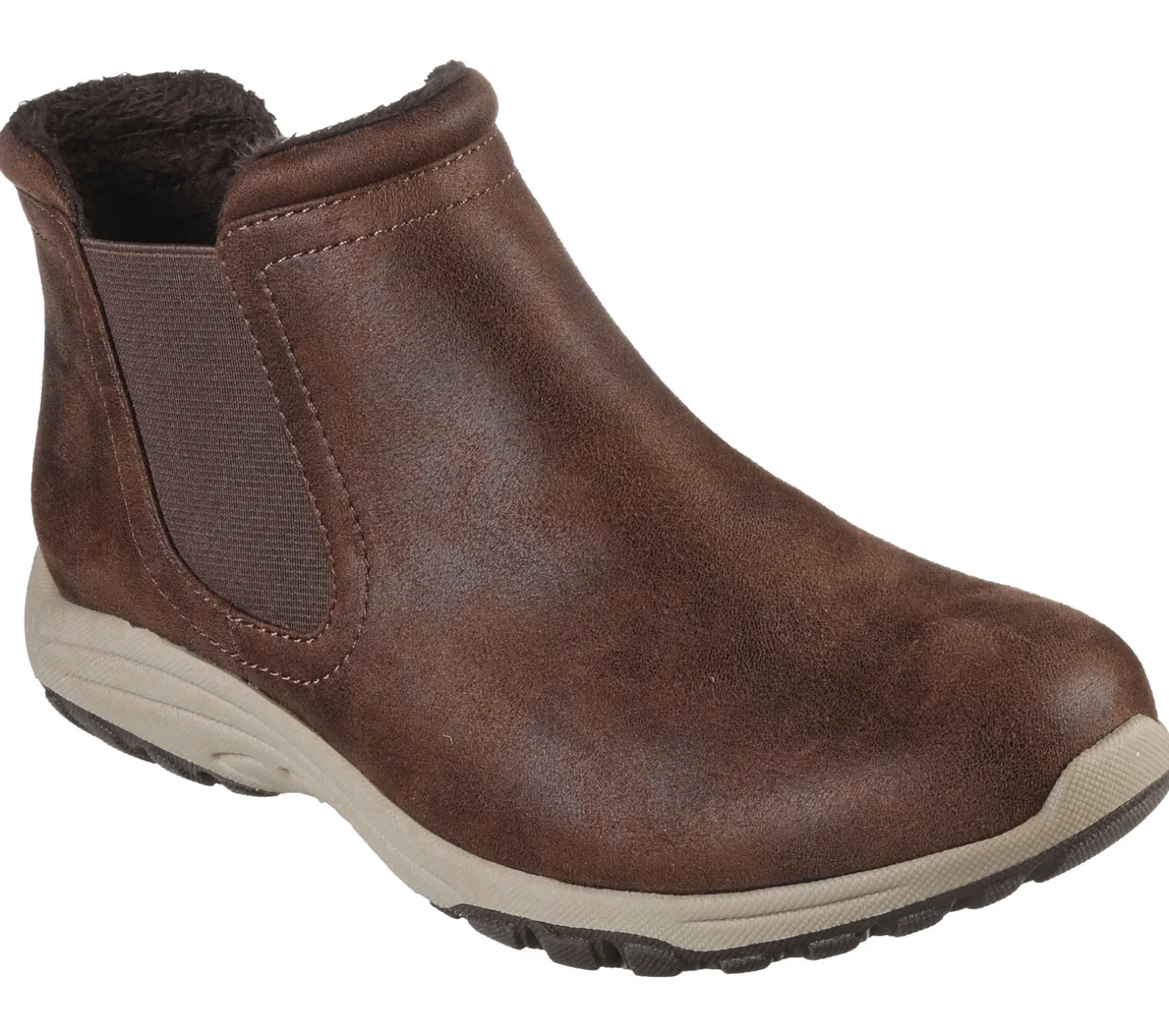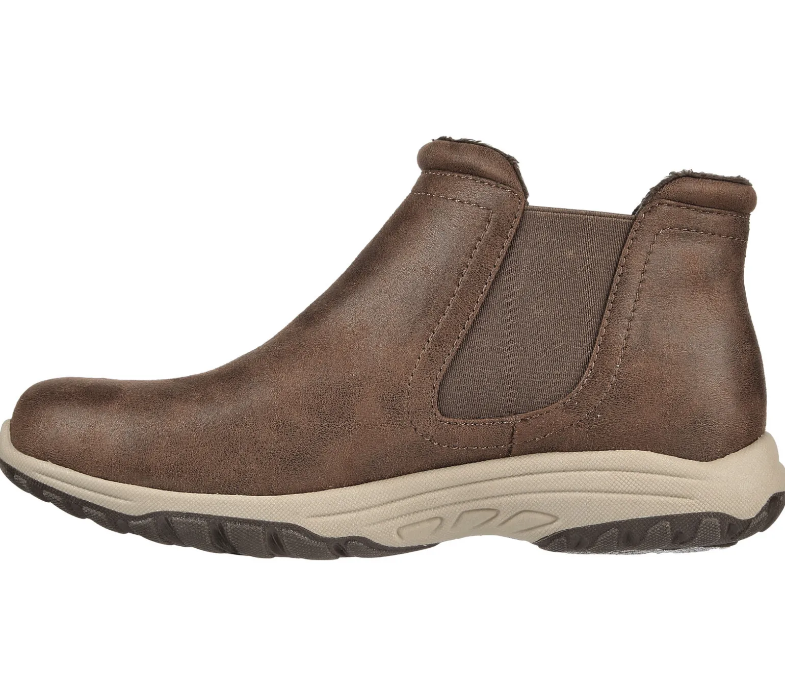 Erlebe Komfort auf Schritt und Tritt mit dem Skechers Relaxed Fit®: Reggae Fest 2.0 – New Yorker. Dieser Chelsea-Bootie zum Hineinschlüpfen hat ein synthetisches Obermaterial aus Mikroleder und eine Skechers Air-Cooled Memory Foam® Innensohle.