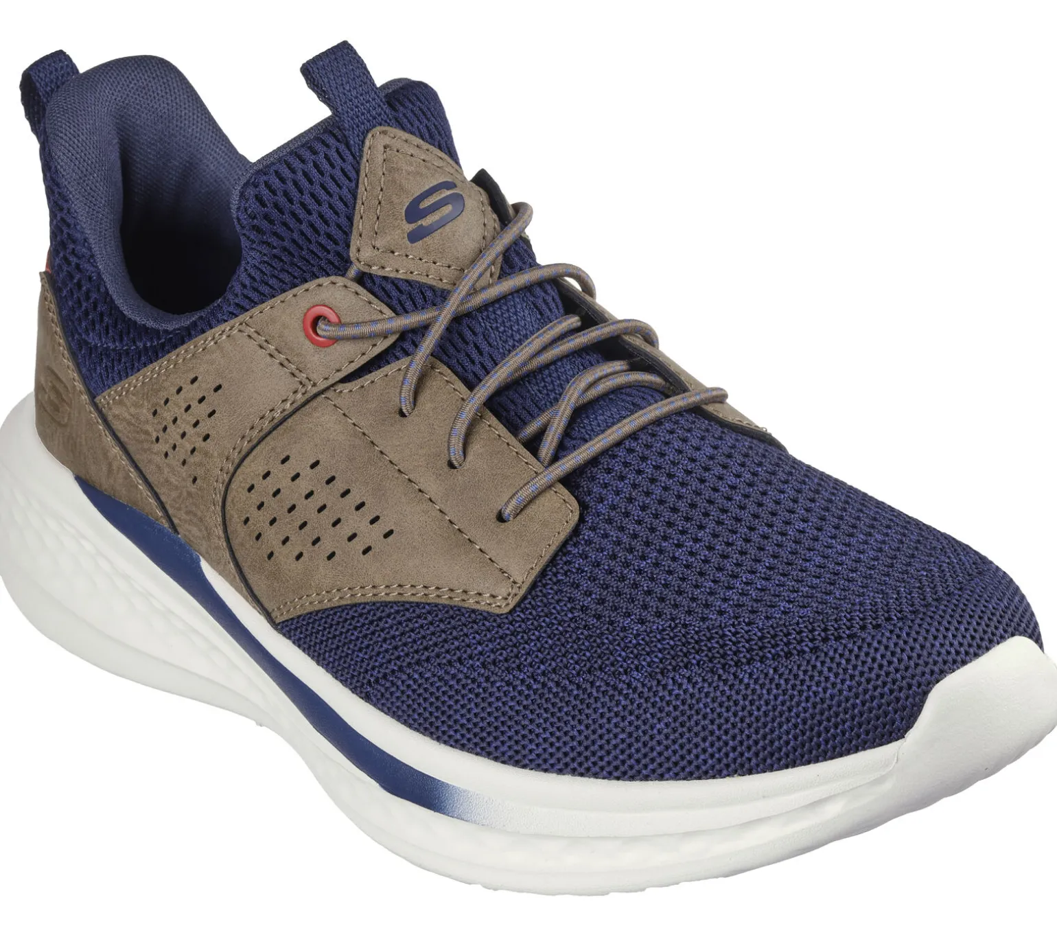 Klassischer, moderner Stil und optimaler Tragekomfort vereinen sich im Skechers Relaxed Fit: Slade – Breyer. Dieser Schnürschuh verfügt über ein Obermaterial aus Mesh und Synthetik, eine mit Aktivkohle angereicherte Skechers Air-Cooled Memory Foam-Innensohle, die potenzielle Gerüche neutralisiert, und Skechers Goga Mat Arch für zusätzlichen Halt.