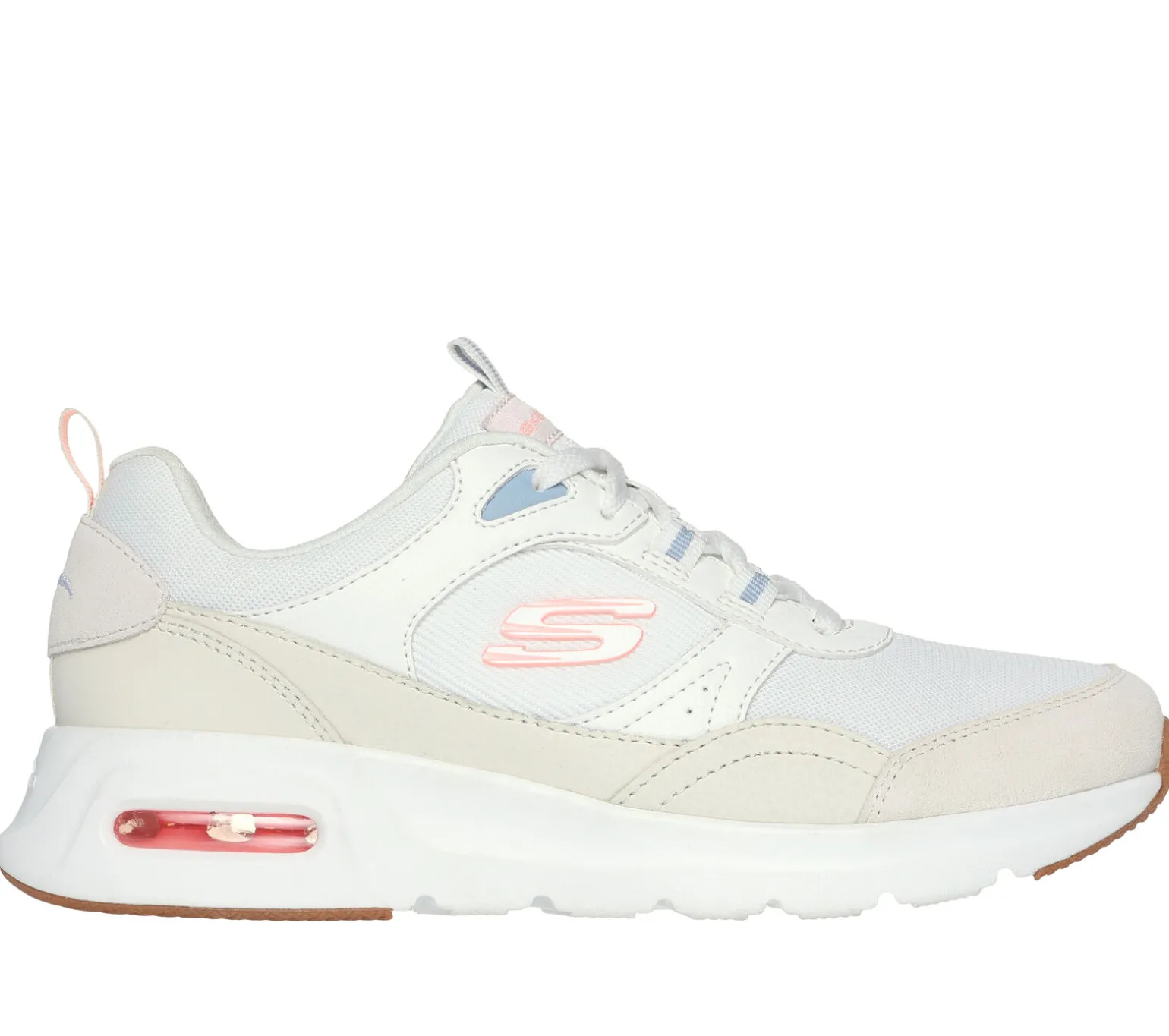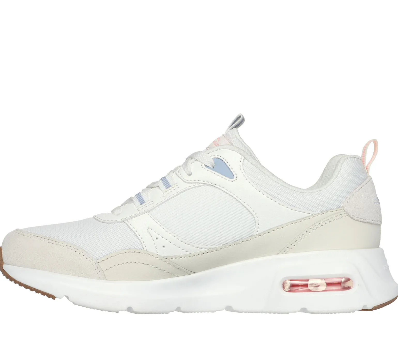 Der Skechers Skech-Air Court – Retro Avenue vereint trittsicheren Tragekomfort und sportlichen Stil. Dieser Sneaker mit Schnürung verfügt über ein Obermaterial aus Wildleder, Synthetik und Mesh, eine gepolsterte Skechers Air-Cooled Memory Foam Innensohle und eine sichtbare Skech-Air® Zwischensohle.