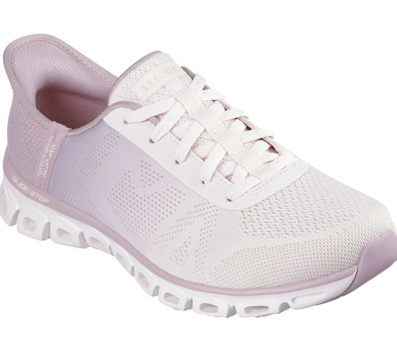 Extrem flexibler Komfort trifft auf eleganten Stil im Skechers Hands Free Slip-Ins®: Glide-Step® – Excite. Dieser vegane Schnürschuh ist mit dem exklusiven Skechers Fersenkissen (Heel Pillow) ausgestattet und verfügt über ein Obermaterial aus Funktionsmesh mit Farbverlauf, eine Skechers Air-Cooled Memory Foam Komfort-Innensohle und eine gepolsterte, geometrische Glide-Step Zwischensohle.