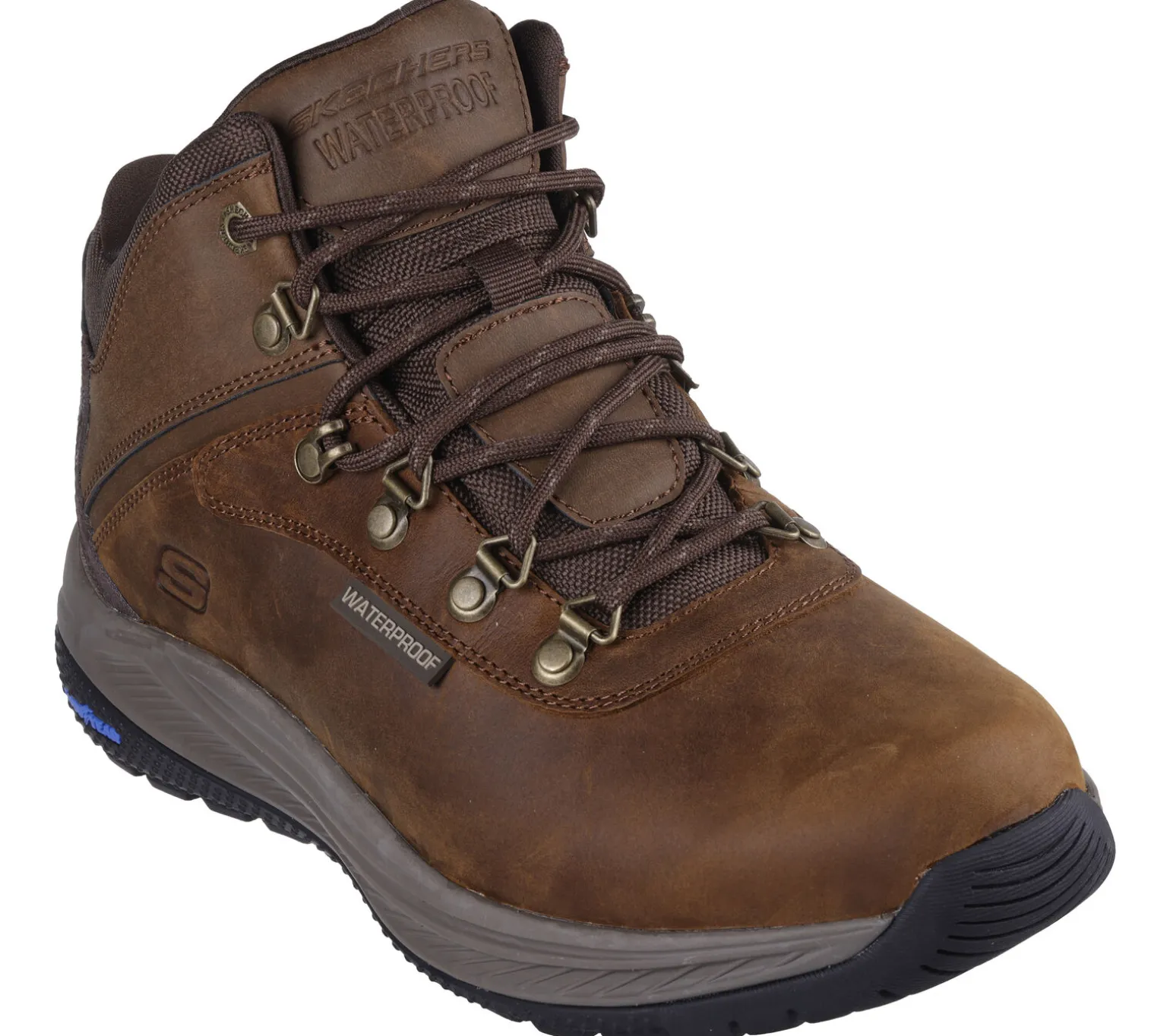 Einfach hineinschlüpfen und schon kann das nächste Abenteuer losgehen – im Skechers Hands Free Slip-Ins® Relaxed Fit: Meroe – Pikeman. Dieser vollständig wasserdichte Outdoor-Stiefel mit halbhohem Schaft ist mit dem exklusiven Skechers Fersenkissen (Heel Pillow) ausgestattet und verfügt über ein Obermaterial aus Leder und Synthetik mit verstellbaren runden Schnürsenkeln, eine Skechers Air-Cooled Memory Foam-Innensohle und eine Goodyear® Gummilaufsohle.