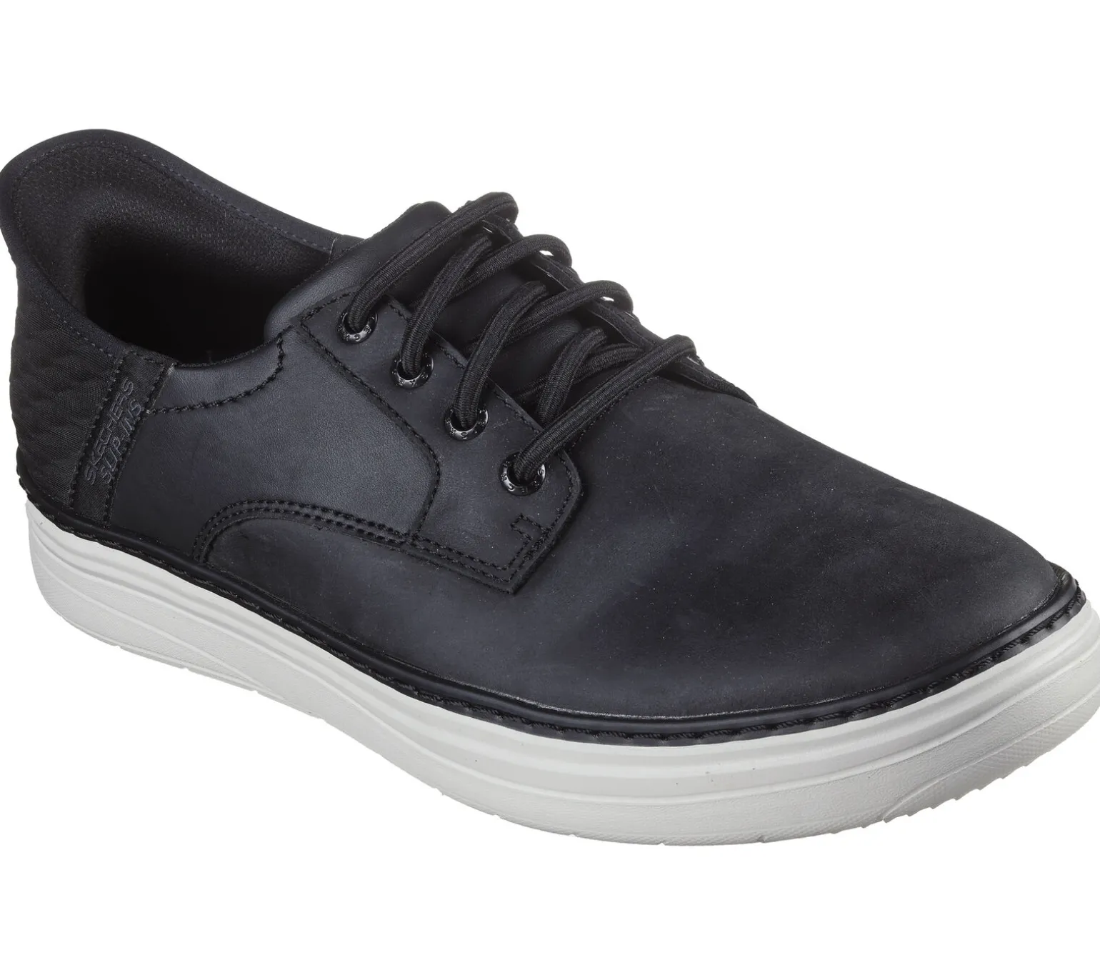 Simply step in and go wearing Skechers Hands Free Slip-ins® Relaxed Fit®: Hyland – Ryland. Designed with our exclusive Heel Pillow, this stretch-lacedClassic Fit style features a leather upper with a charcoal-infused Skechers Air-Cooled Memory Foam® comfort insole and Memory Arch cushioning for added support.