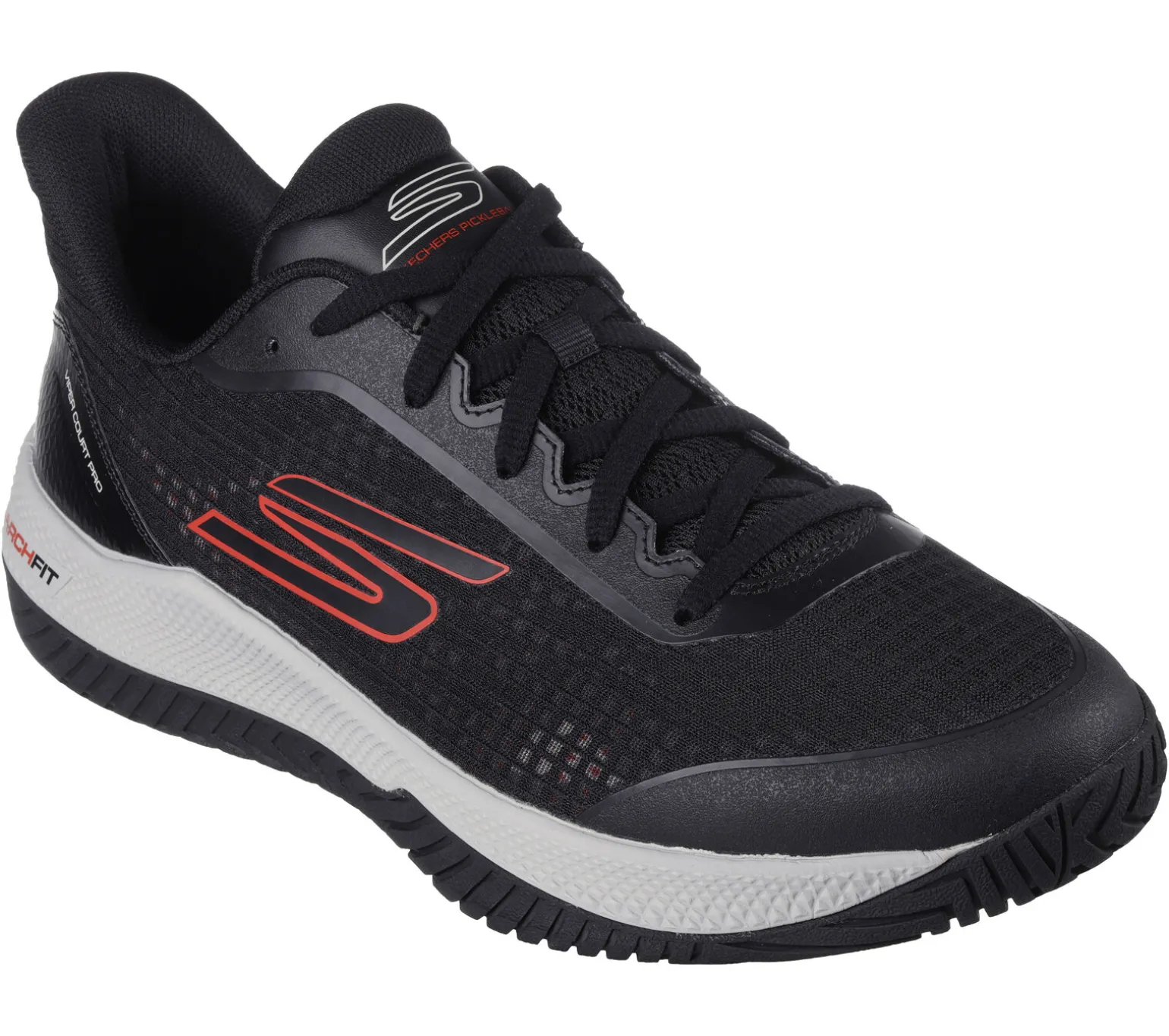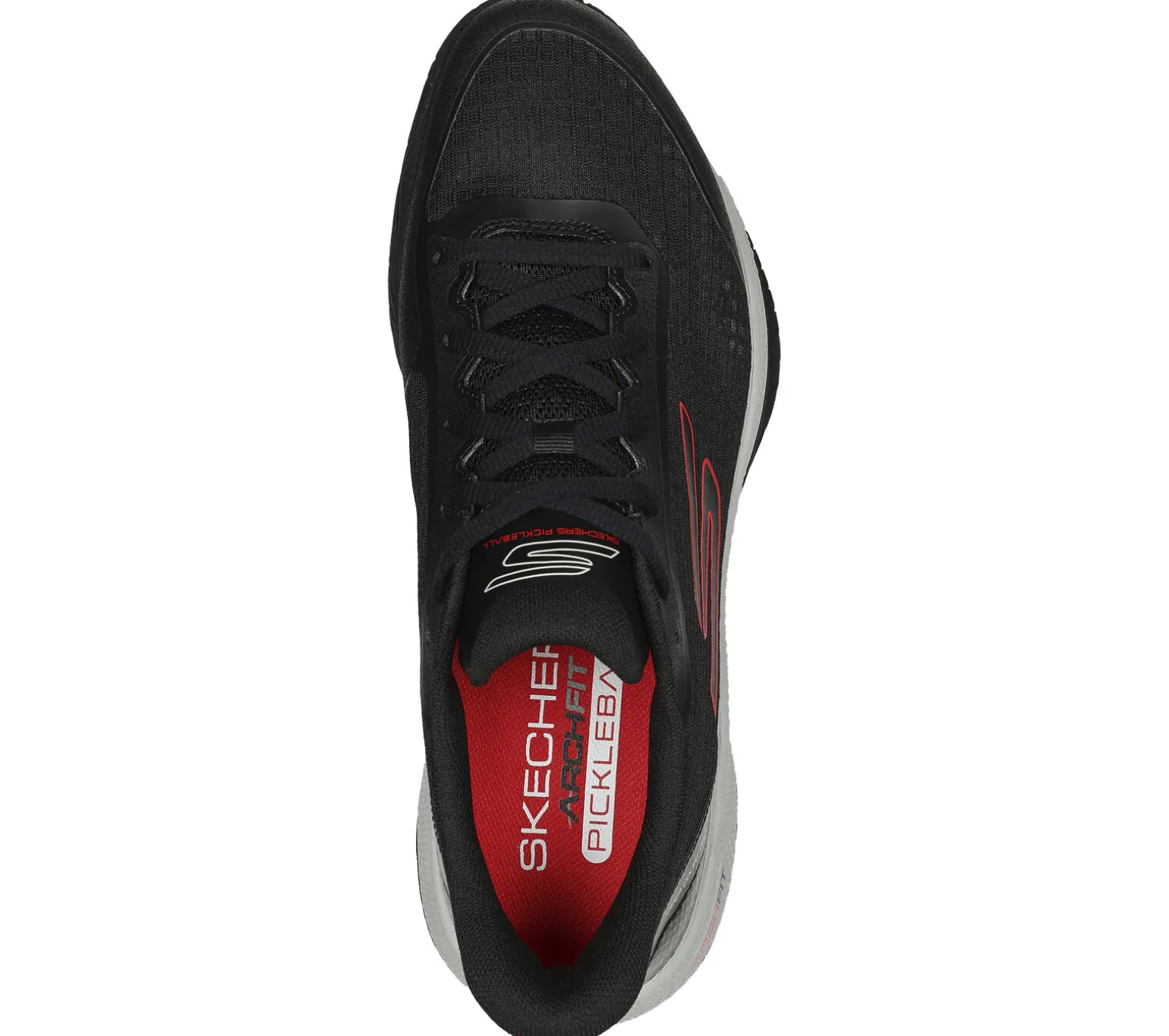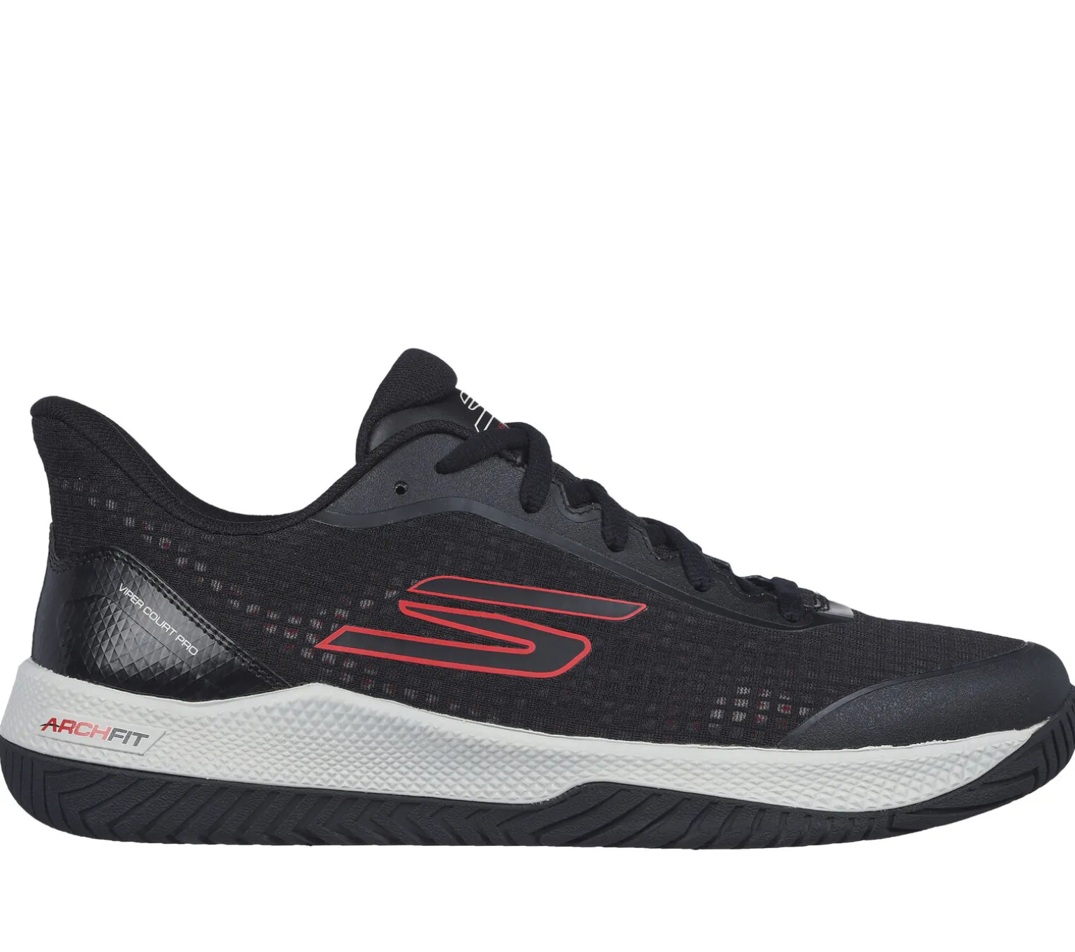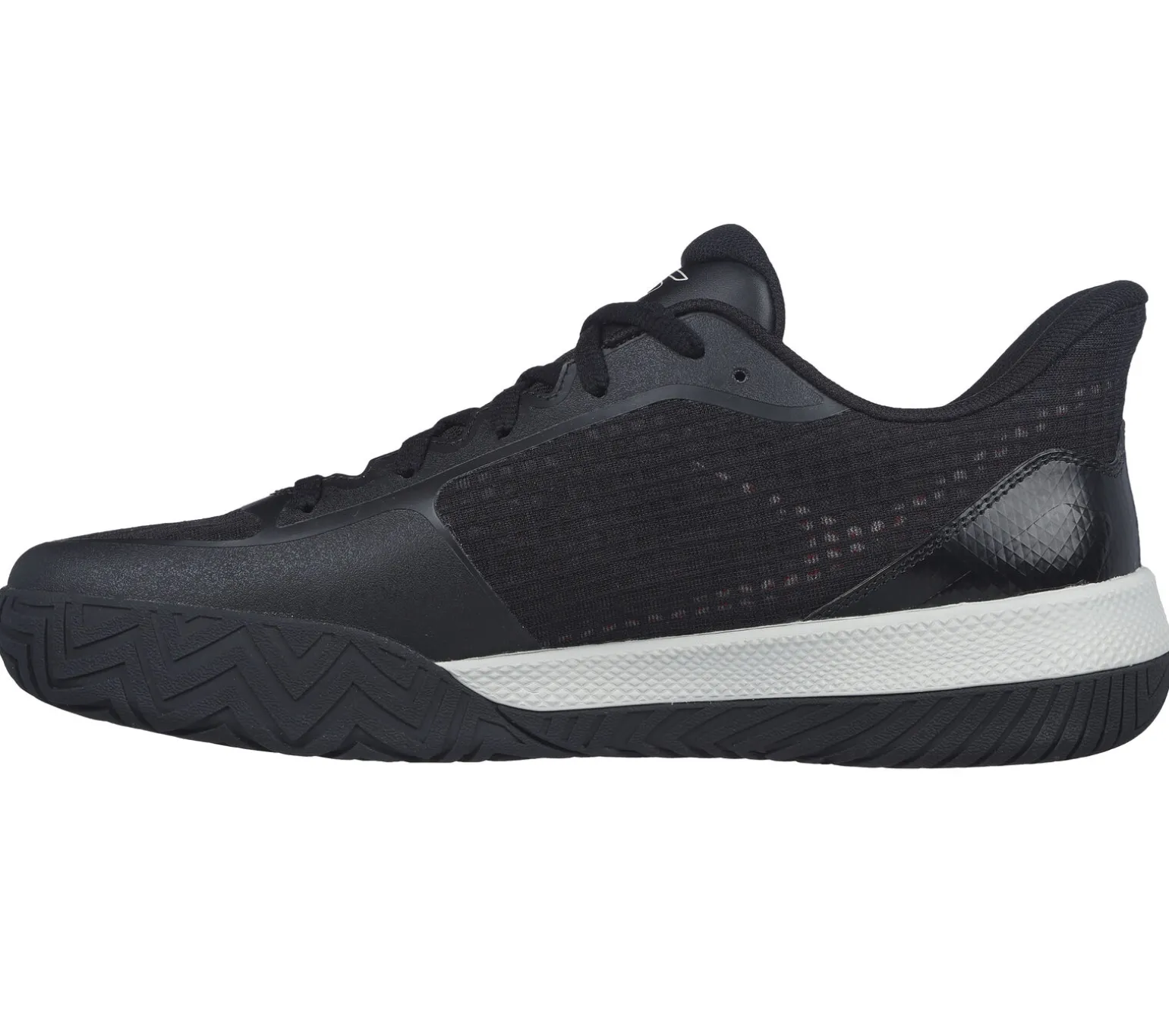 Trainiere selbstsicher und komfortabel mit dem Skechers Viper Court Pro – Pickleball. Dieser Schnürschuh ist speziell für Pickleball-Spieler entwickelt und verfügt über ein stützendes, atmungsaktives Obermaterial aus Mesh mit Synthetik-Overlays als zusätzlichen Schutz, einer herausnehmbaren Arch Fit®-Innensohle und einer leichten ULTRA FLIGHT-Dämpfung. Das Design ist mit einer Goodyear® Gold-Laufsohle aus Verbundstoff ausgestattet, die strapazierfähiger ist und es den Spielern ermöglicht, auf der Pickleball-Spielfläche kontrolliert zu rutschen.