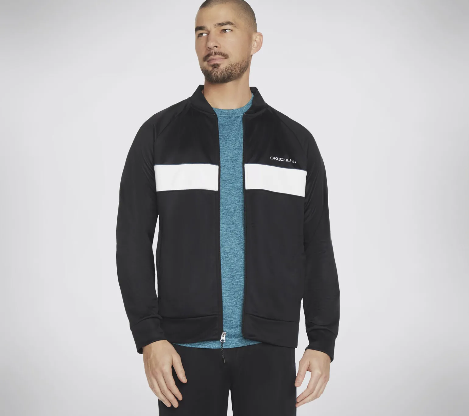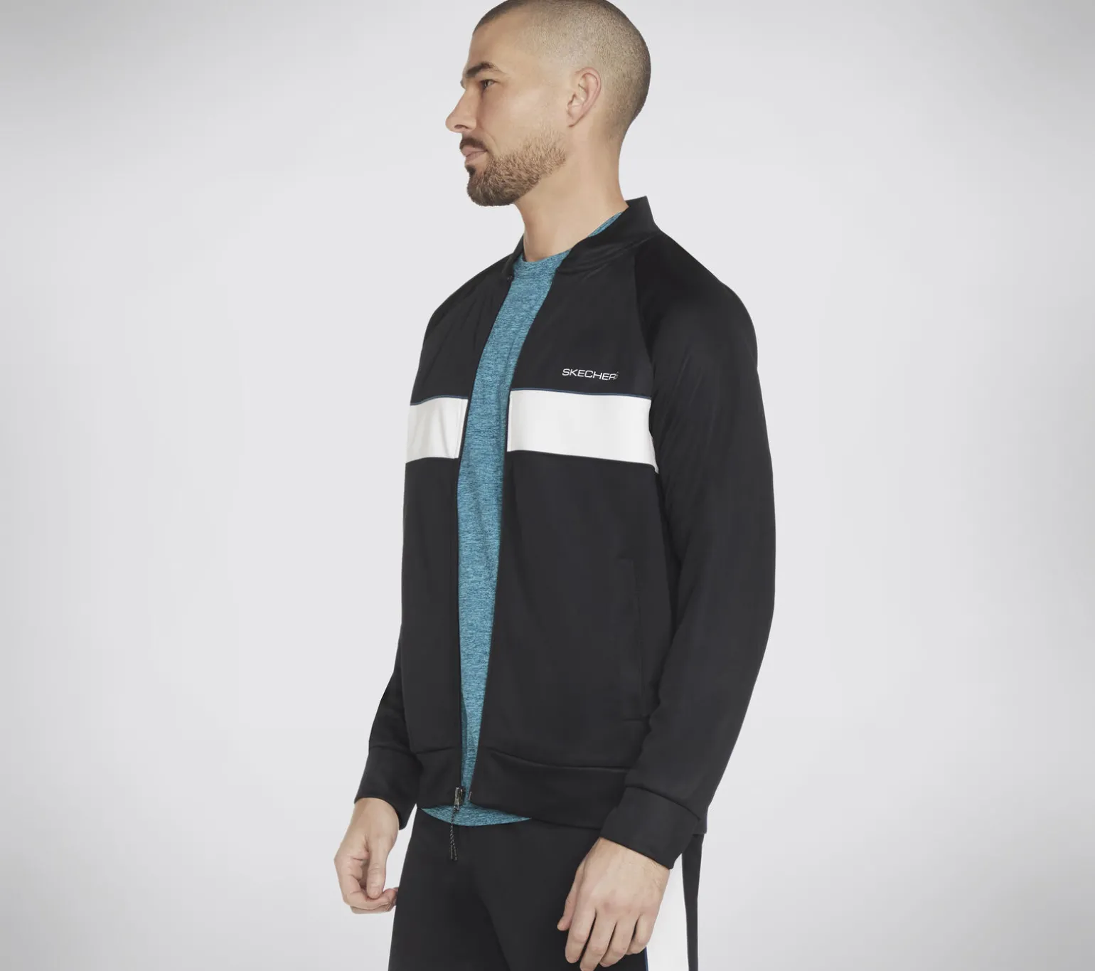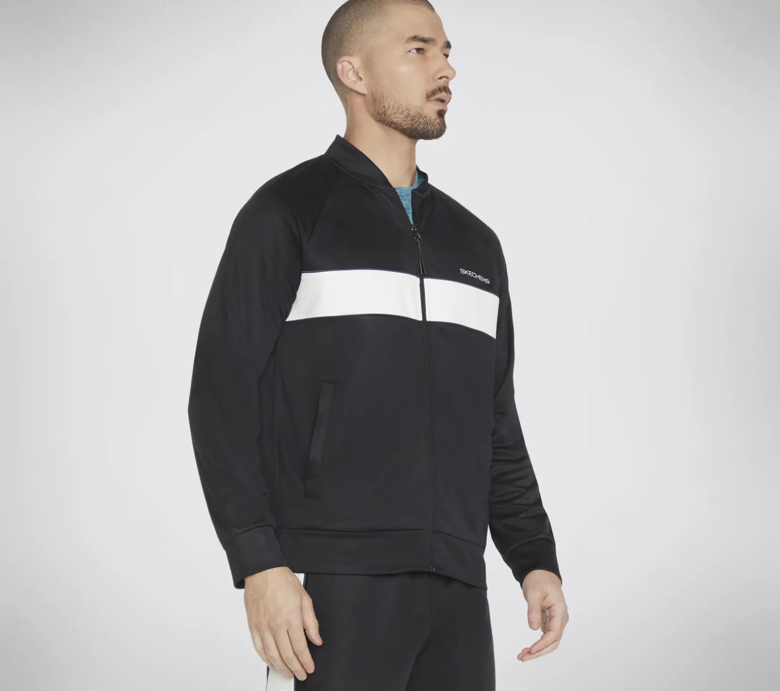 Keep it clean and cool in speed worthy style wearing Skechers SkechTech Premier Track Jacket. This full-zip performance design is made from our lightweight SkechTech Premier fabric and features color blocking details with chest piping, open hand welt pockets, and a Skechers reflective logo at left chest. Part of a coordinating apparel collection.