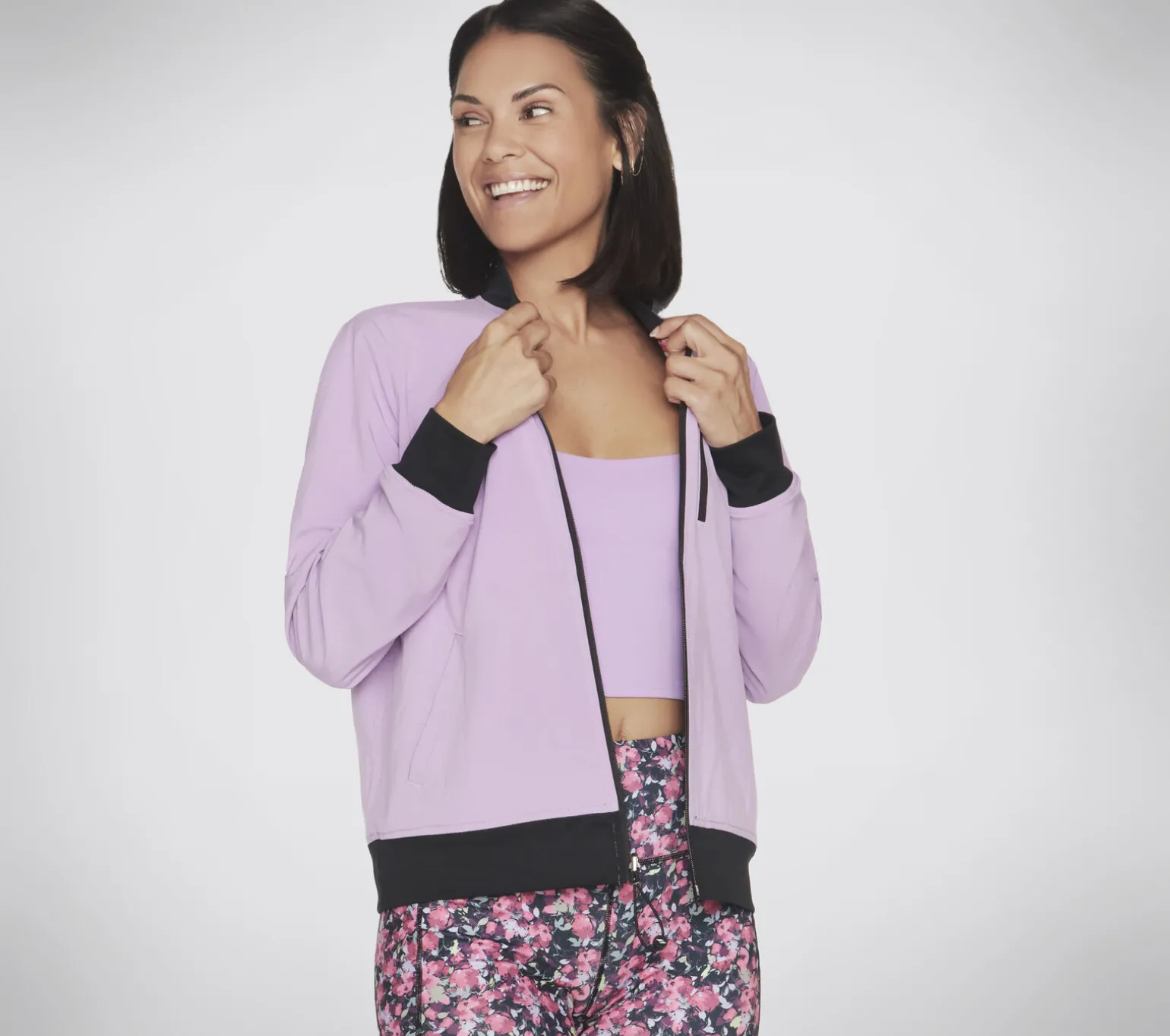 Die SKECHWEAVE Fantasy Fields Reversible Bomber Jacket bietet flexiblen, leichten Komfort für deine Flower Power. Diese vollständig wendbare Bomberjacke mit durchgehendem Reißverschluss besteht aus SKECHWEAVE-4-Wege-Stretchgewebe und verfügt über einen gerippten College-Kragen, offene Eingrifftaschen und eine Sicherheitstasche mit Reißverschluss auf der Brust.