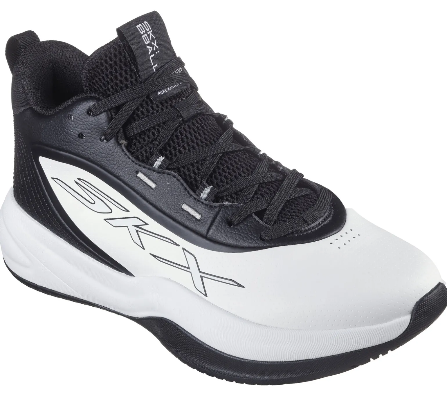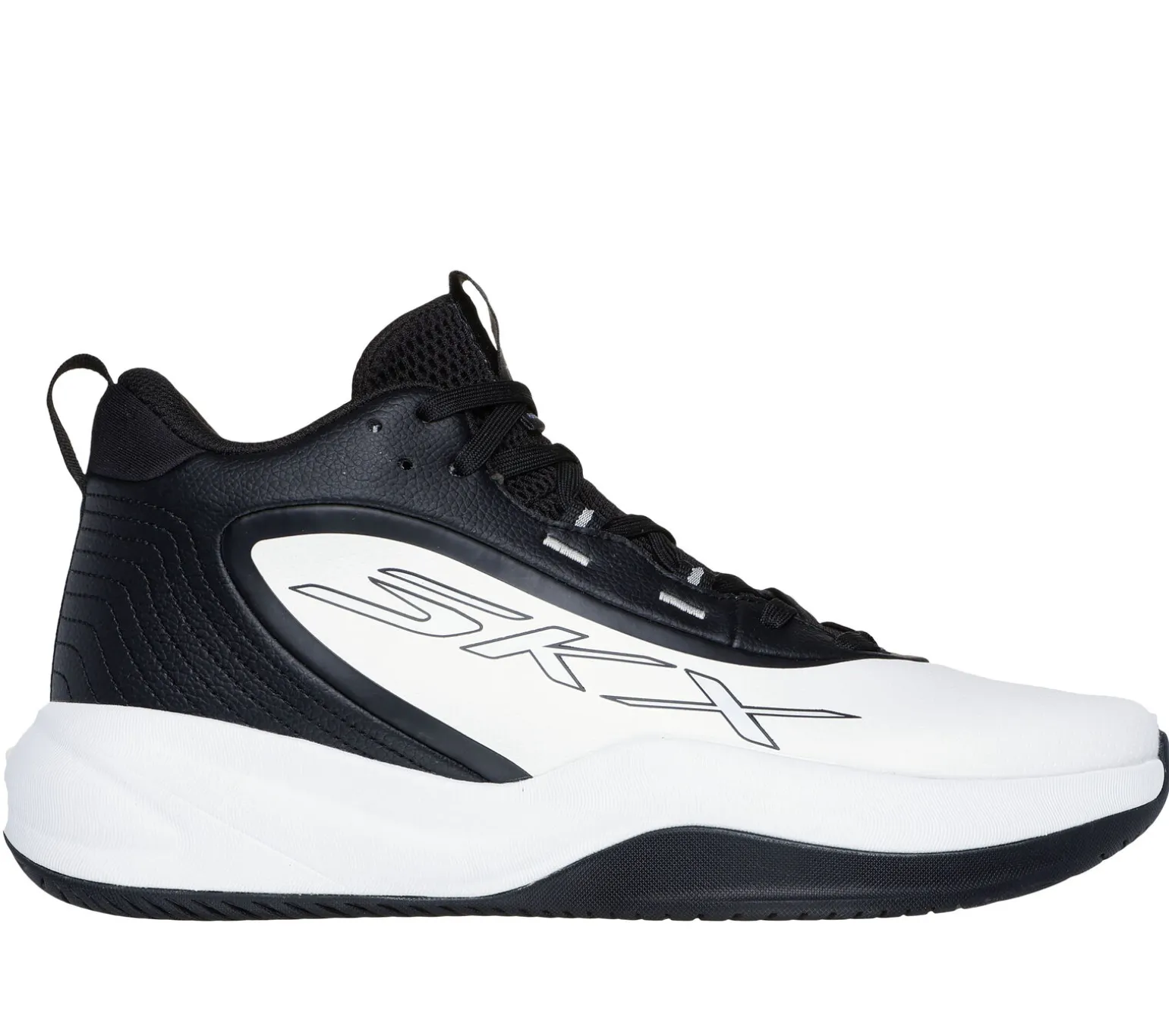 Whether driving to the hoop or locking down defense, you’ll have the winning edge with Skechers Basketball®: SKX League. This high-top performance court shoe delivers optimal comfort and exceptional stability. A breathable perforated leather upper promotes air flow, while resilient Skechers MOVE FOAM insoles and innovative 5-GEN® Foam cushioning respond quickly underfoot.