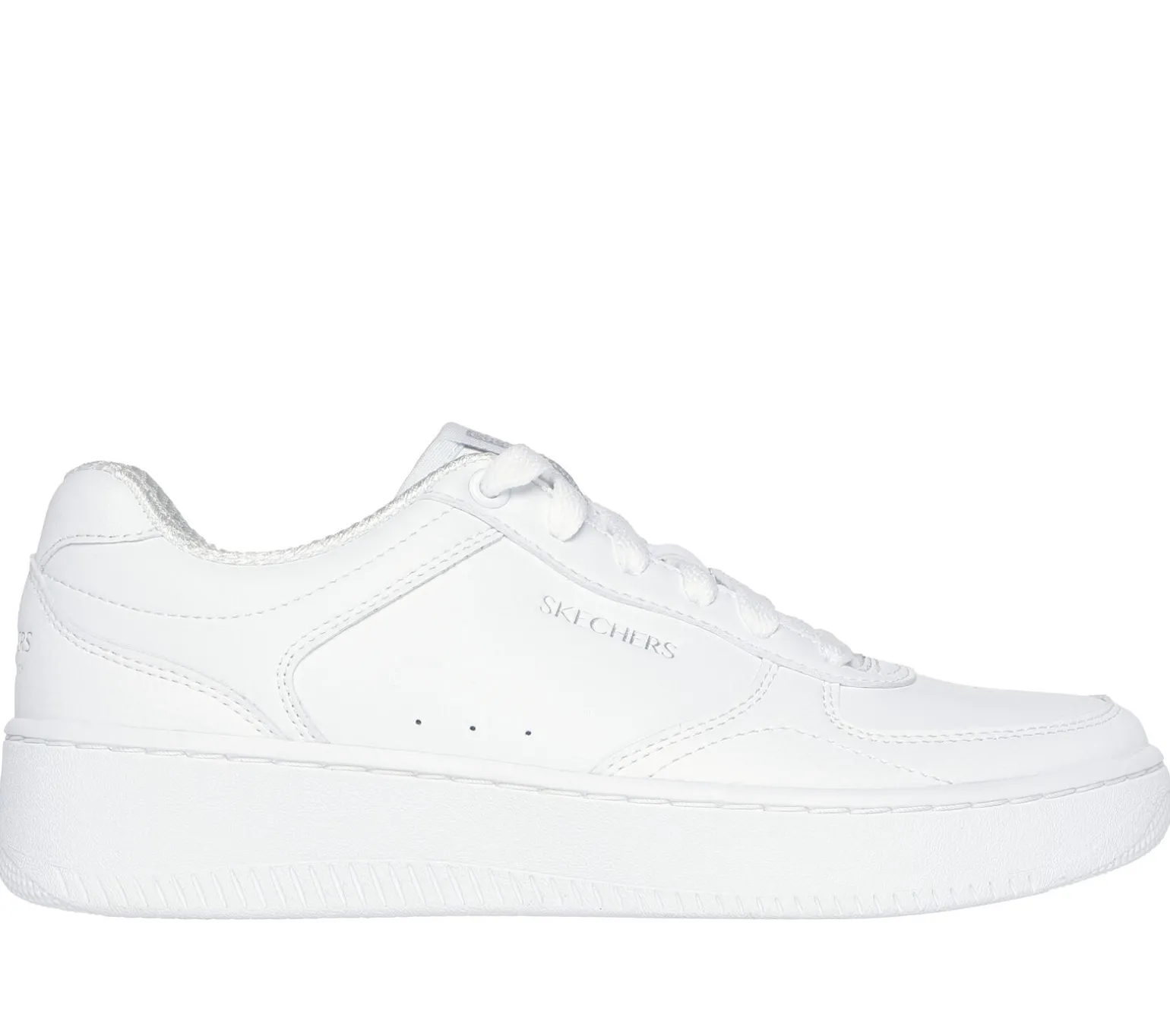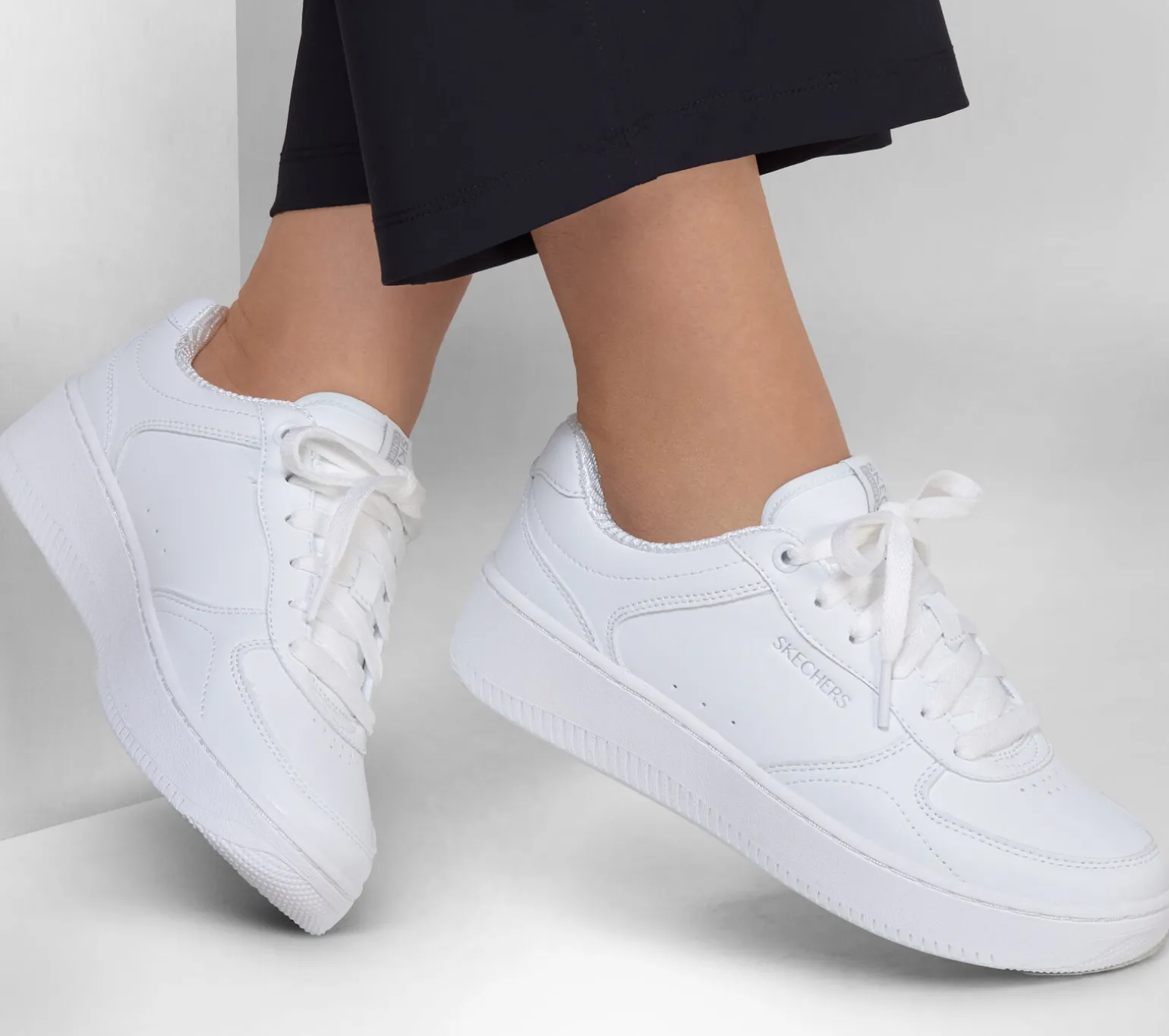 Der Skechers Sport Court 2.0 – Core Essential vereint einen lässigen, modischen Look mit hohem Tragekomfort. Der Schnürschuh mit eleganter Silhouette im Tennis-Style verfügt über ein Obermaterial aus Duraleder und eine gepolsterte Skechers Air-Cooled Memory Foam-Innensohle.