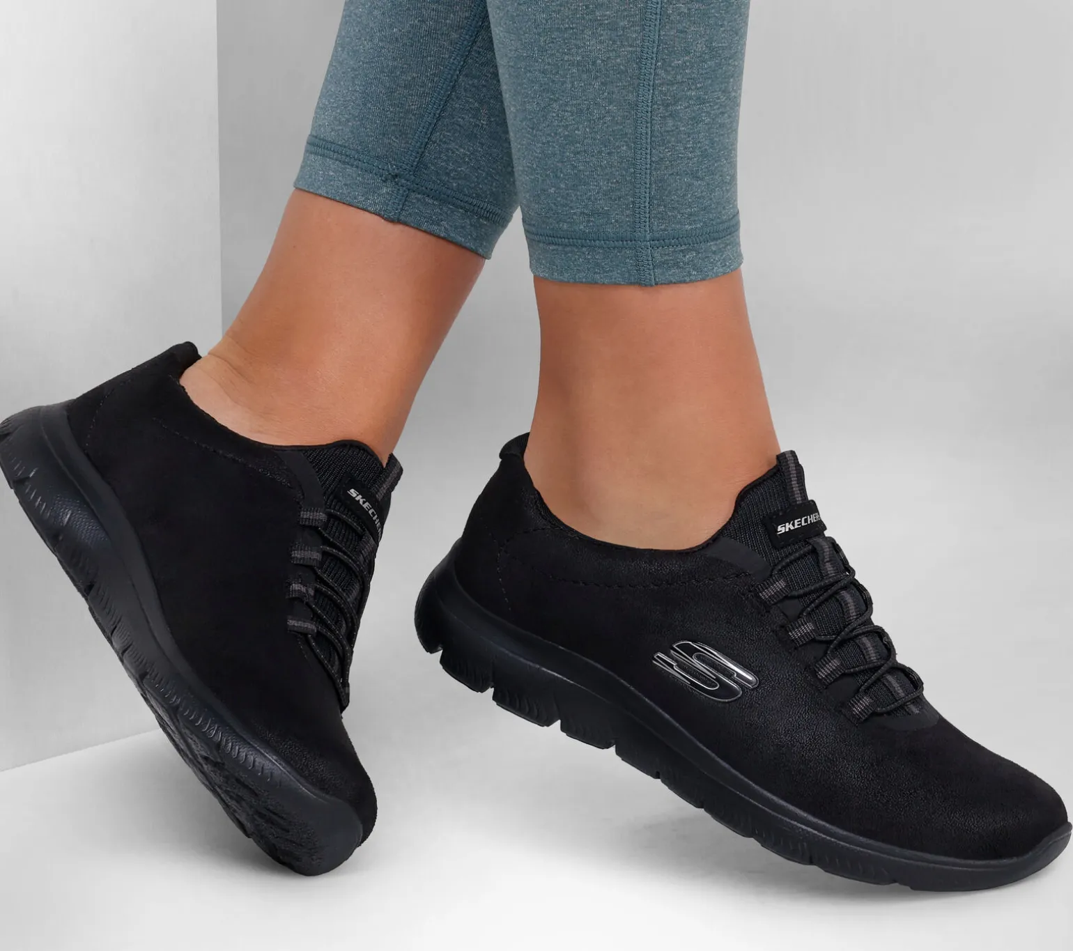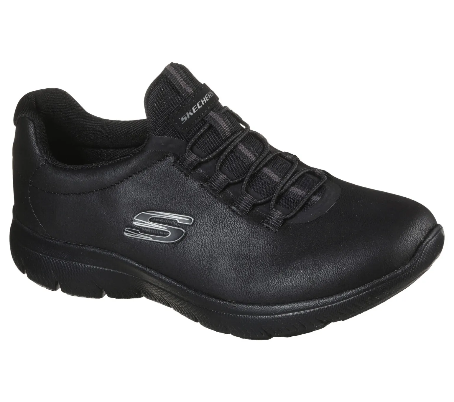 Der stilvolle und bequeme Skechers Summits – Oh So Smooth versorgt dich mit der nötigen Flexibilität. Dieser Sneaker zum Hineinschlüpfen verfügt über ein Obermaterial aus synthetischem Mikroleder, eine Bungee-Schnürung und eine gepolsterte Skechers Memory Foam-Komfort-Einlegesohle.