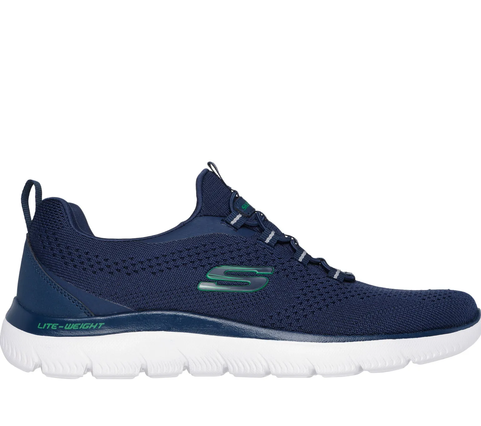 Der Skechers Summits – Tallo kombiniert sportlichen Stil mit flexiblem Komfort. Dieses bequeme Modell aus recycelten Materialien verfügt über ein Obermaterial aus Funktionsstrick mit Bungee-Schnürung und eine gepolsterte Skechers Memory Foam Komfort-Innensohle. Our Planet Matters™: Good for your feet. Good for the world.