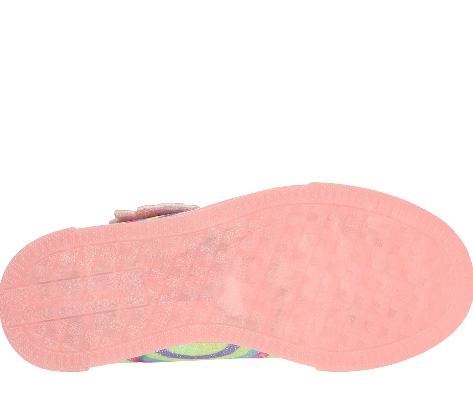 Einen leuchtenden Auftritt hast du im schillernden Skechers Twinkle Toes®: Twinkle Sparks Ice 2.0 – Shimmering Sky. Dieser glitzernde Sneaker mit Leuchteffekt verfügt über ein Obermaterial aus Synthetik mit Glitzer sowie Regenbogen-, Stern- und Wolkengrafik, eine Bungee-Schnürung aus Satin, einen verstellbaren Ristriemen, eine durchscheinende Zwischensohle mit Leuchteffekt und eine glitzernde, verzierte Zehenpartie.