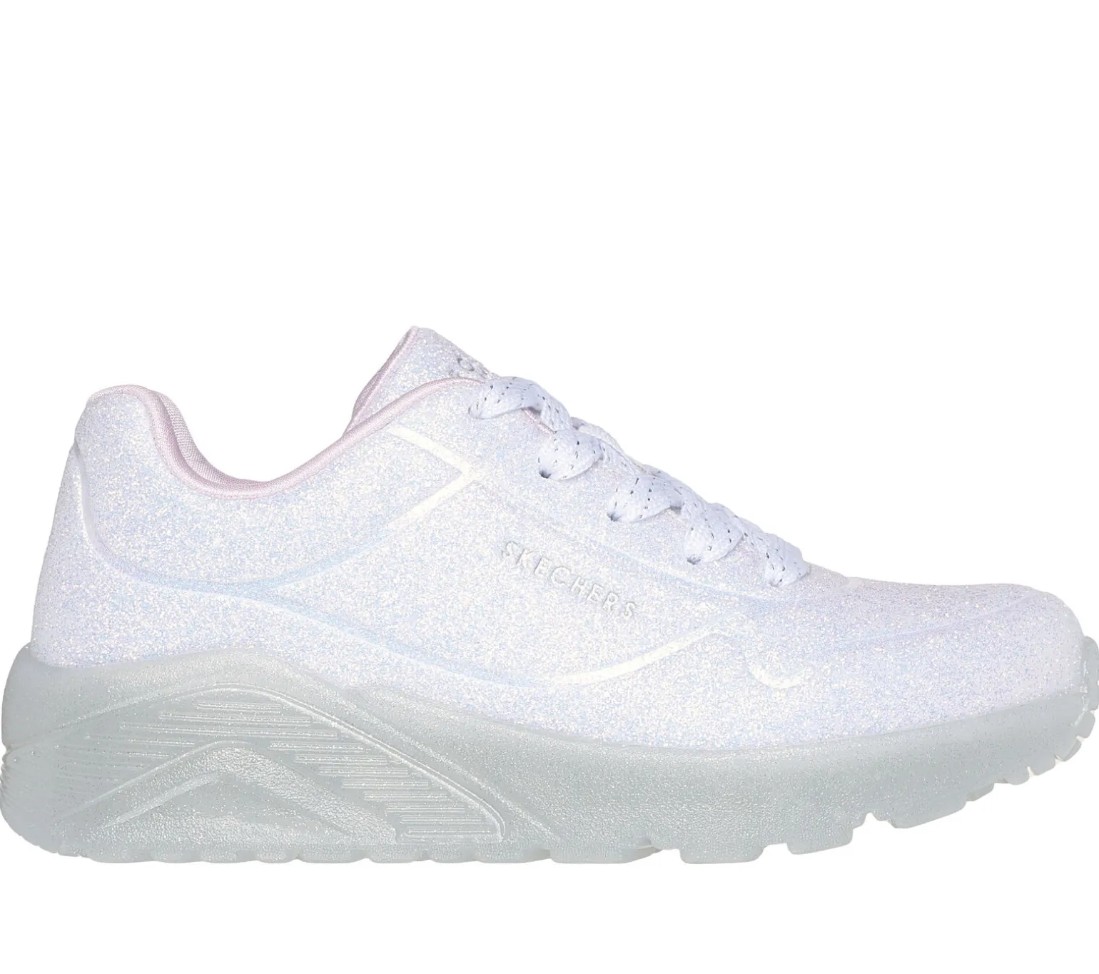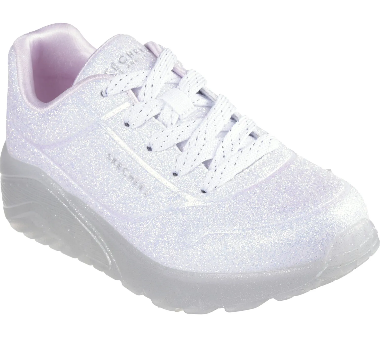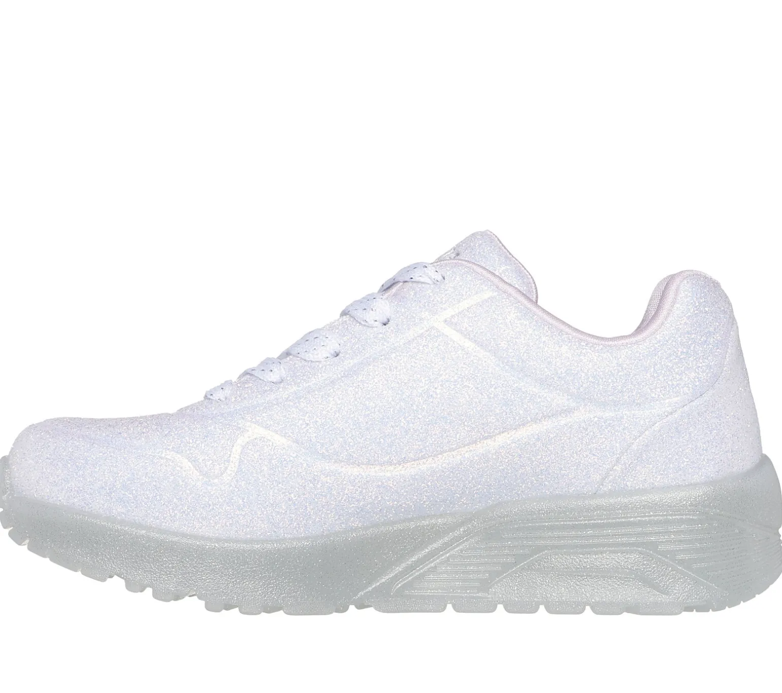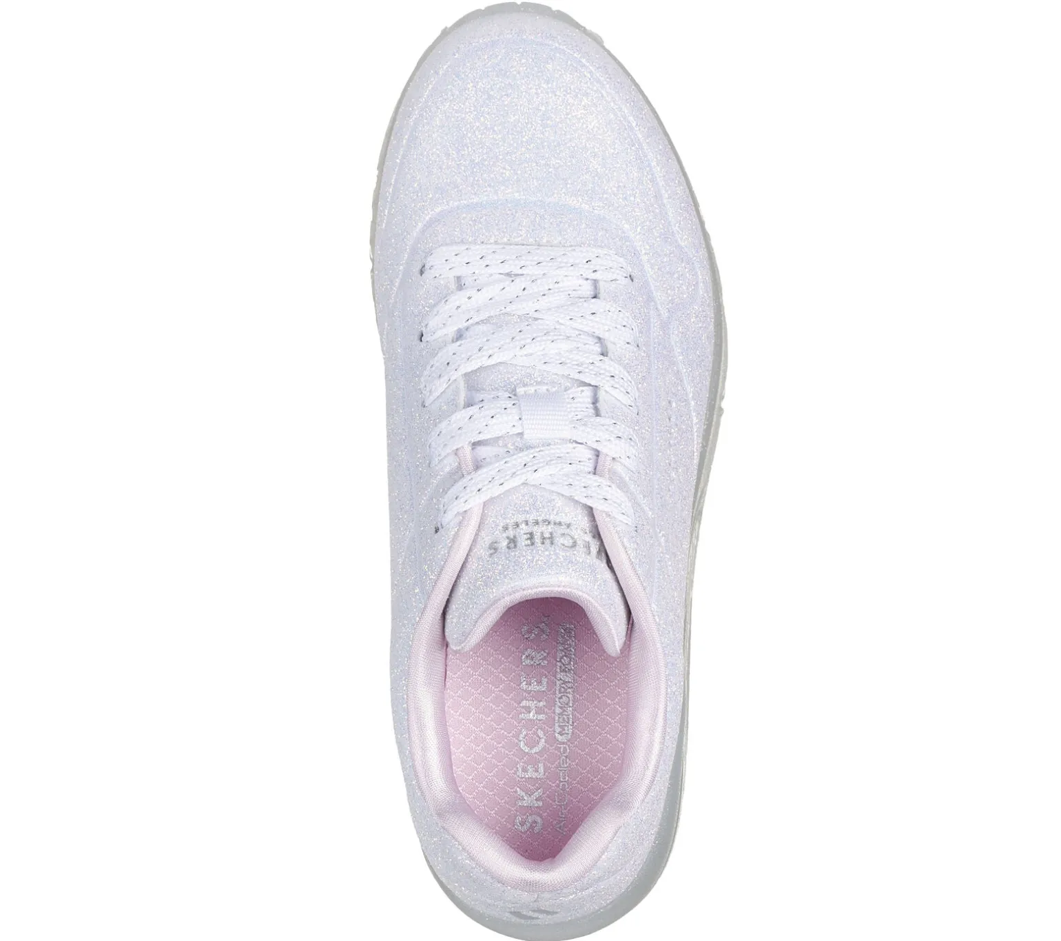 Mit dem glamourösen Stil und außergewöhnlichen Komfort des Skechers Street Uno Ice – Shine Pop ziehst du alle Blicke auf dich. Dieser modische Schnürschuh verfügt über ein glitzerndes Obermaterial aus Synthetik mit Prägung, eine Skechers Air-Cooled Memory Foam-Innensohle und eine gepolsterte Plateau-Zwischensohle.