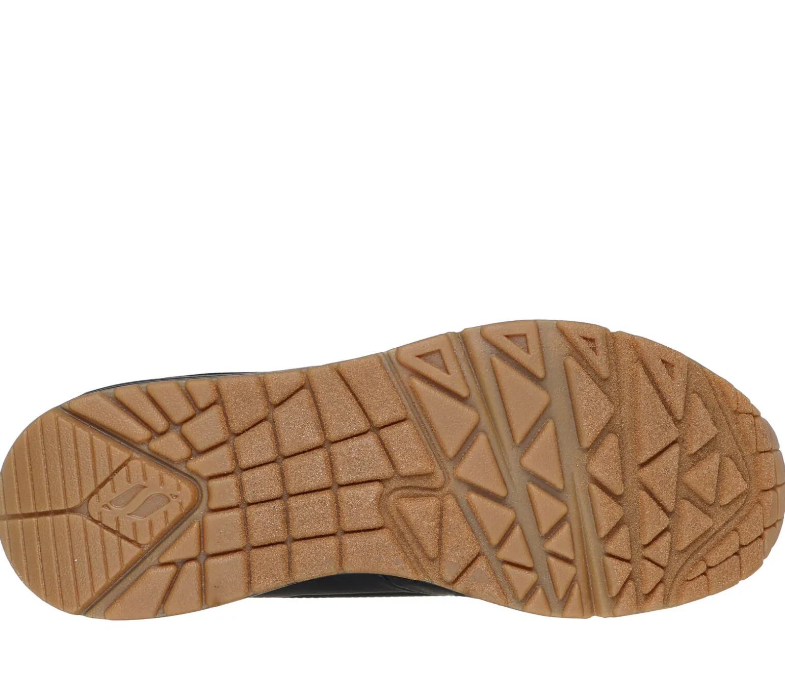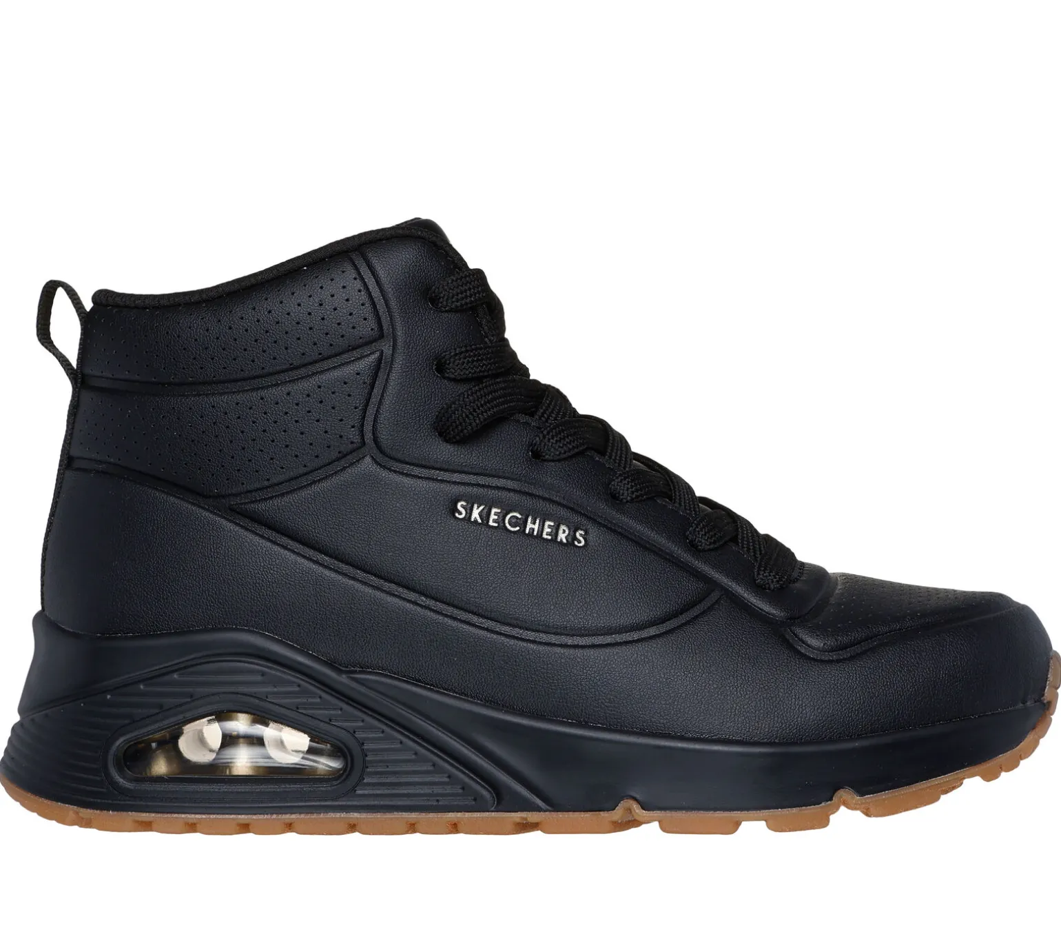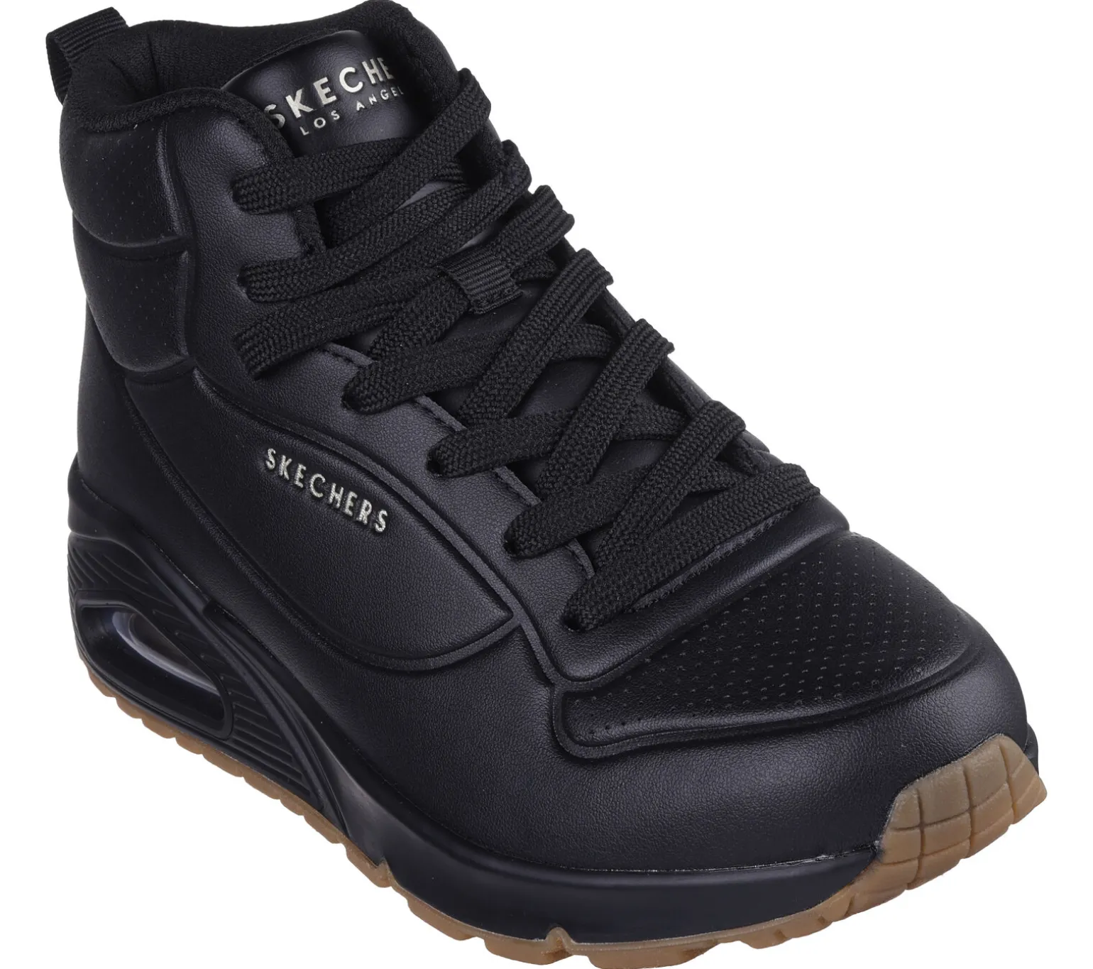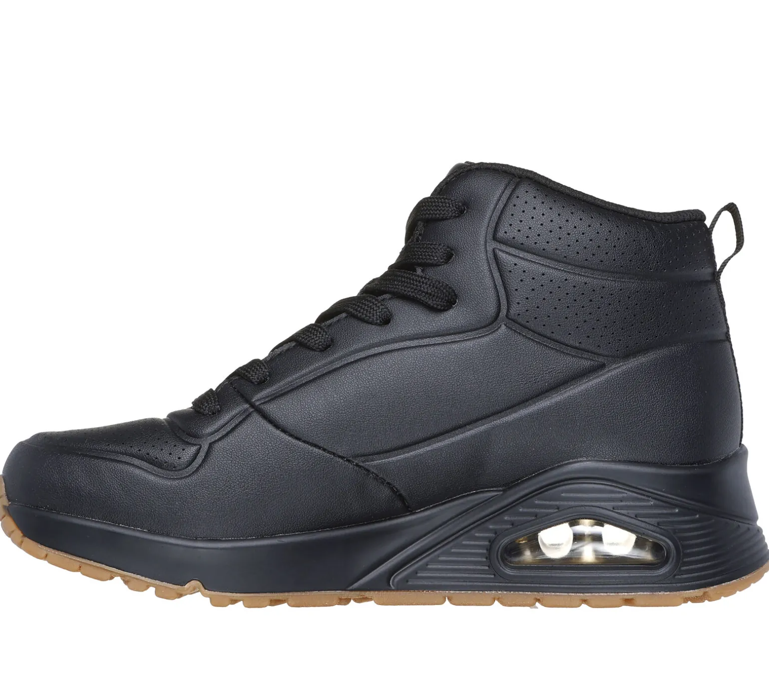 Der Skechers Street Uno – Stand High kombiniert eleganten Stil mit weichem Tragekomfort. Dieser modische High-Top-Sneaker verfügt über ein Obermaterial aus Duraleder mit Prägung, eine gepolsterte Skechers Air-Cooled Memory Foam-Innensohle und eine Skech-Air-Zwischensohle mit sichtbarer Luftkissendämpfung.