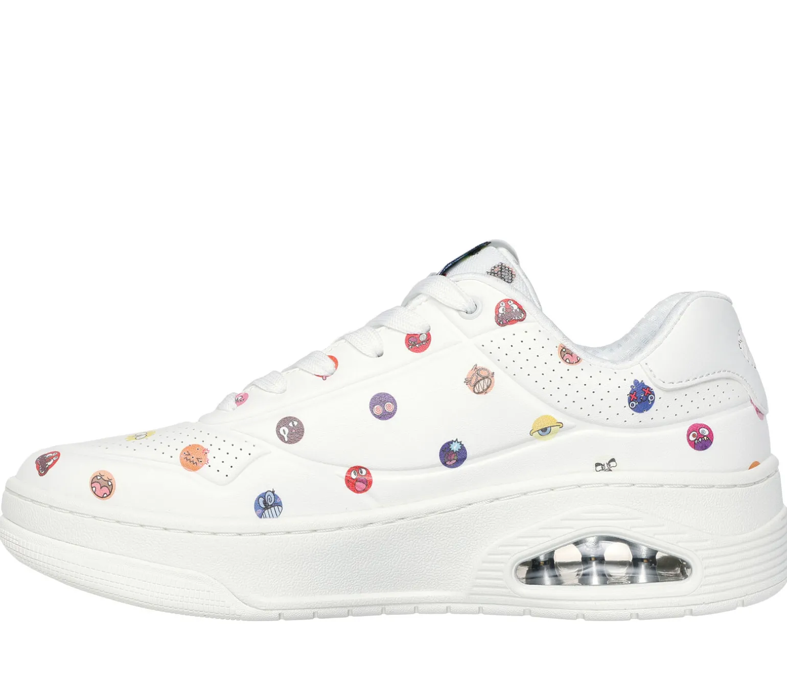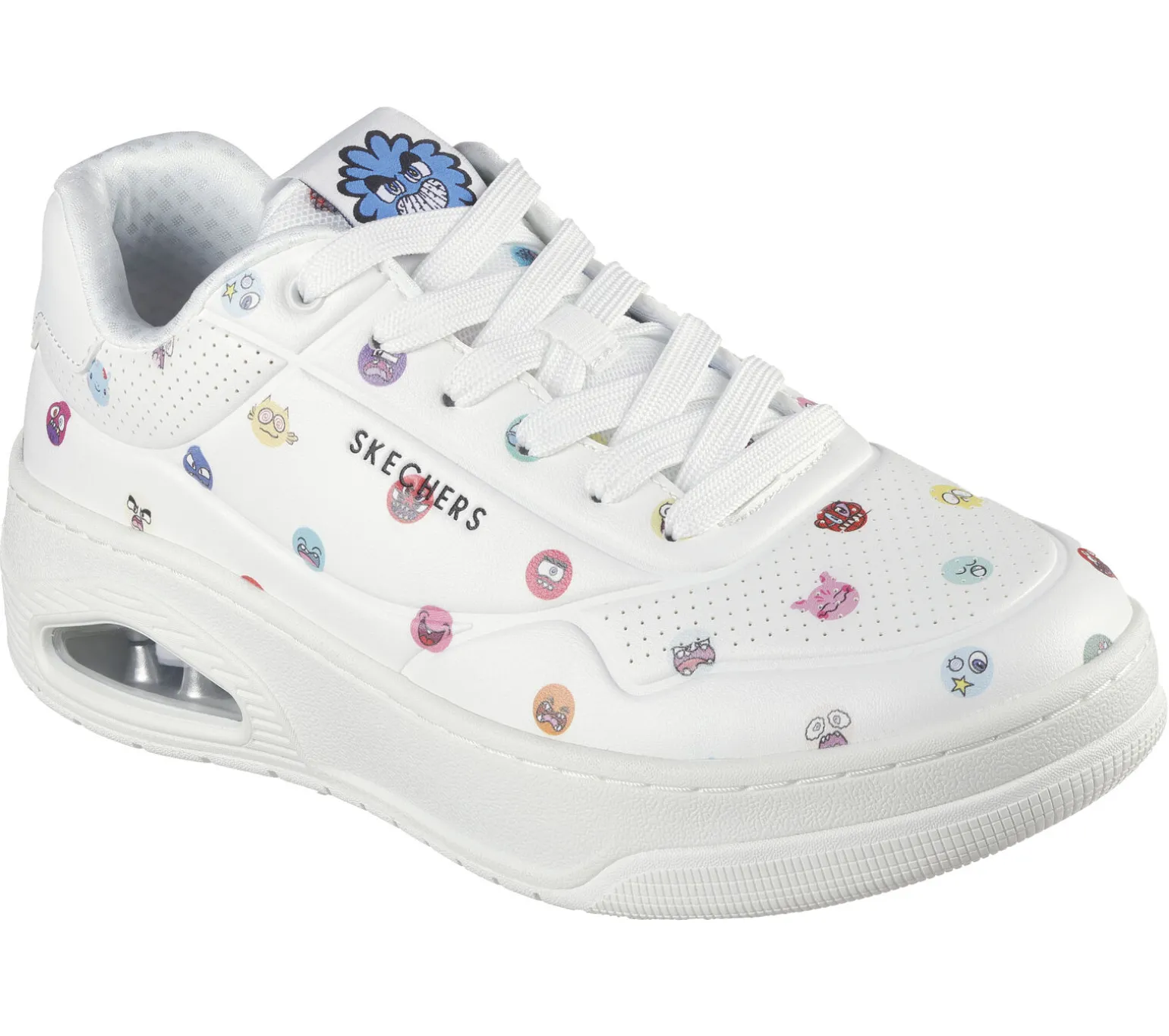 Get drawn into the imaginative world of Skechers Street x Vexx with our latest collaboration! Vexx has made Skechers his personal canvas, fusing his signature ‚doodles‘ seamlessly with our iconic footwear and apparel to create a collection bursting with vibrant colors and playful imagery. The Uno Court – Vexx Multi-Moji fashion sneaker features a synthetic durabuck upper with Vexx’s signature moji ‚doodles‘, Skechers Air-Cooled Memory Foam® insole and a visible Skech-Air® air-cushioned midsole.