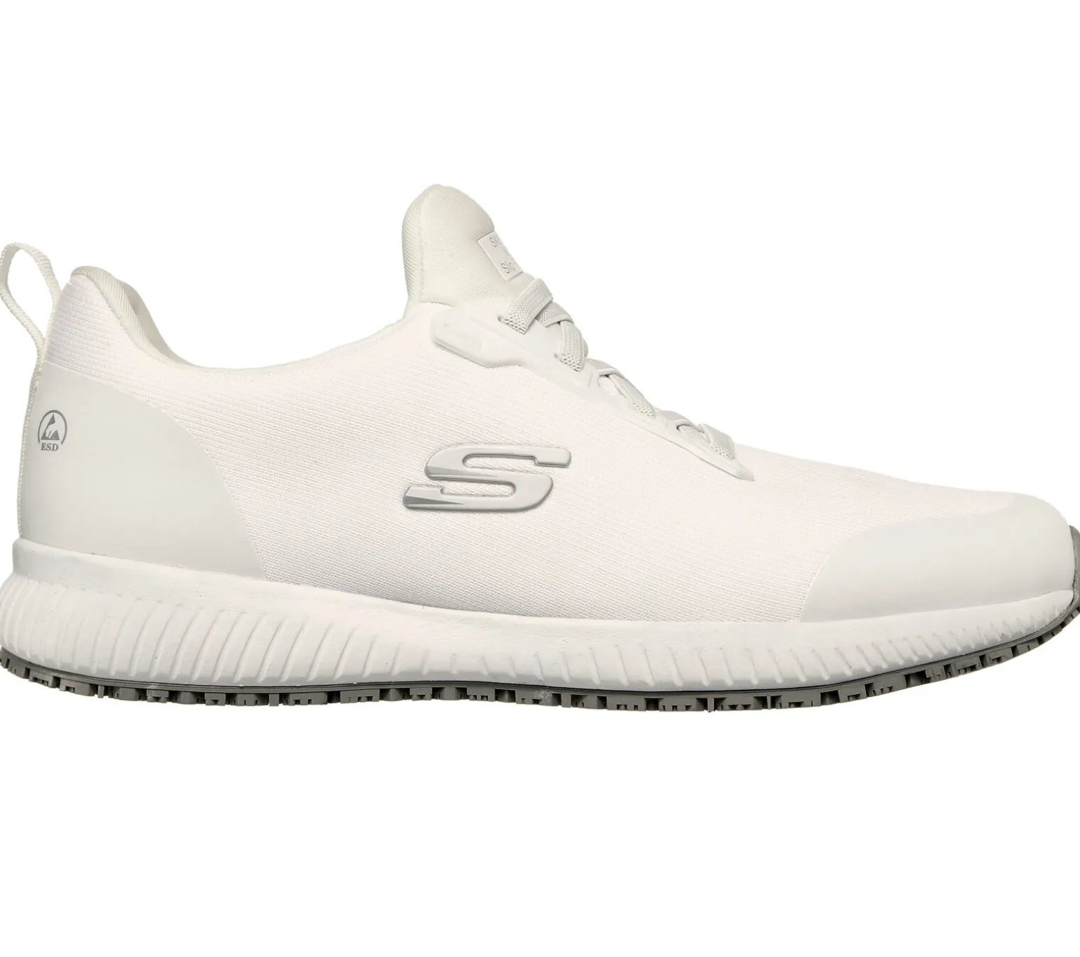 Den ganzen Tag über bequem und modisch bei der Arbeit – im Skechers Work: Squad SR – Myton ESD. Dieses Modell für Arbeit·&·Sicherheit verfügt über ein weiches Mesh-Obermaterial mit rutschhemmendem Design und eine gepolsterte Einlegesohle.