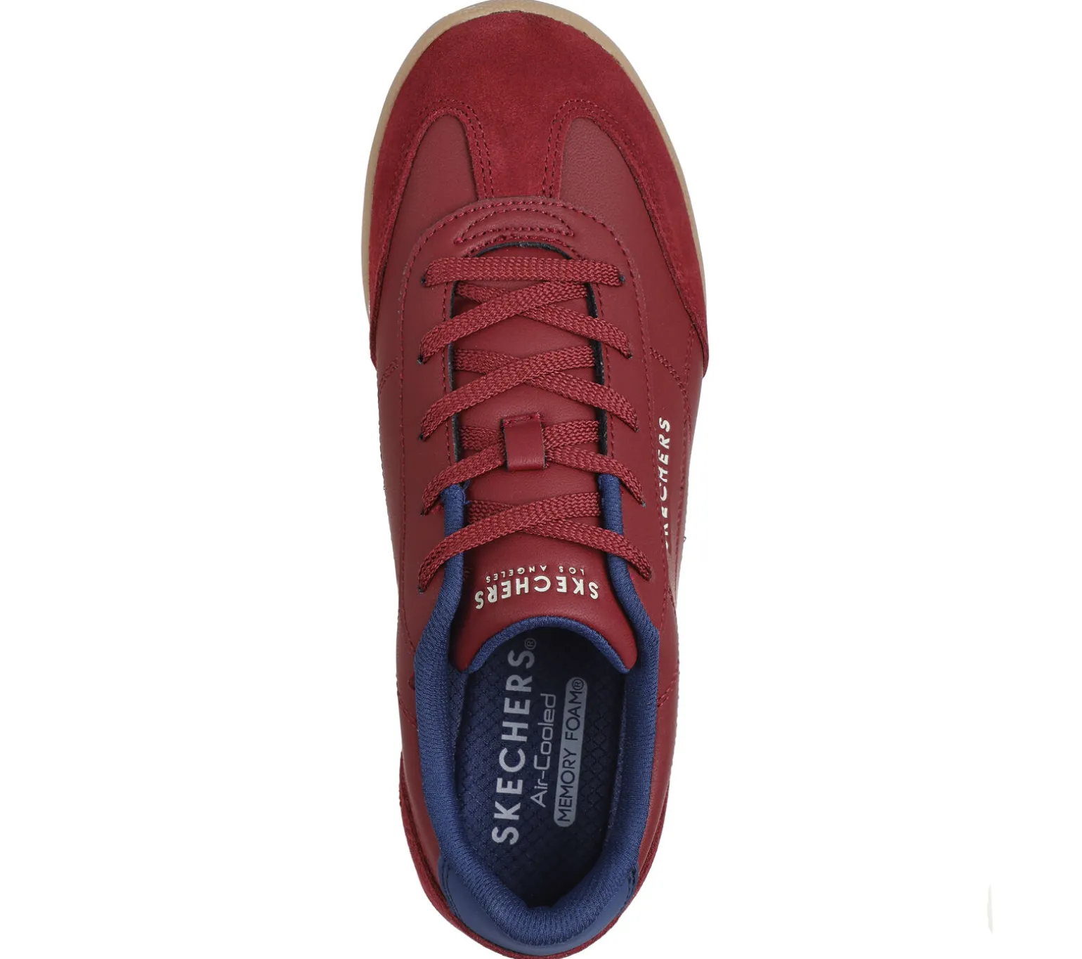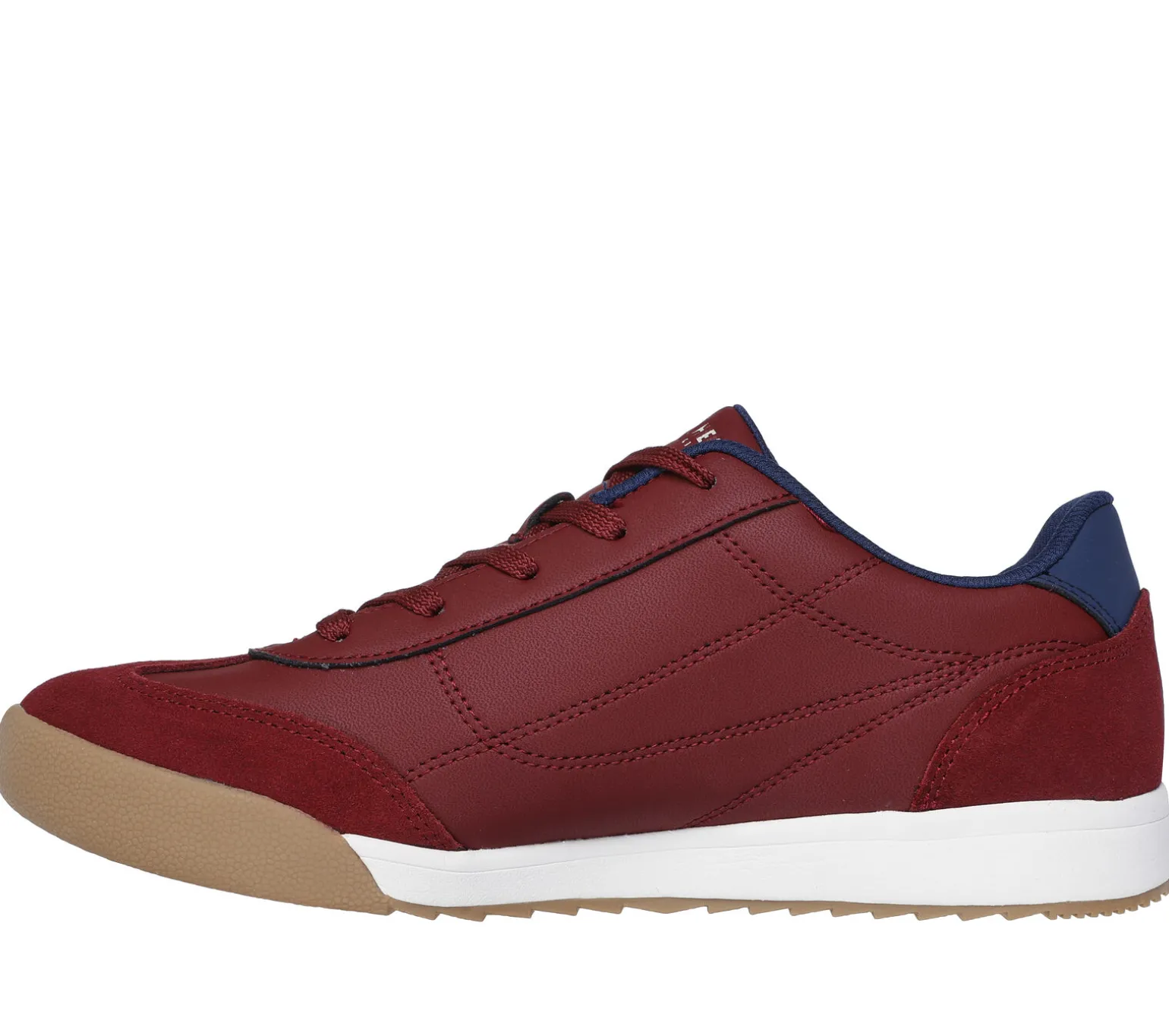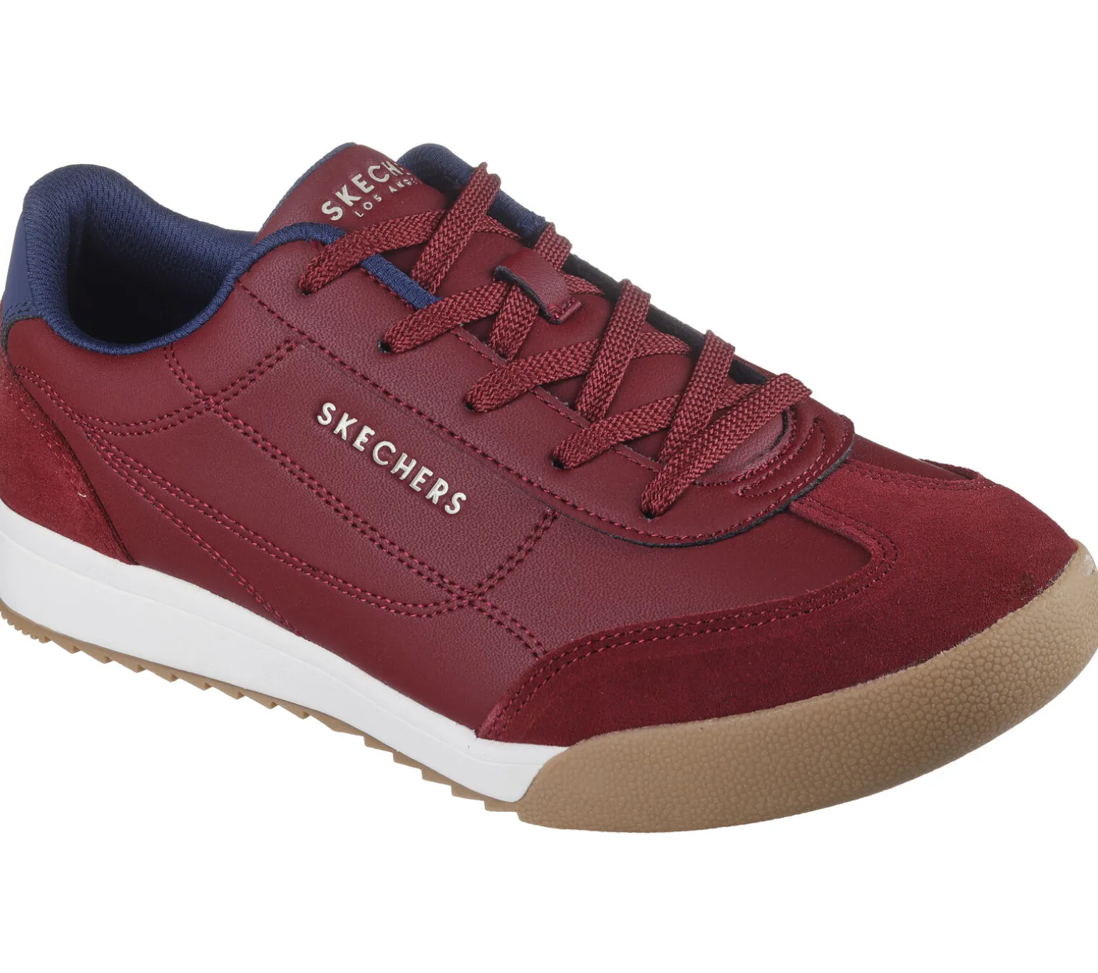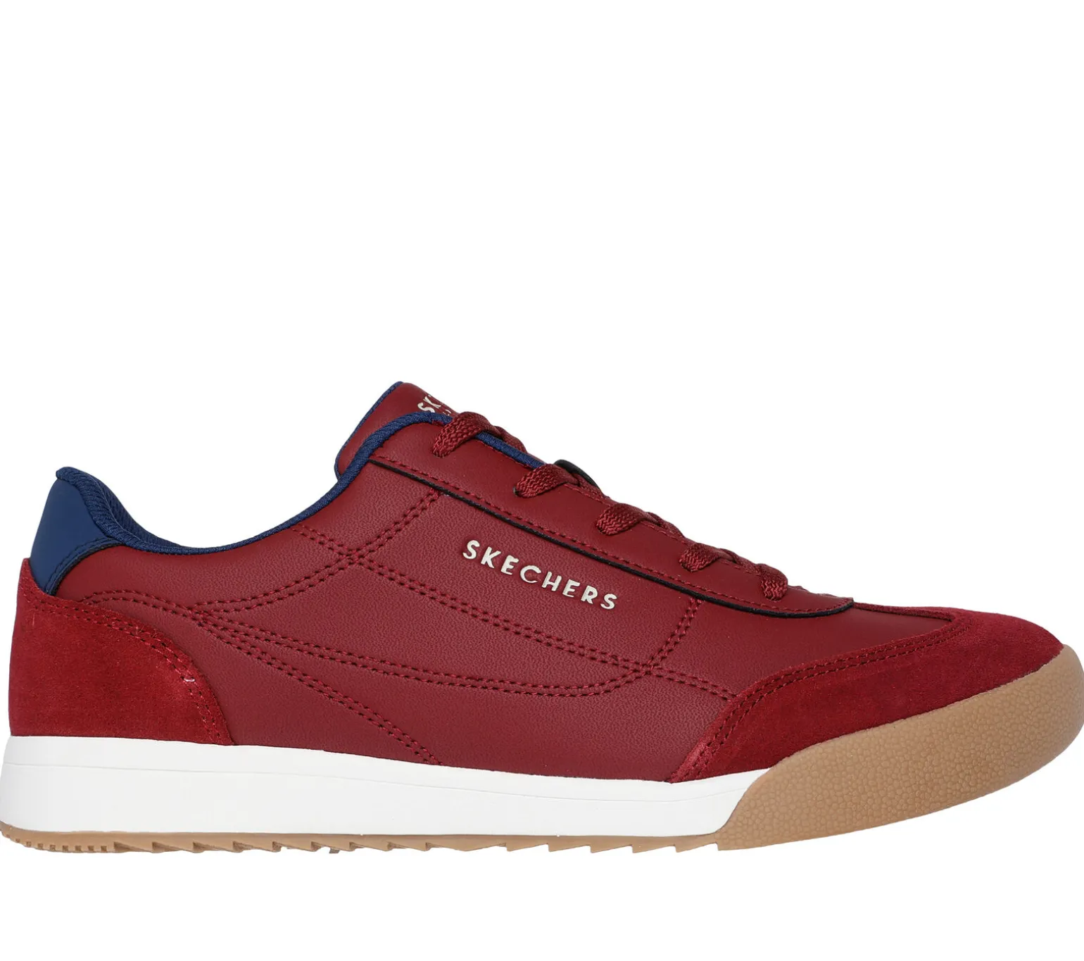 Fit yourself in throwback comfort and style wearing Skechers Street Zinger – Ultimate Classic. This retro-style lace-up features a duraleather, mesh, and suede overlay upper with a T-toe front, rubber traction outsole, and a cushioned Skechers Air-Cooled Memory Foam® insole.