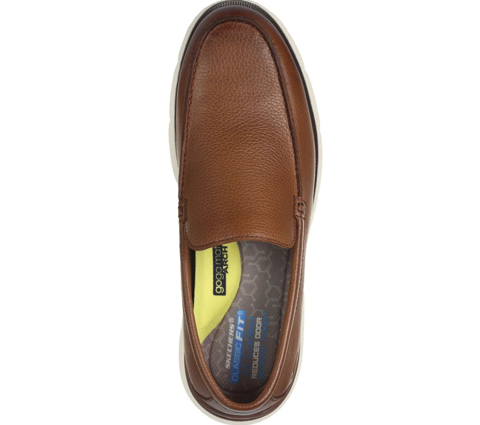 Der Skechers Agustino – Ossie kombiniert gekonnt elegante Vielseitigkeit und modernen Komfort. Dieser Mokassin im Classic Fit Design verfügt über ein Obermaterial aus Glattleder, eine mit Aktivkohle angereicherte Skechers Air-Cooled Memory Foam Komfort-Innensohle sowie eine Goga Mat Arch Dämpfung für zusätzlichen Halt.