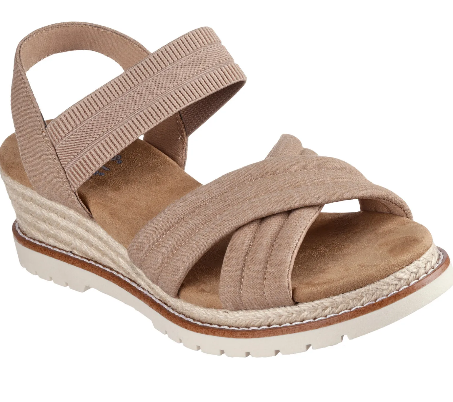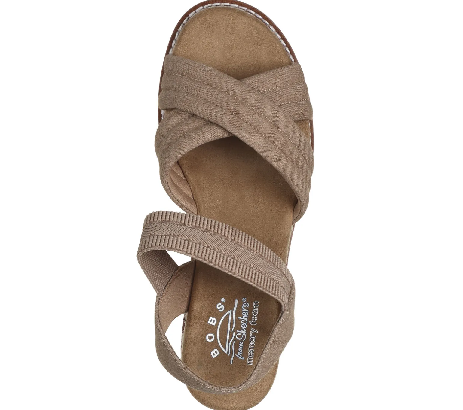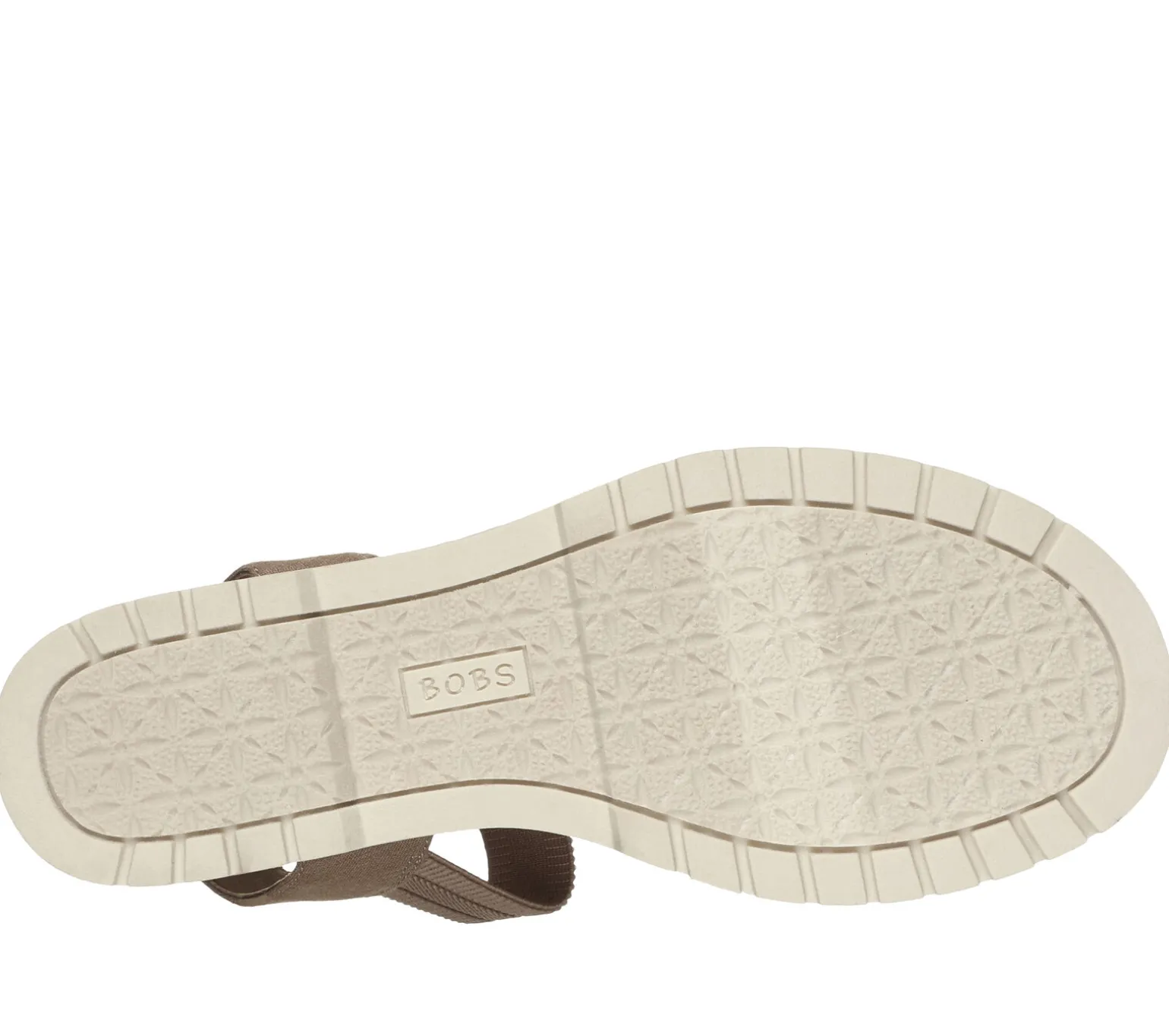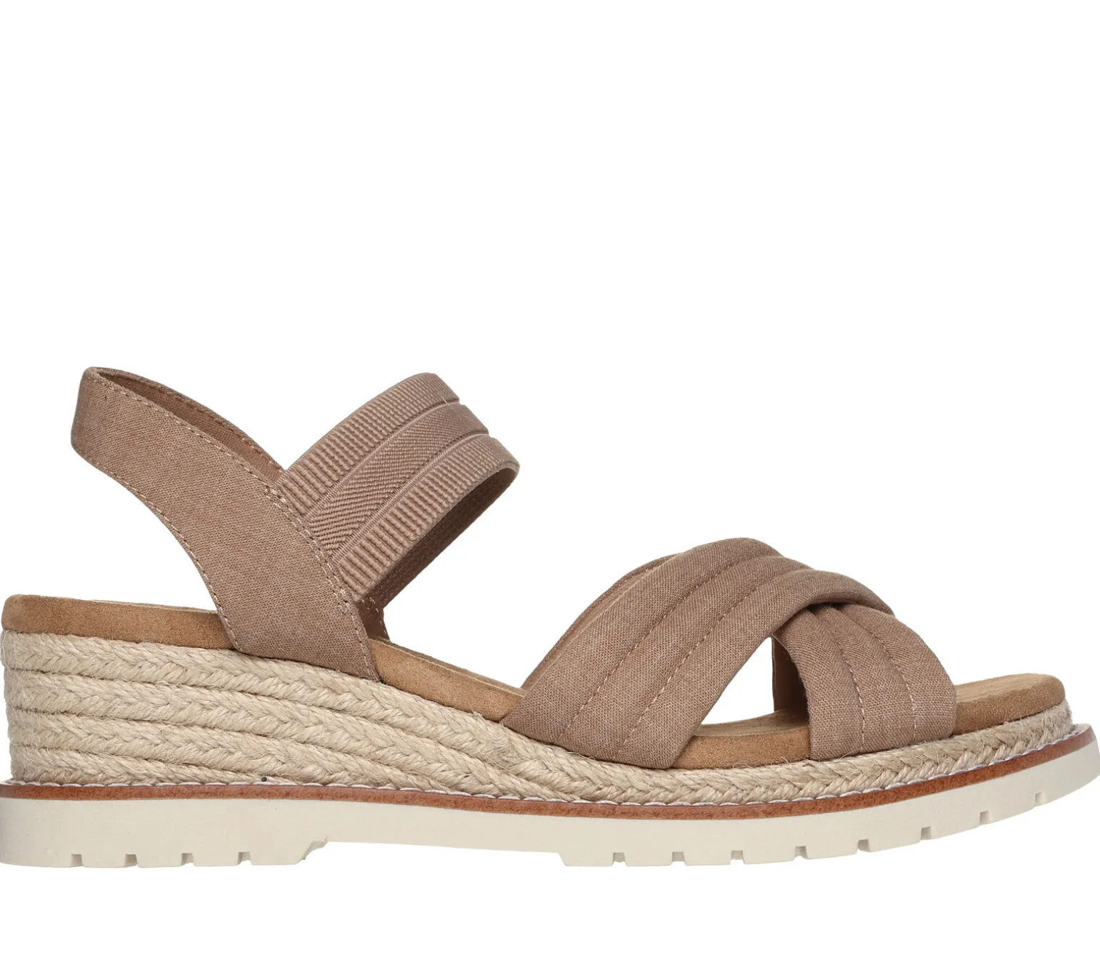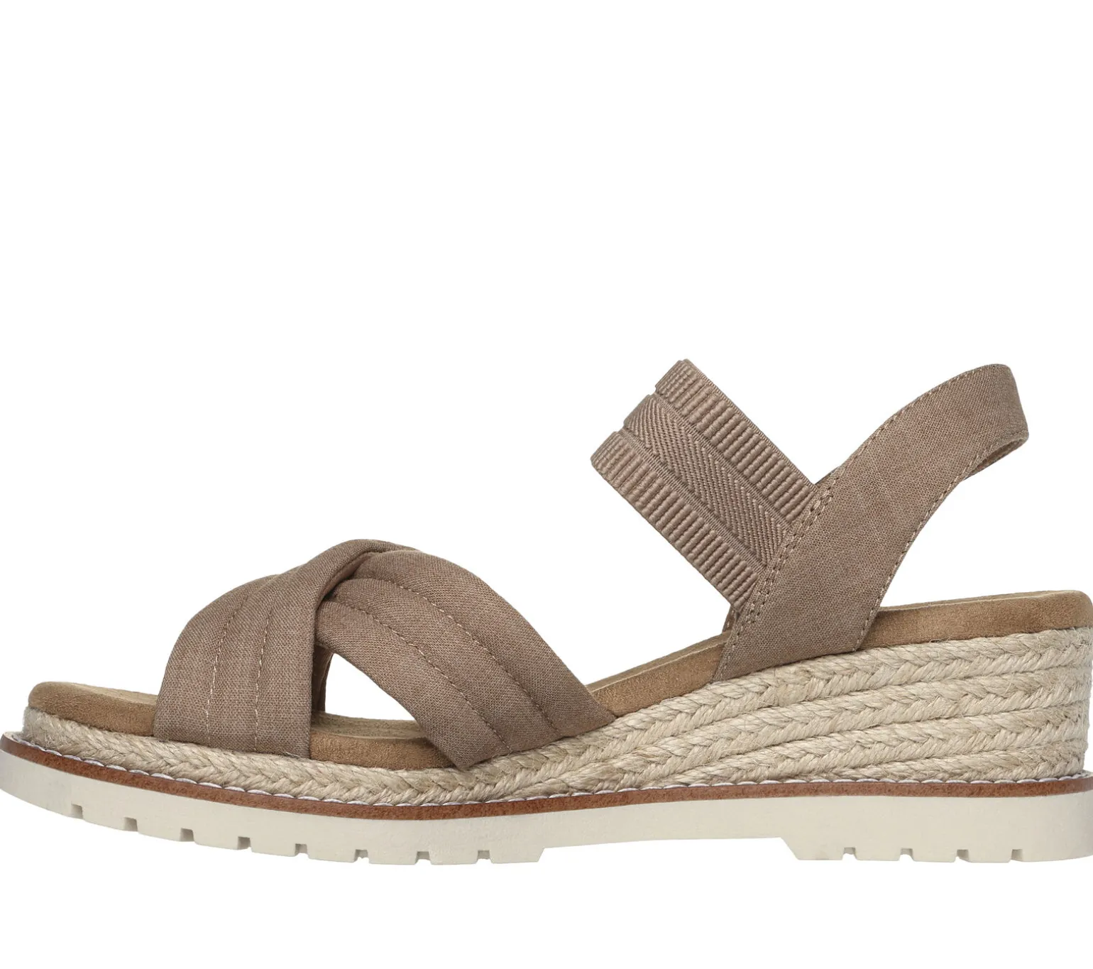 Mit dem luftigen BOBS from Skechers Desert Chill – Sweet Crossing startest du ganz entspannt in den Tag. Diese Sandale mit niedrigem Keilabsatz ist mit einem elastischen Ristriemen ausgestattet und verfügt über ein Obermaterial aus gepolsterten Webriemen sowie ein gepolstertes Skechers Memory Foam Komfort-Fußbett.