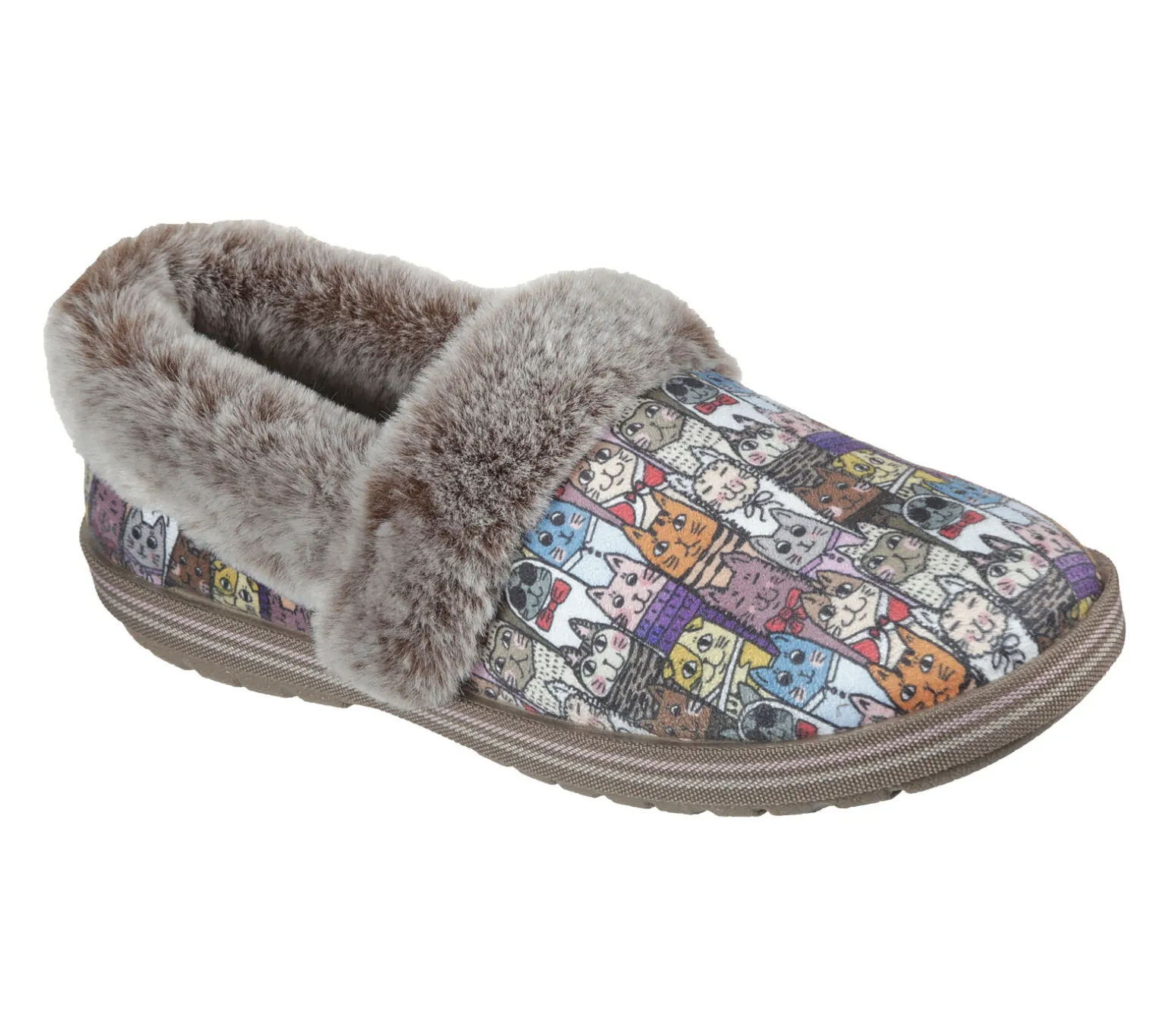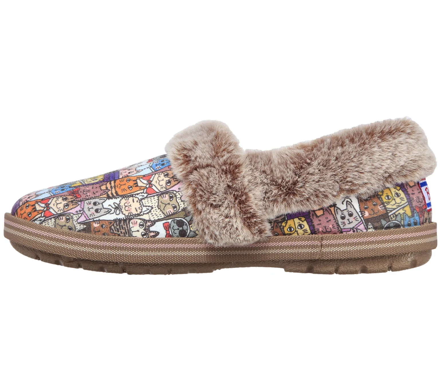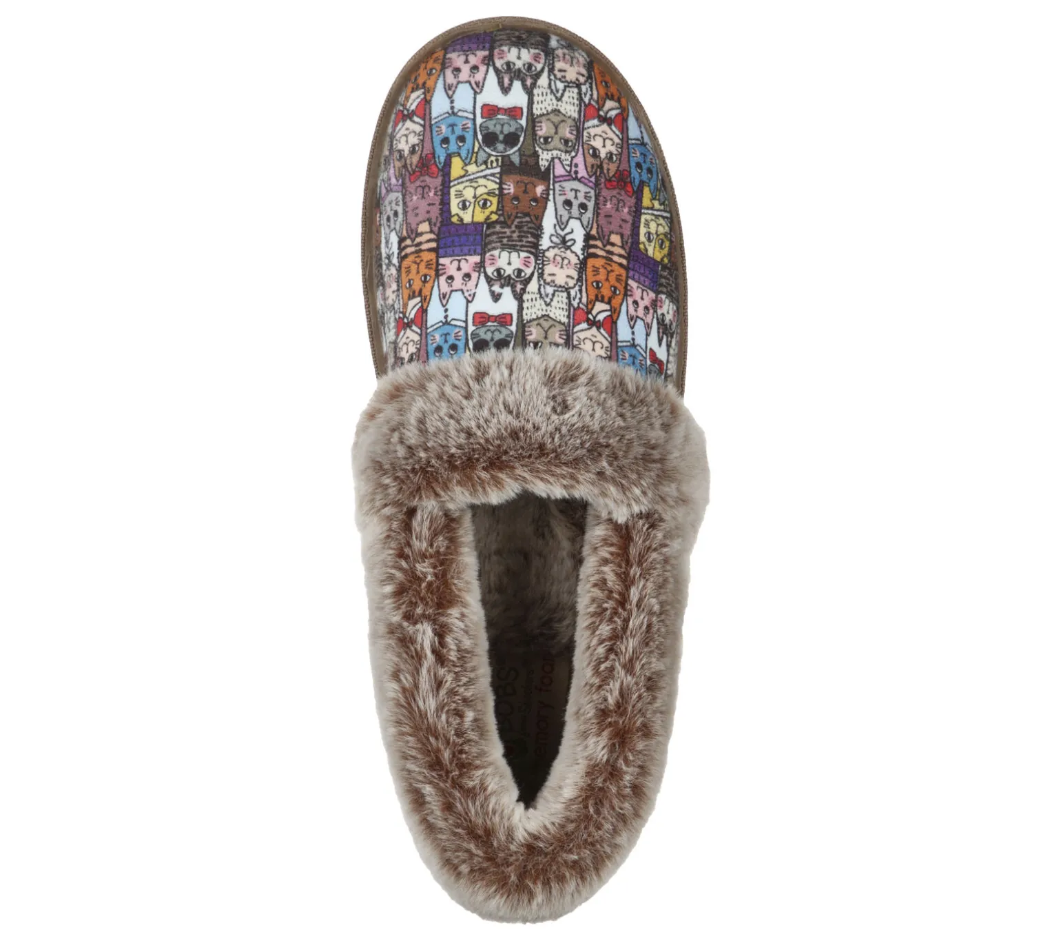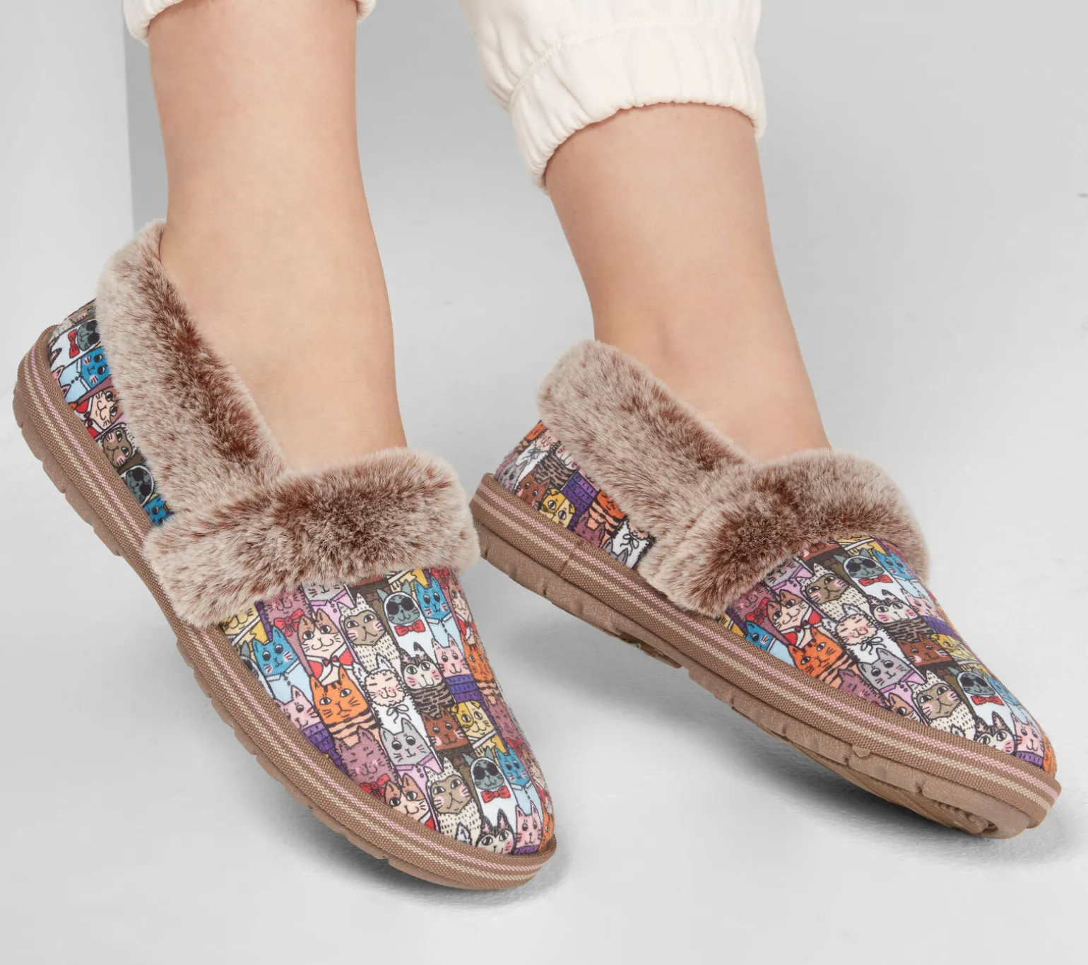 Der Skechers BOBS for Cats Too Cozy – Chic Cat bietet kuscheligen Komfort und modischen Stil. Dieser gemütliche Hausschuh verfügt über ein gewebtes Obermaterial mit durchgängigem Katzen-Print, einen Kunstpelzbesatz und ein gepolstertes Skechers Memory Foam-Fußbett. Mit jedem BOBS-Einkauf geht eine Spende an Tiere in Not.