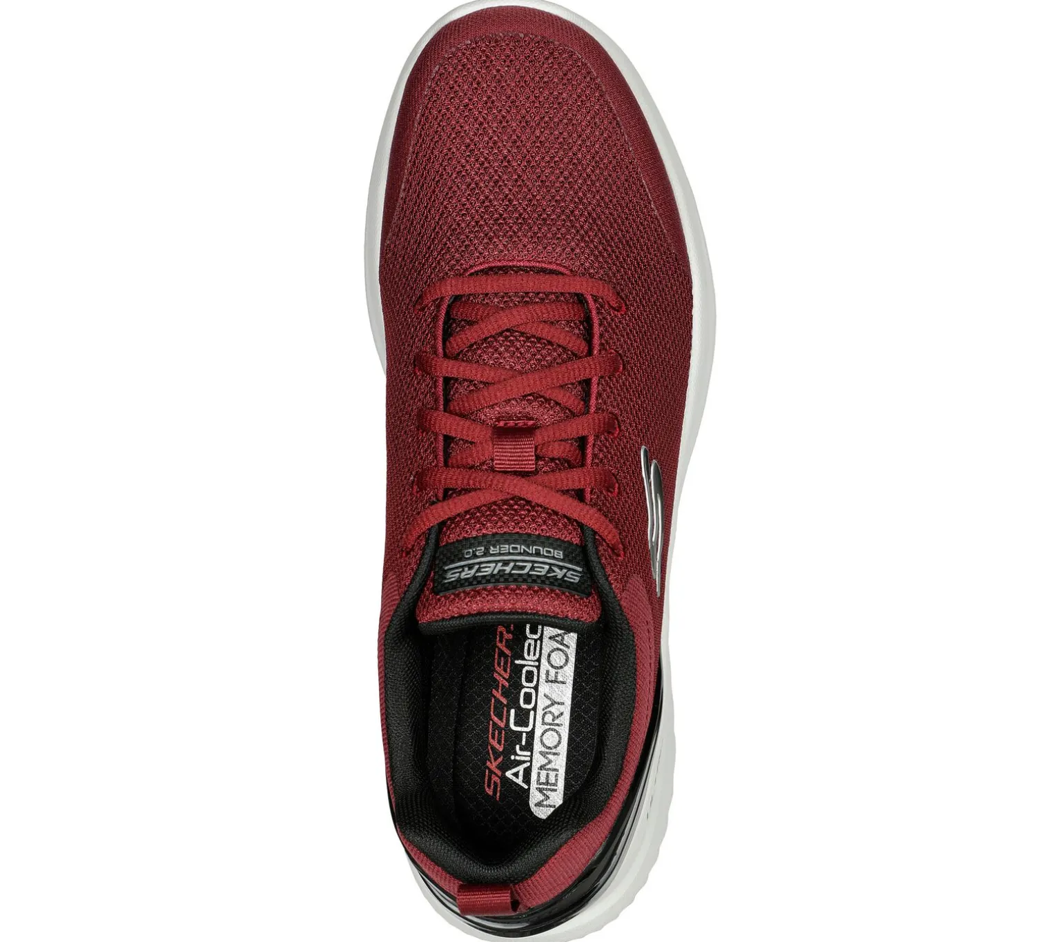 Bleib aktiv in flexiblem und genieße dabei leichten Tragekomfort mit dem Skechers Bounder 2.0 – Nasher. Dieser vegane sportliche Schnürschuh verfügt über ein Obermaterial aus Mesh mit einem außenliegendem Fersenpaneel und eine gepolsterte Skechers Air-Cooled Memory Foam-Innensohle.