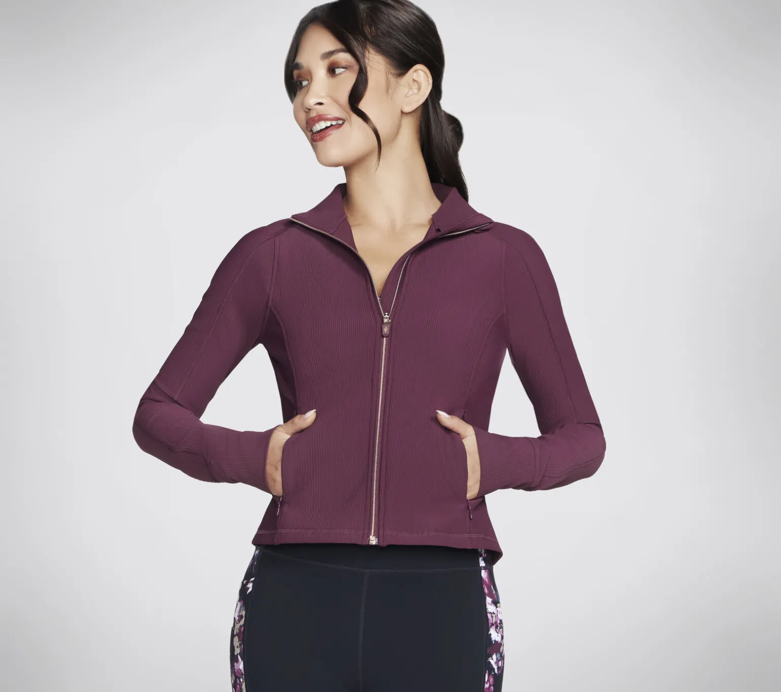 Die Skechers GO Flex Rib Jacke sorgt für eine schlanke Silhouette und hält dich gleichzeitig warm und trocken. Diese Jacke mit Stehkragen und durchgängigem Reißverschluss aus unserem feuchtigkeitsableitenden GO Flex-Gewebe verfügt über einen atmungsaktiven Einsatz aus Mesh hinten und verdeckte Sicherheitstaschen.