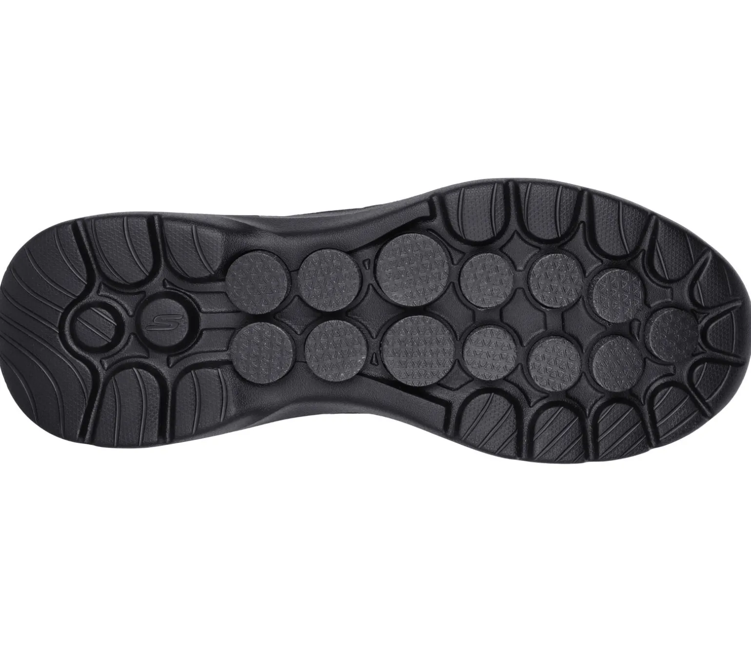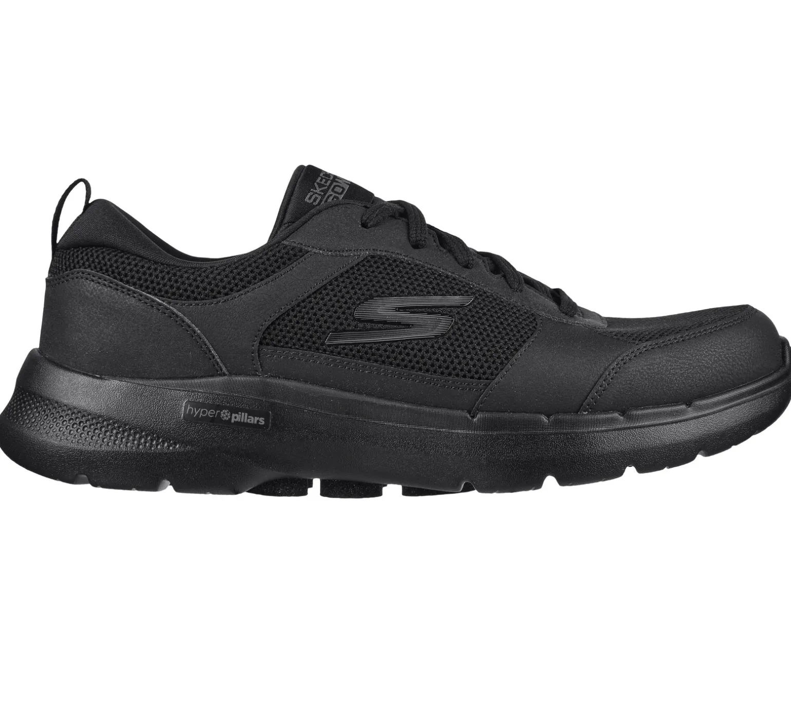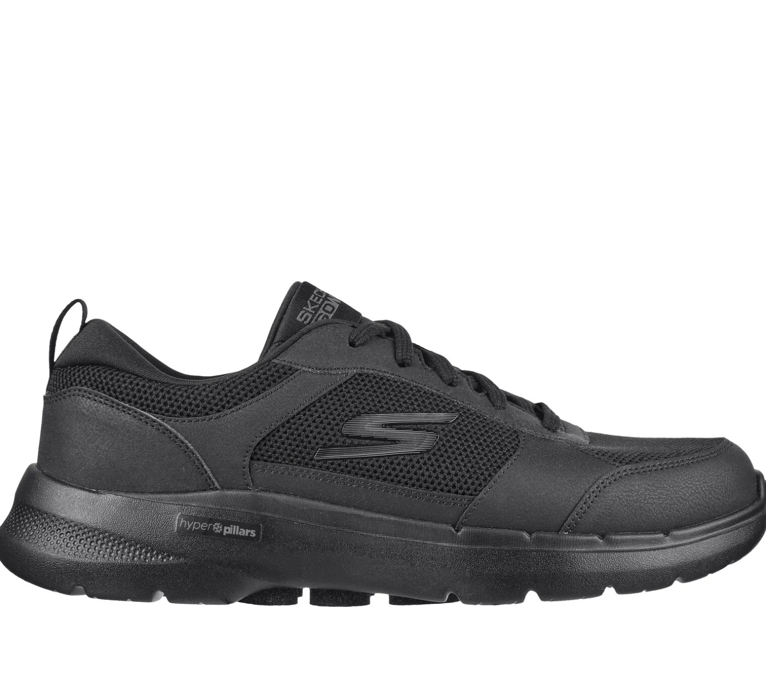 Steh auf und beweg dich mit Selbstvertrauen im Skechers GOwalk 6 – Compete. Dieser Schnür-Sneaker verfügt über ein Obermaterial aus Leder und Sport-Mesh, eine leichte, gedämpfte ULTRA GO Zwischensohle, eine Skechers Air-Cooled Goga Mat Innensohle und die stark rückfedernde Hyper Pillar Technology für zusätzlichen Halt.