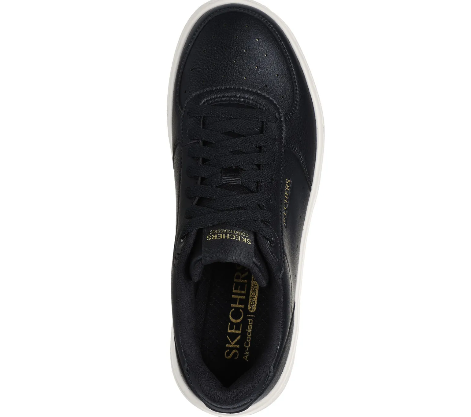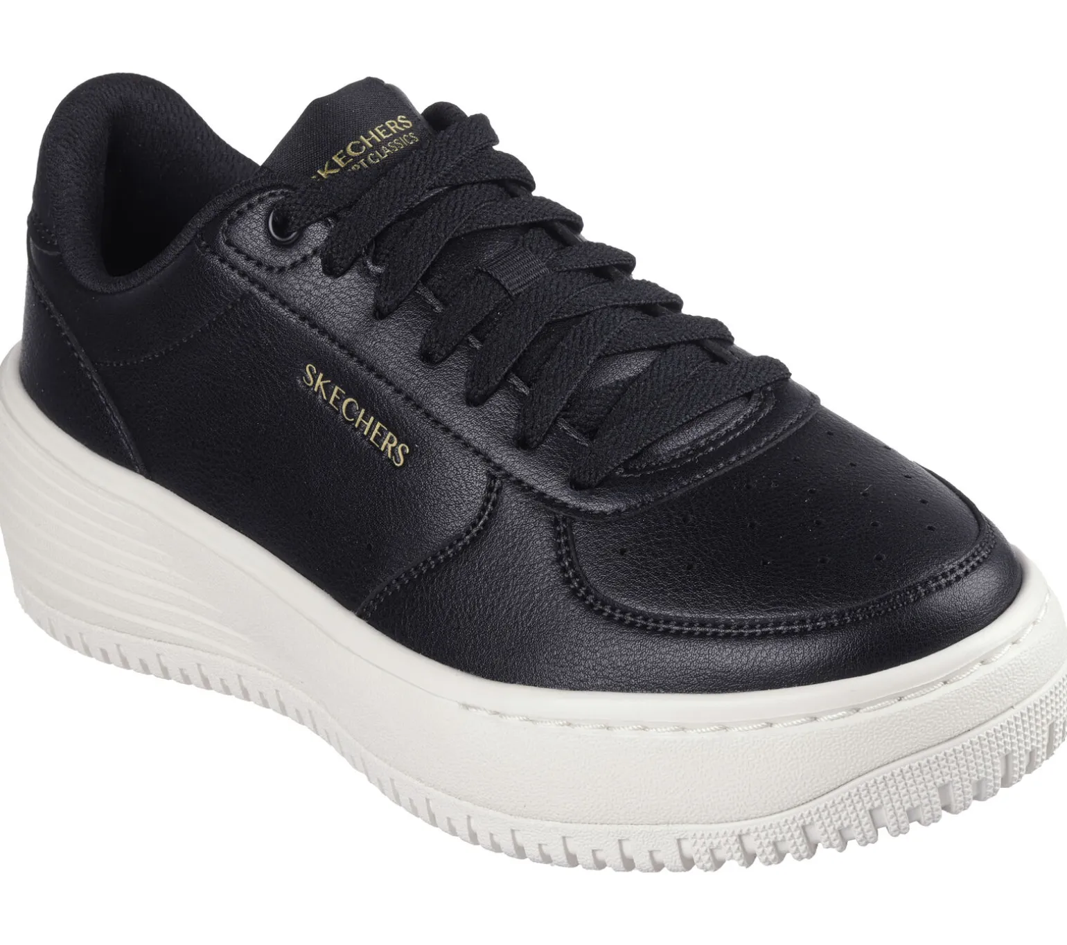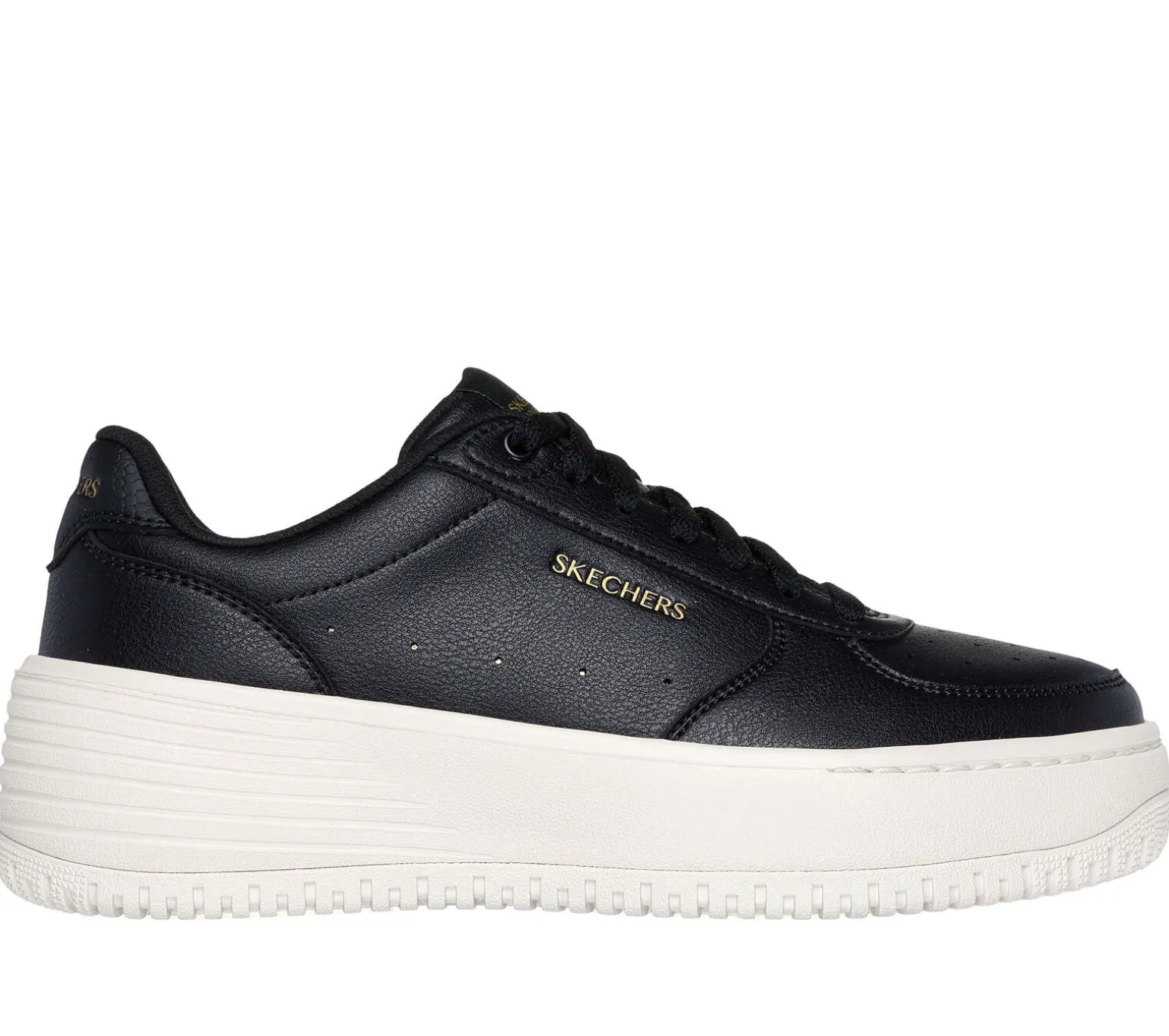 Update your look with a wardrobe classic in Skechers Grand 92 – Be Lifted. Featuring a clean court silhouette, lace-up duraleather upper, a cushioned Skechers Air-Cooled Memory Foam® insole, and a bold platform midsole.