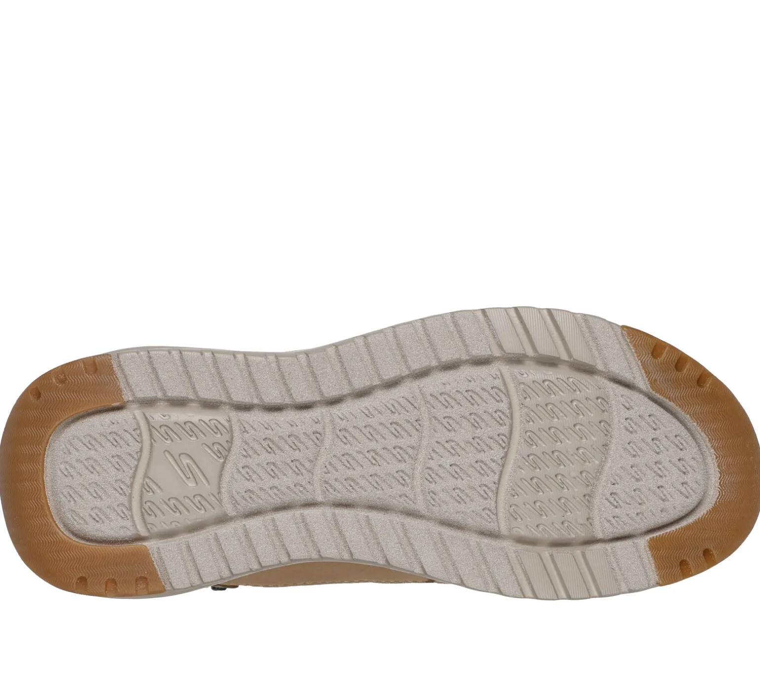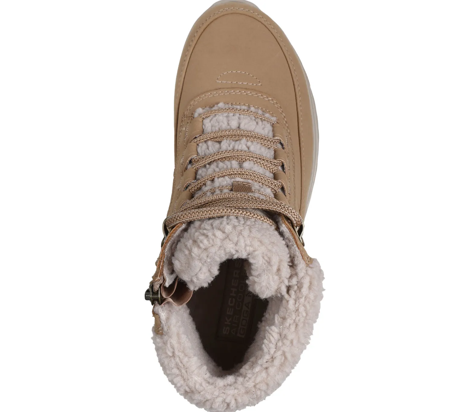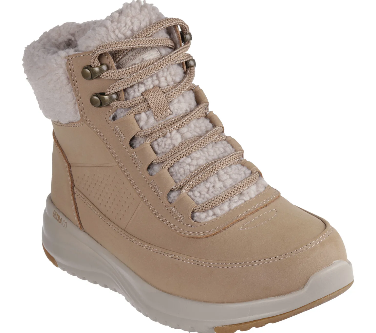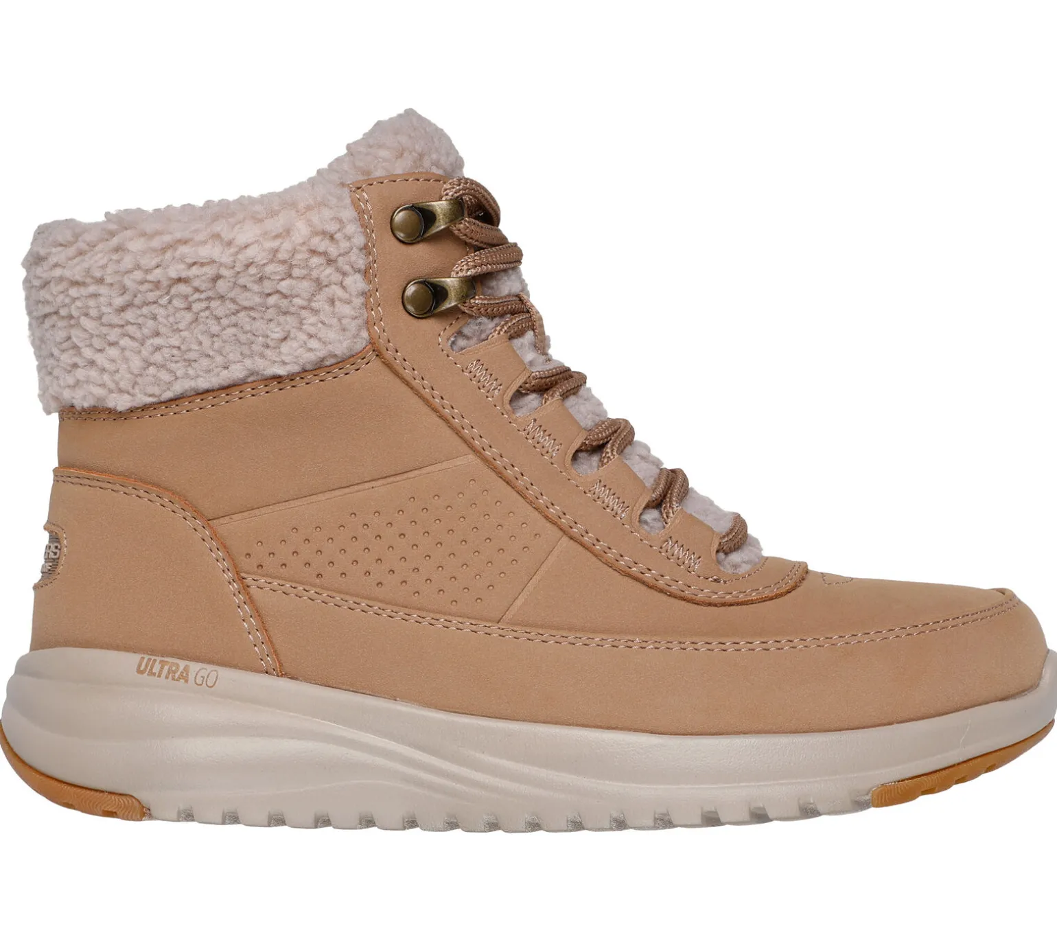 Vereine klassisch gemütlichen Style mit dem typischen Skechers-Komfort im Skechers On-the-GO® Stellar – Alpine Adventure. Dieser wasserdichte Schnürschuh im Hiker-Style verfügt über ein Obermaterial aus Nubukleder und Synthetik mit Besätzen und Futter aus Kunstfell, eine Skechers Air-Cooled Goga Mat Innensohle und eine gepolsterte, leichte ULTRA GO® Zwischensohle.