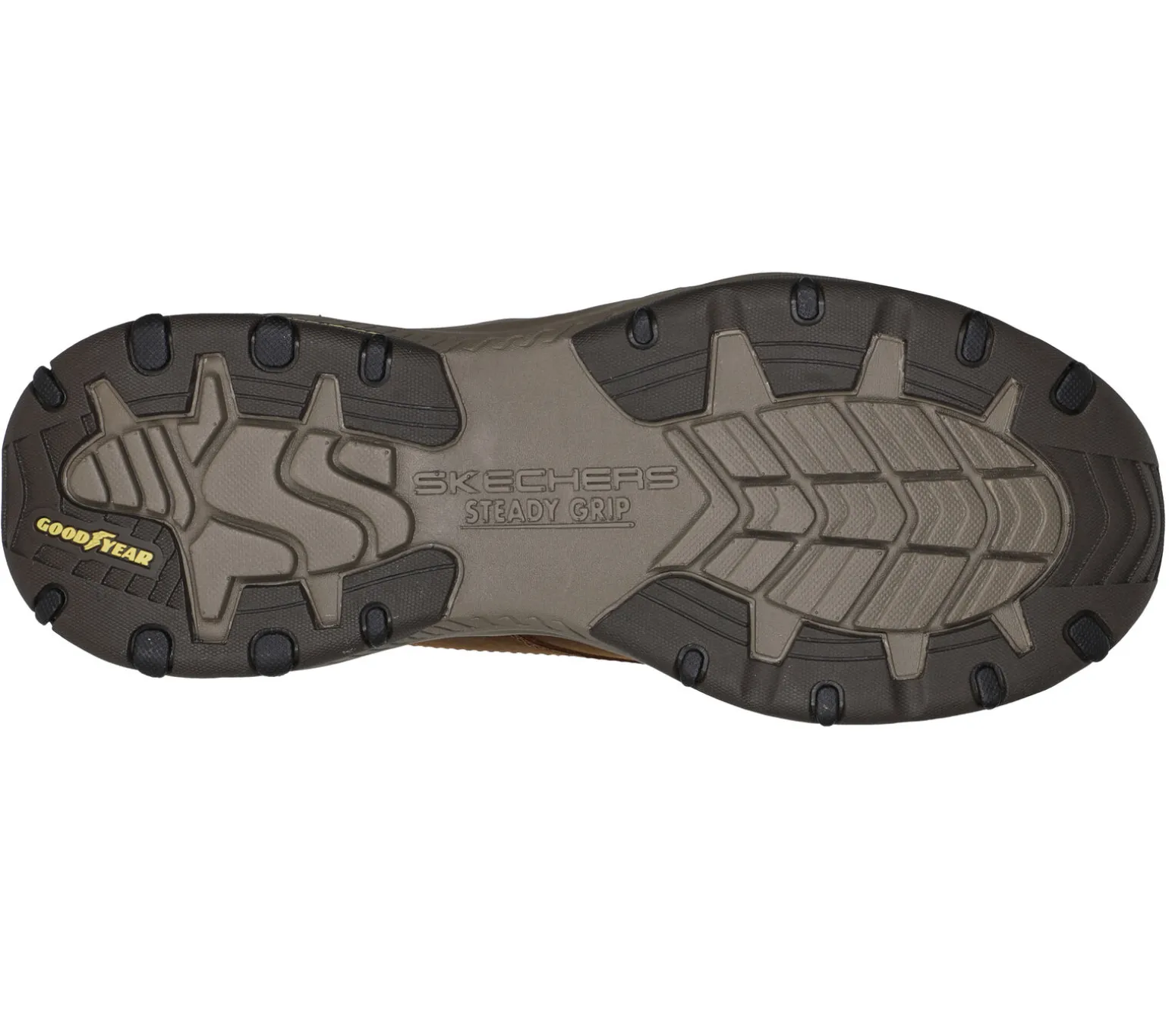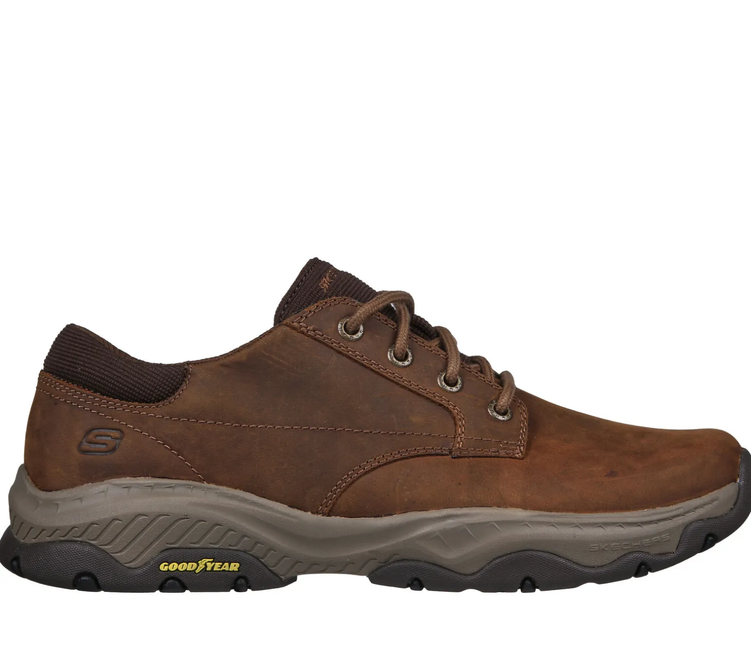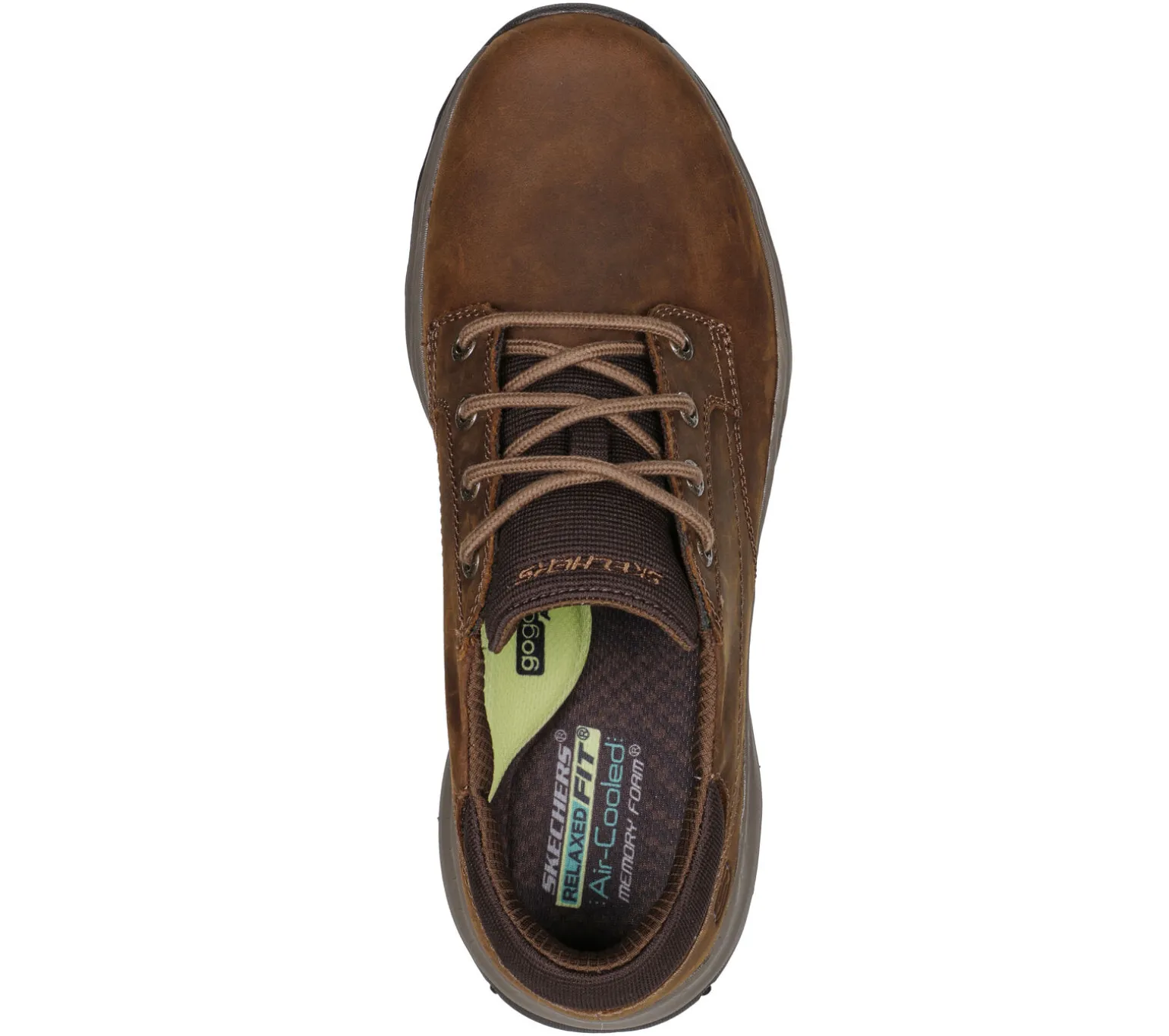 Klassischer Stil und Komfort wo auch immes es hin geht mit dem Skechers Relaxed Fit®: Craster – Fenzo. Dieser lässige Schnürschuh verfügt über ein Obermaterial aus Leder, eine Skechers Air-Cooled Memory Foam® Komfort-Innensohle, Skechers Goga Mat Arch-Dämpfung für zusätzlichen Halt und eine haltbare Goodyear® Performance-Laufsohle.